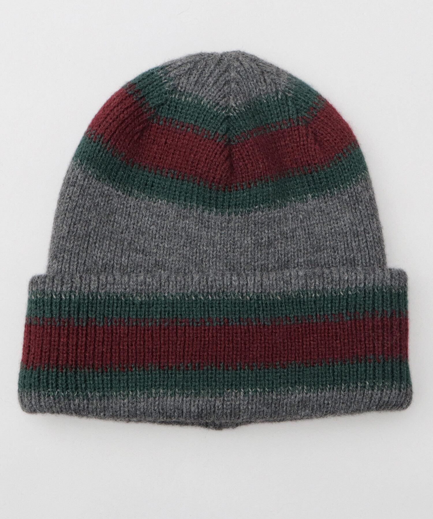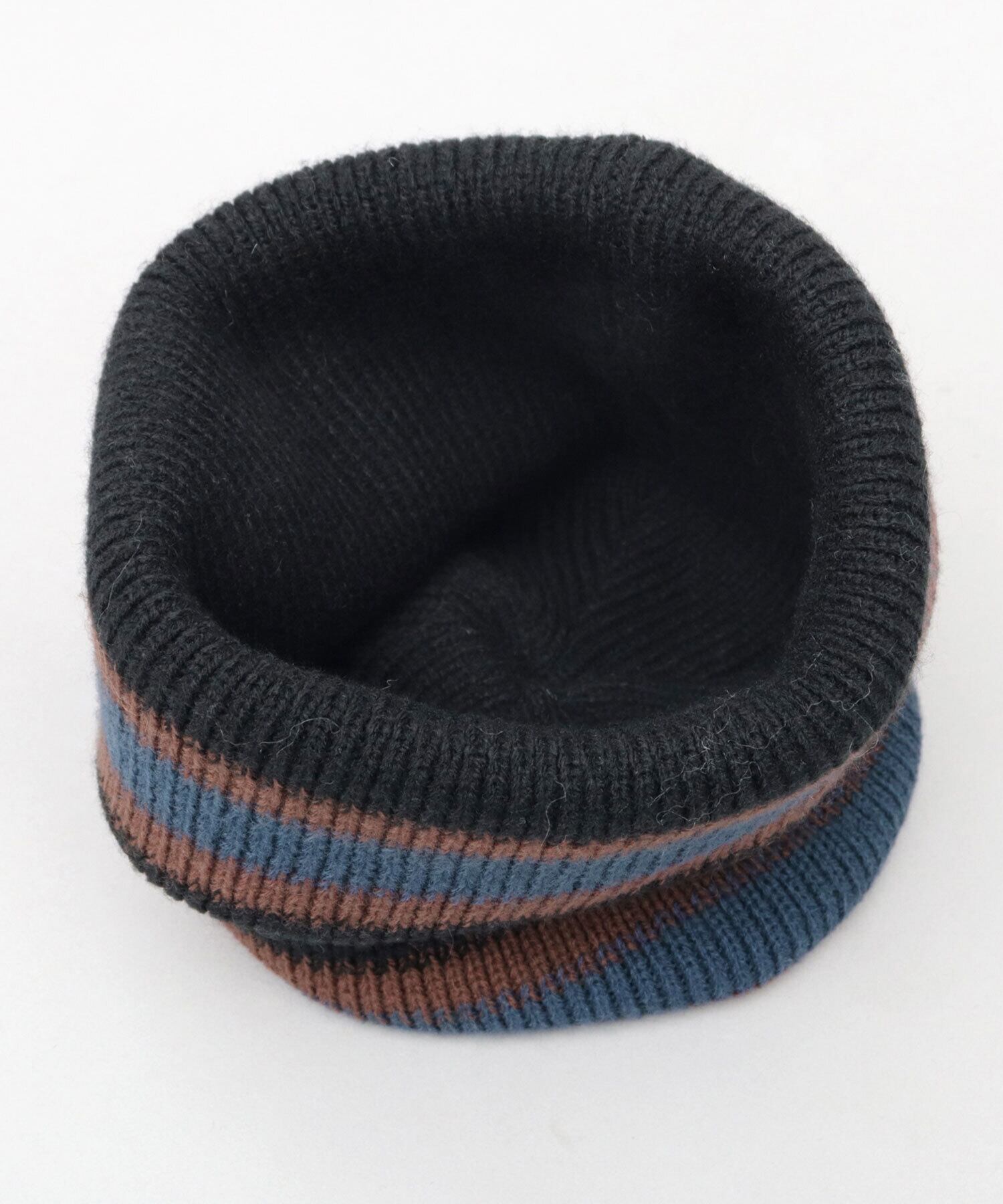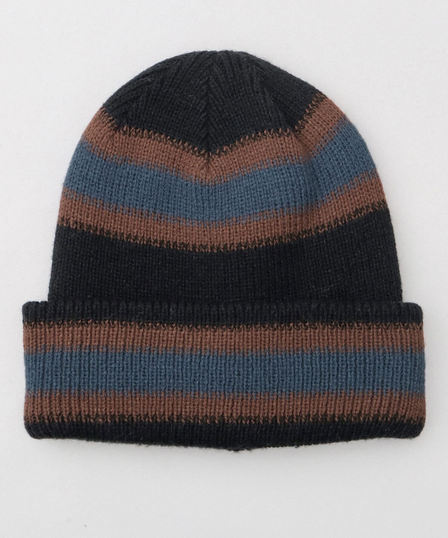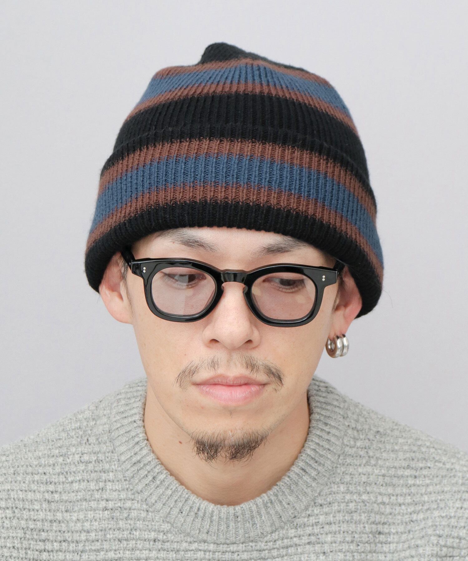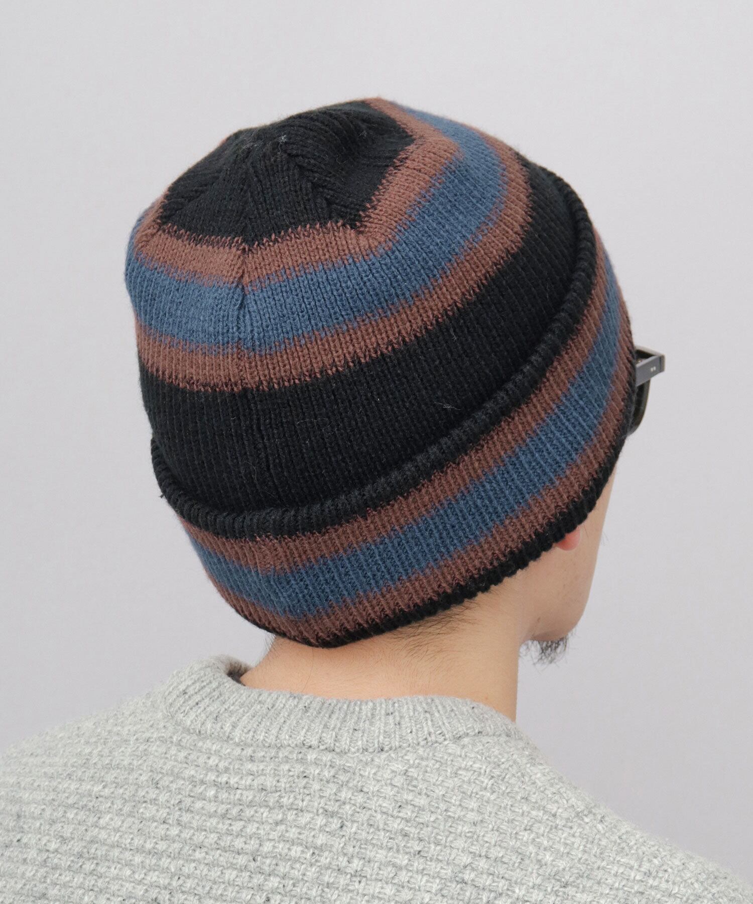 表面は、落ち着きのある大人カラーのボーダーニットワッチ。裏返すと、ベースカラーのシンプルなニットワッチに。気分や、コーディネートに合わせて2WAYに着用可能。