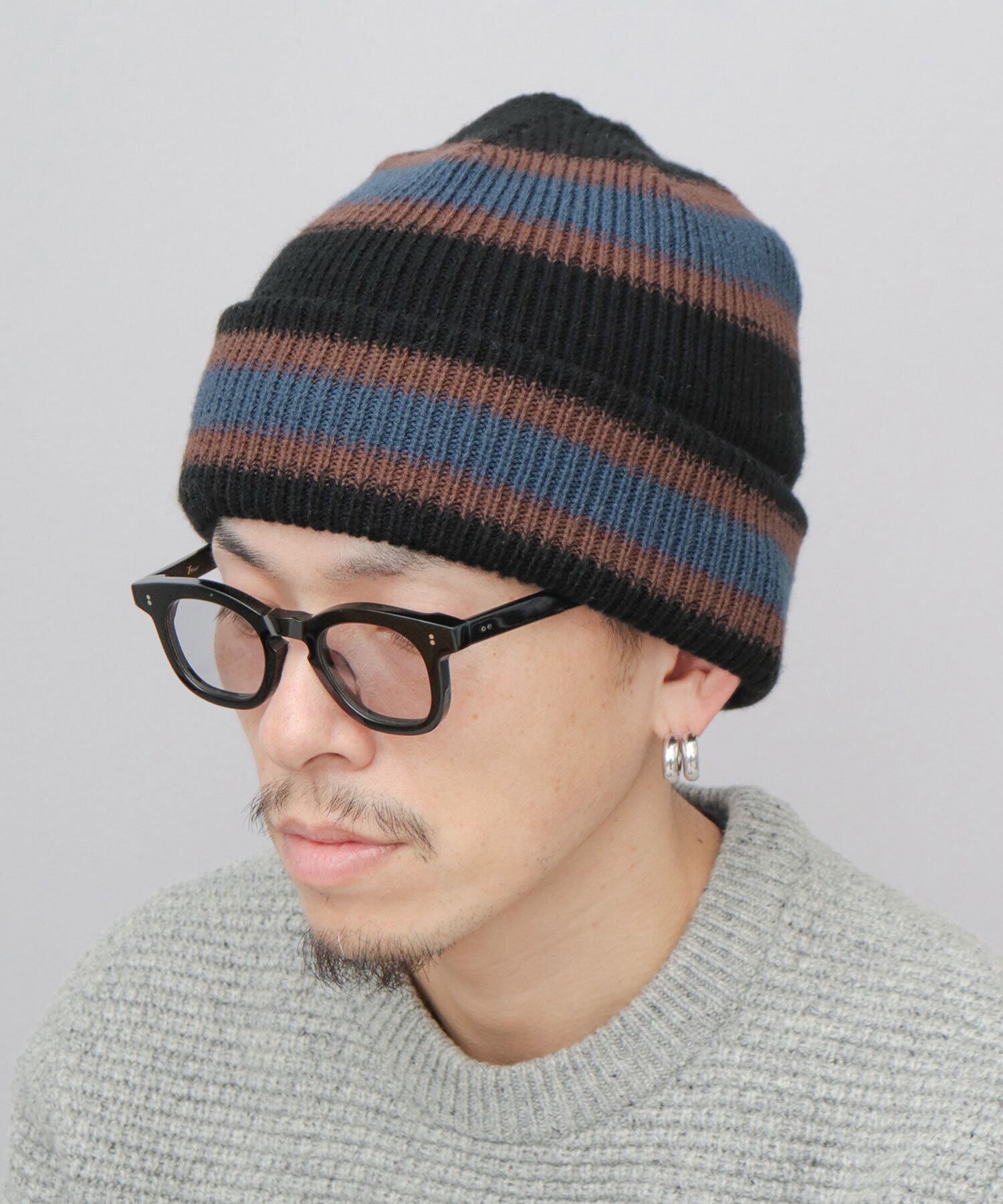RVU-148 ニット帽 リバーシブル メンズ レディース ボーダー 無地 深め 2WAY 二重仕立て ニットワッチ ビーニー ニットキャップ 防寒 冬 帽子 暖かい おしゃれ カジュアル アウトドア ストリート | A.M.S.