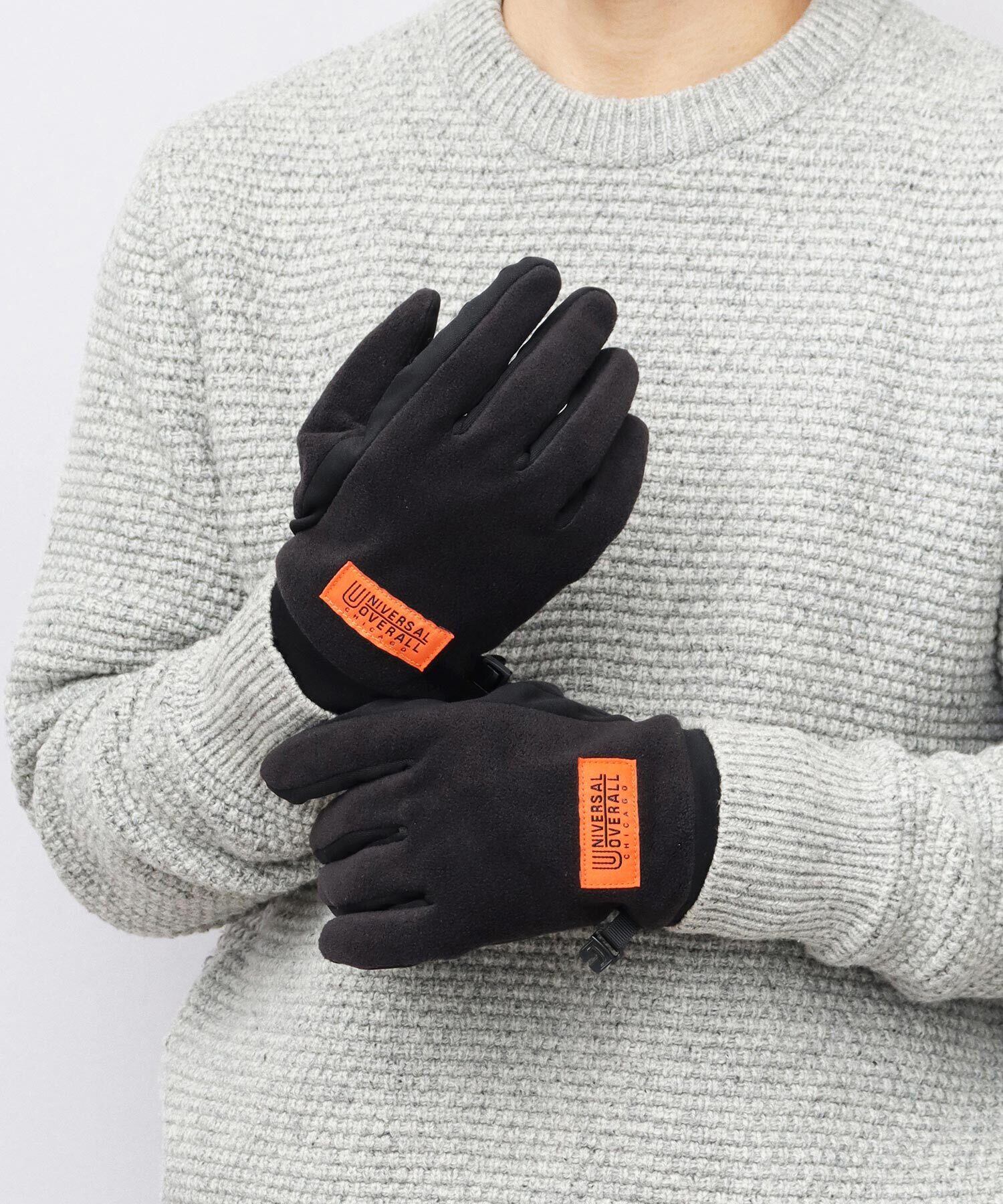 老舗ワークウェアブランド“UNIVERSALOVERALL(ユニバーサルオーバーオール)”のフリースグローブ。素材に、高機能繊維『THERMOLITE®』を使用した、軽くて、薄手でもしっかり温かい作り。5本指の間には、伸縮性のあるジャージー素材を使用し、手を動かしやすい仕様に。親指・人差し指・中指の指先は、2WAYタッチパネル対応。導電性素材を使用しているので静電式タッチパネルの操作はもちろん、手元の細かい作業時に便利な直接指が出せるダイレクトタッチ仕様。手袋の左右を連結できるミニバックル付きで、紛失などの心配も軽減。普段使いはもちろん、通勤・通学時、ウィンタースポーツやアウトドアなどのアクティブシーンまで幅広く使えるアイテムに。