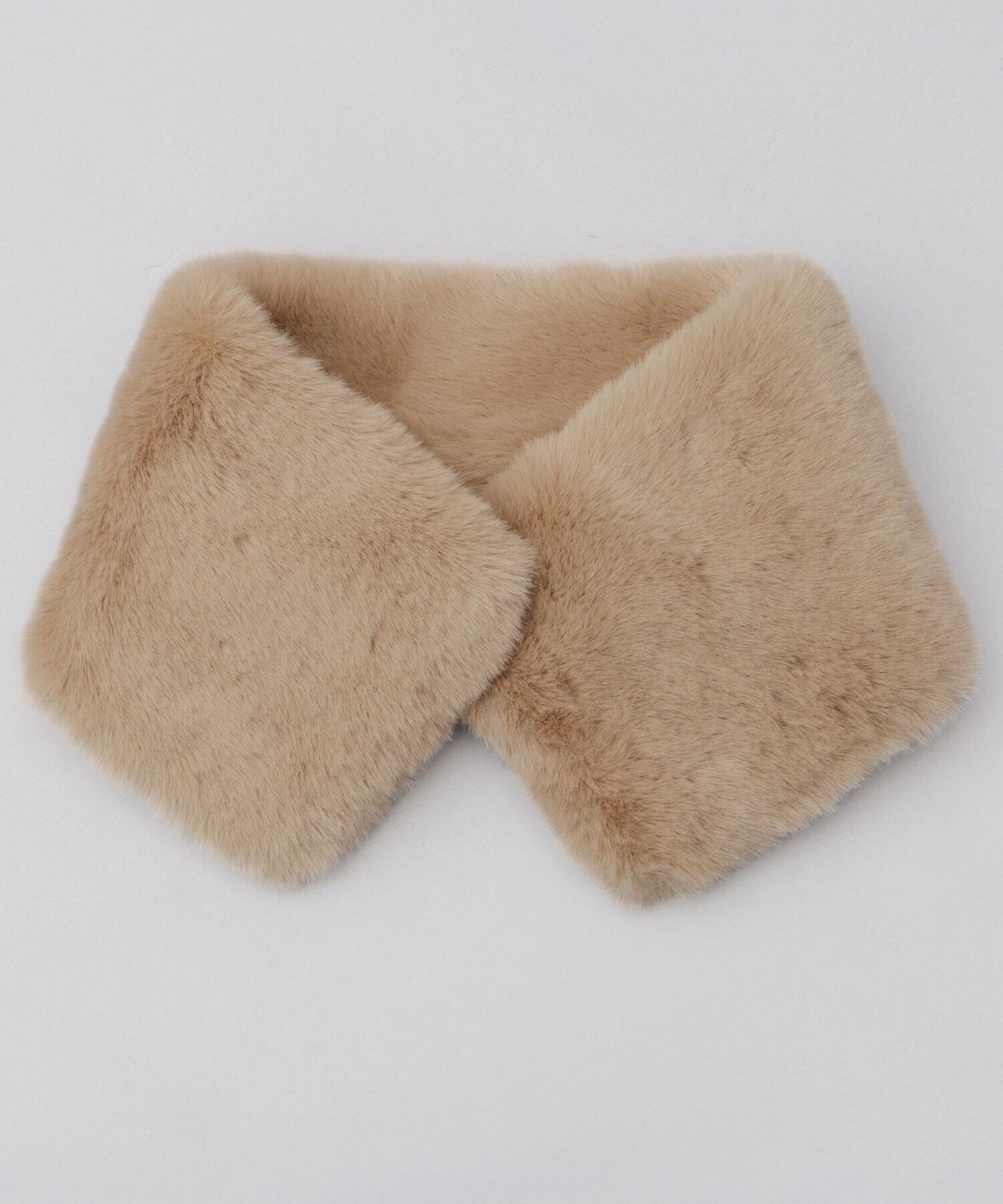 ふんわり滑らかなフェイクファー素材を使用した、つけ襟のようなシルエットで、見た目も暖かでかわいらしい雰囲気のファーティペット。