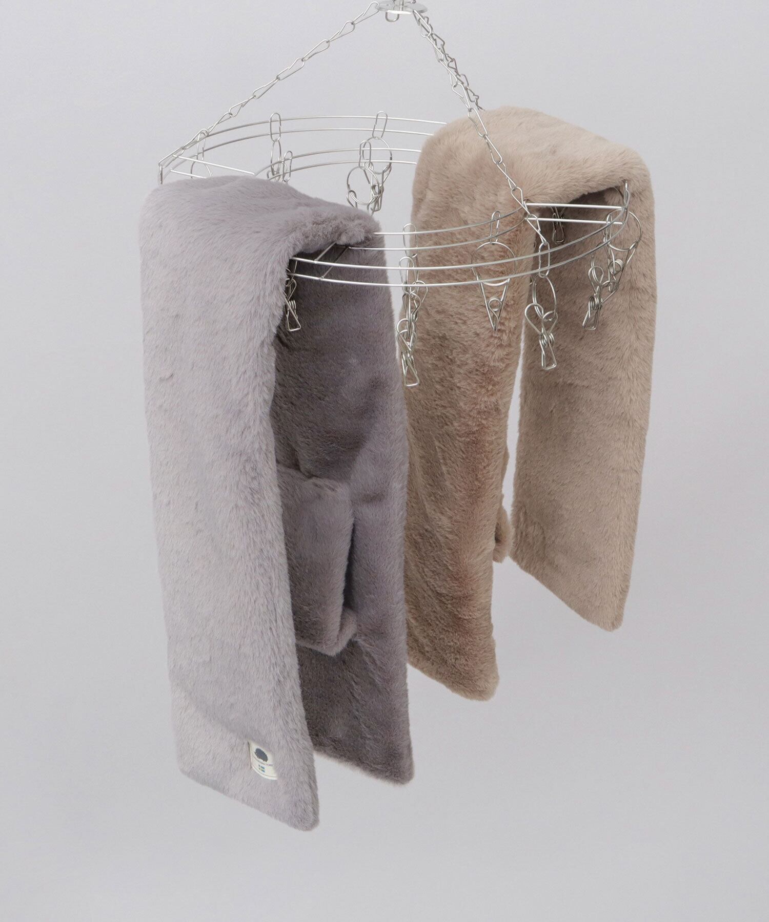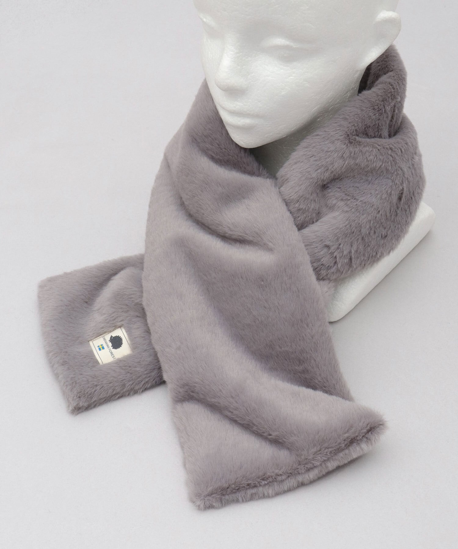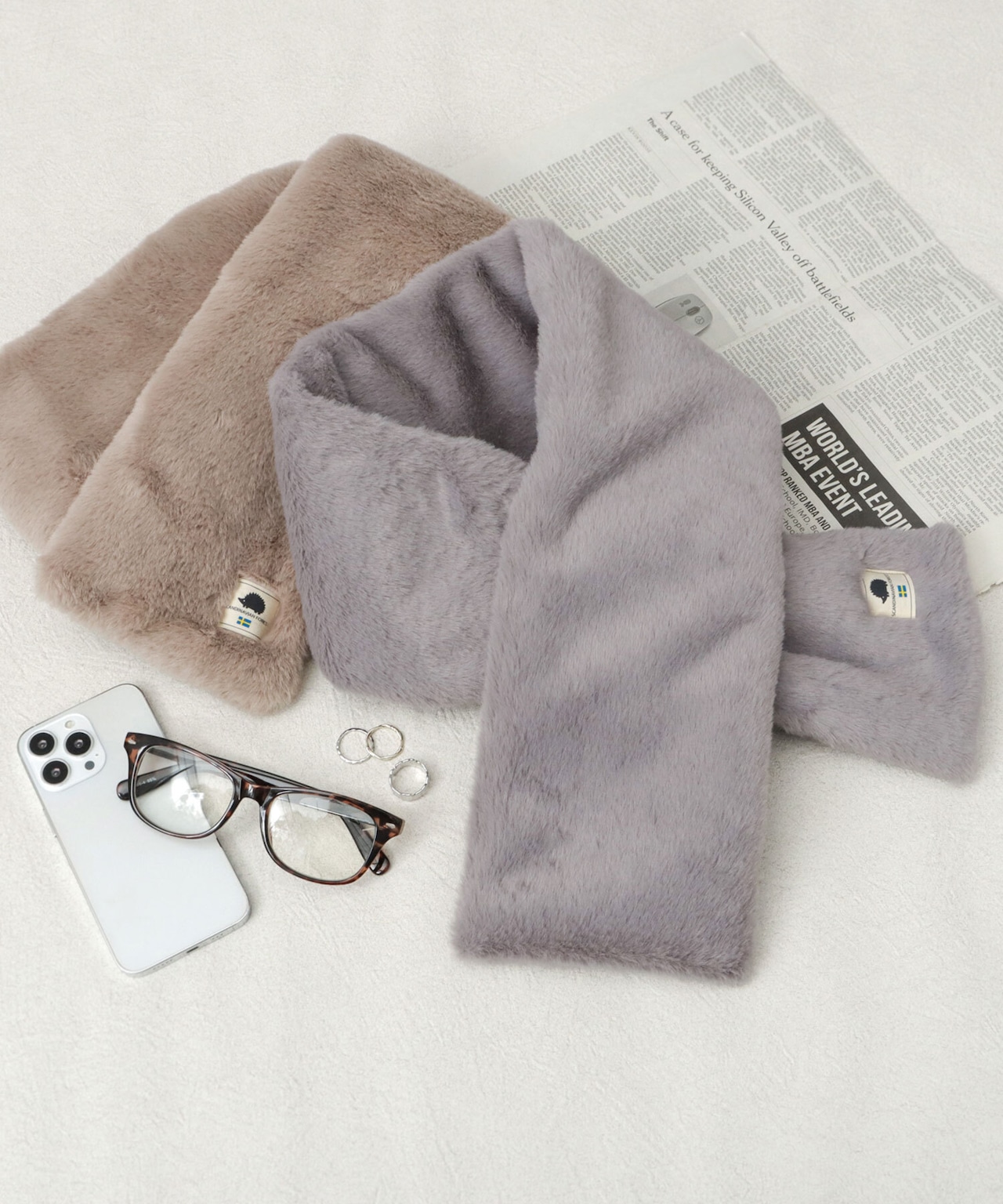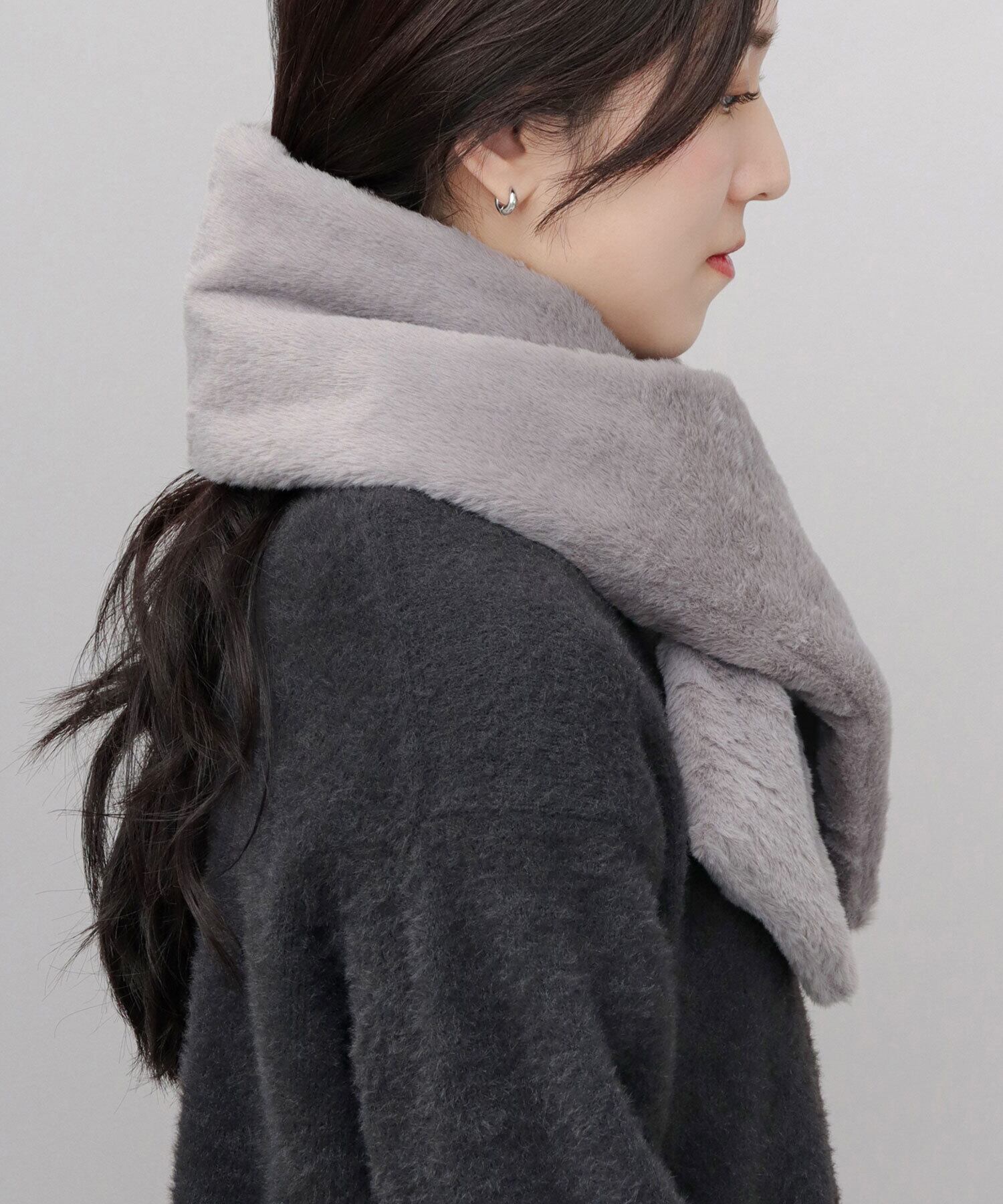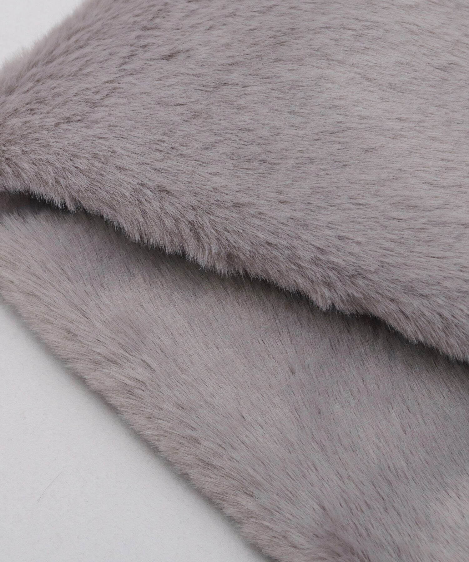 素材には、滑らかな肌触りのフェイクファー素材を使用。肌に直接触れる裏地部分にも同素材を使用しているので、ふわふわの柔らかいファーが首元をしっかり守り、心地よい温かさをキープ。