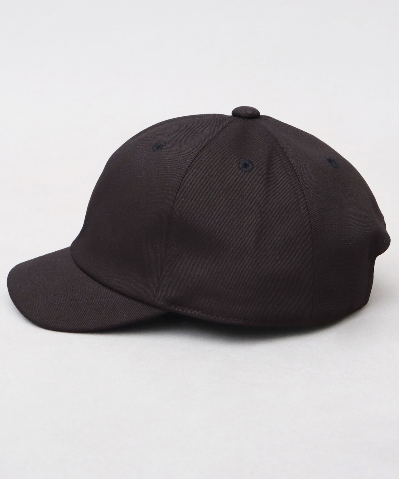 無駄な装飾がない、シンプルデザインの6パネルショートバイザーキャップ。程よい深さのコンパクトで被りやすいシルエットで使い勝手も◎