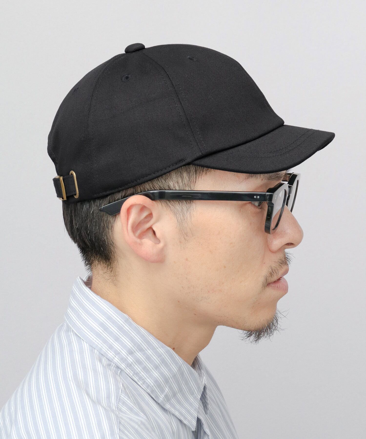 程よい深さの被りに、しっかり芯地の入った短いツバが特徴的なデザインのショートバイザーキャップ。かっちり芯地入りショートバイザーは、型崩れもなく、すっきりクリーンな印象。程よい深さのコンパクトで被りやすいシルエット。バックアジャスターで頭周りのフィット感の調節が可能なので、男女問わずユニセックスでご使用いただけます。余ったベルトは収納できる作りなので、バックスタイルもすっきり◎カジュアル全般、気兼ねなく使える万能アイテム。