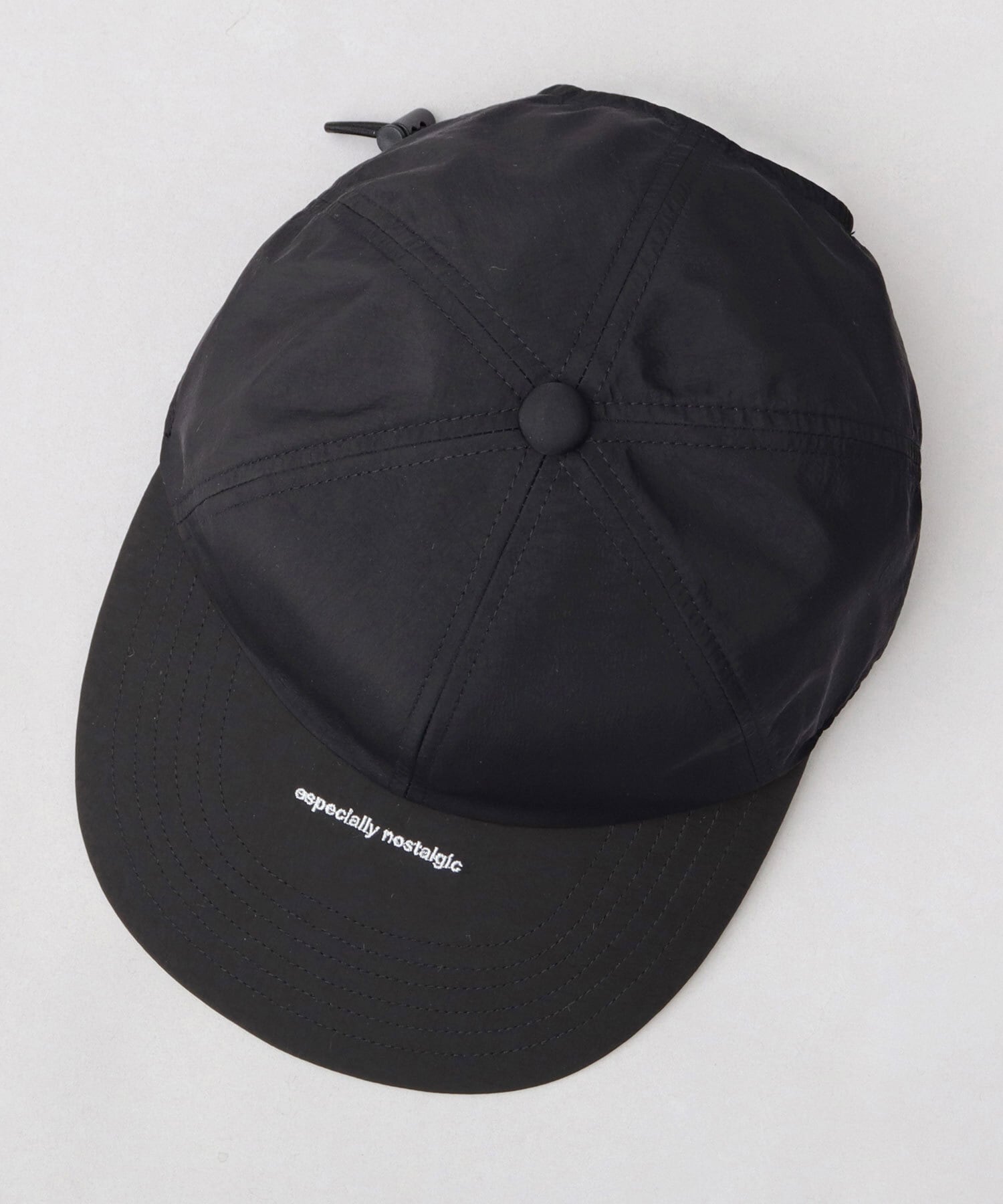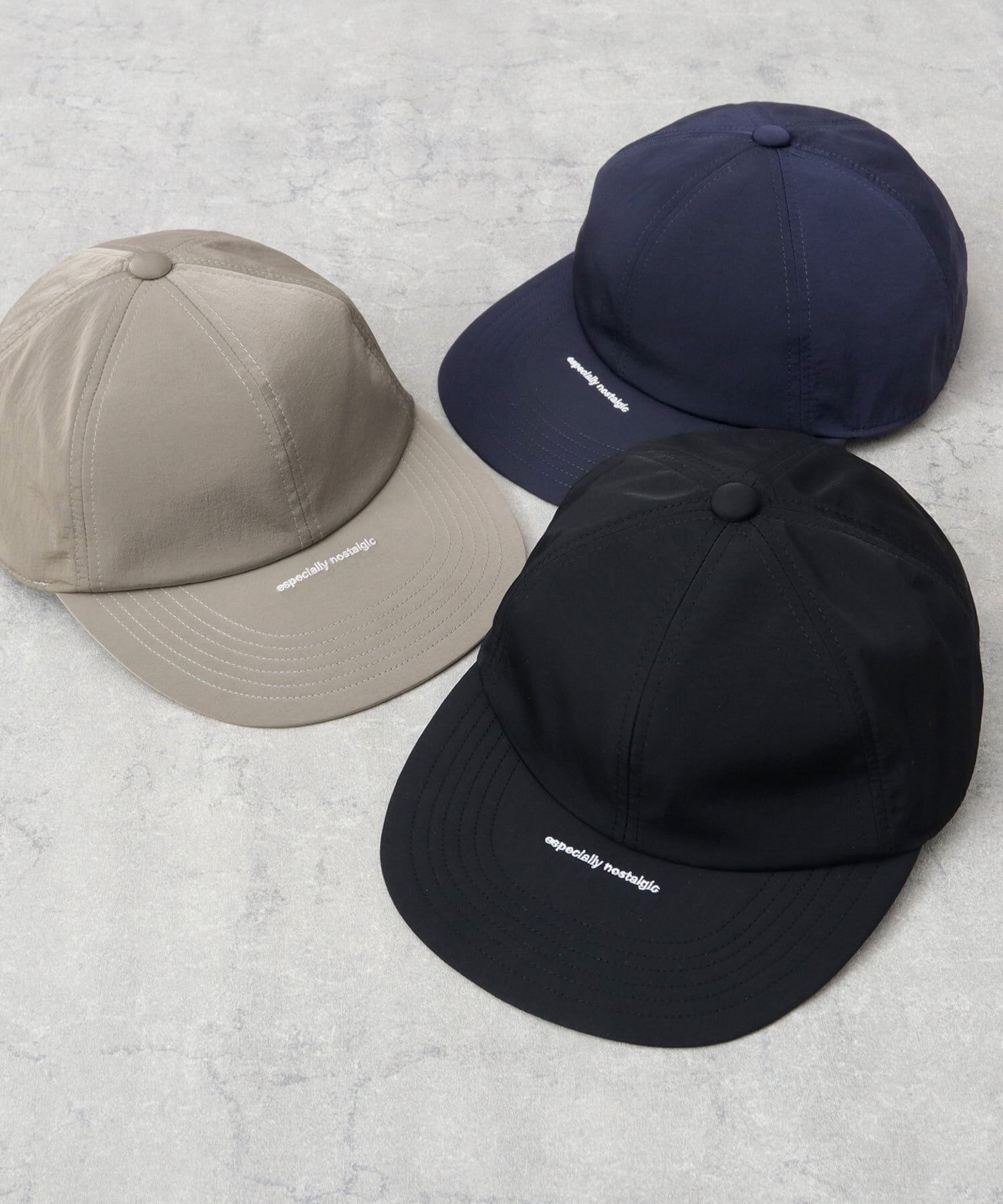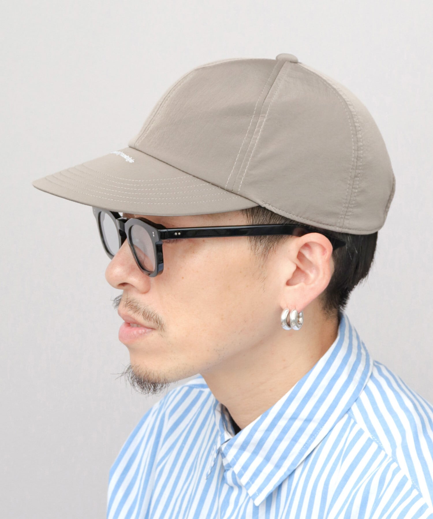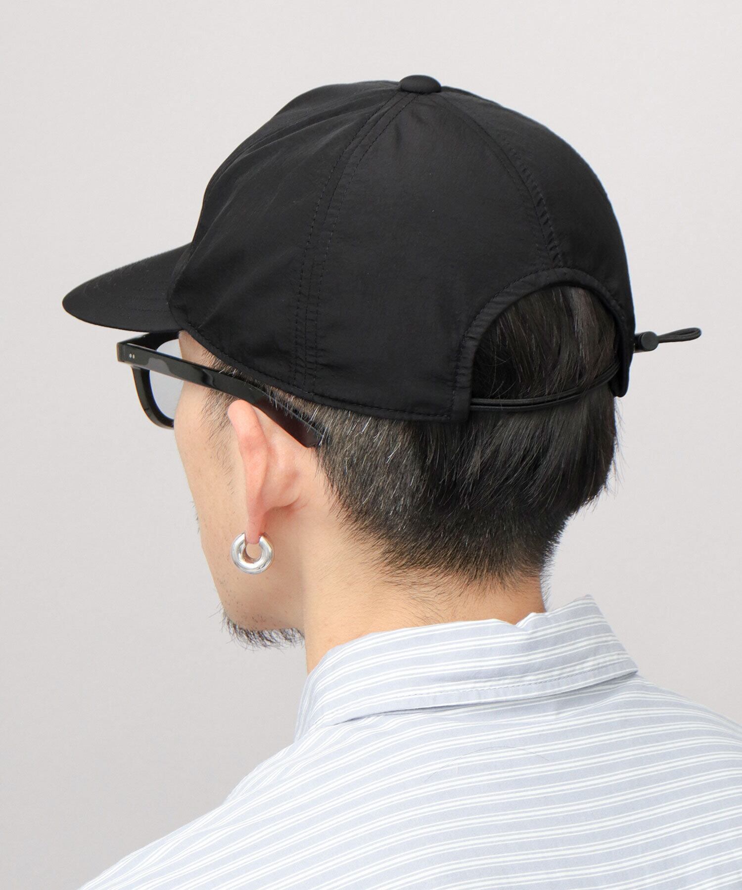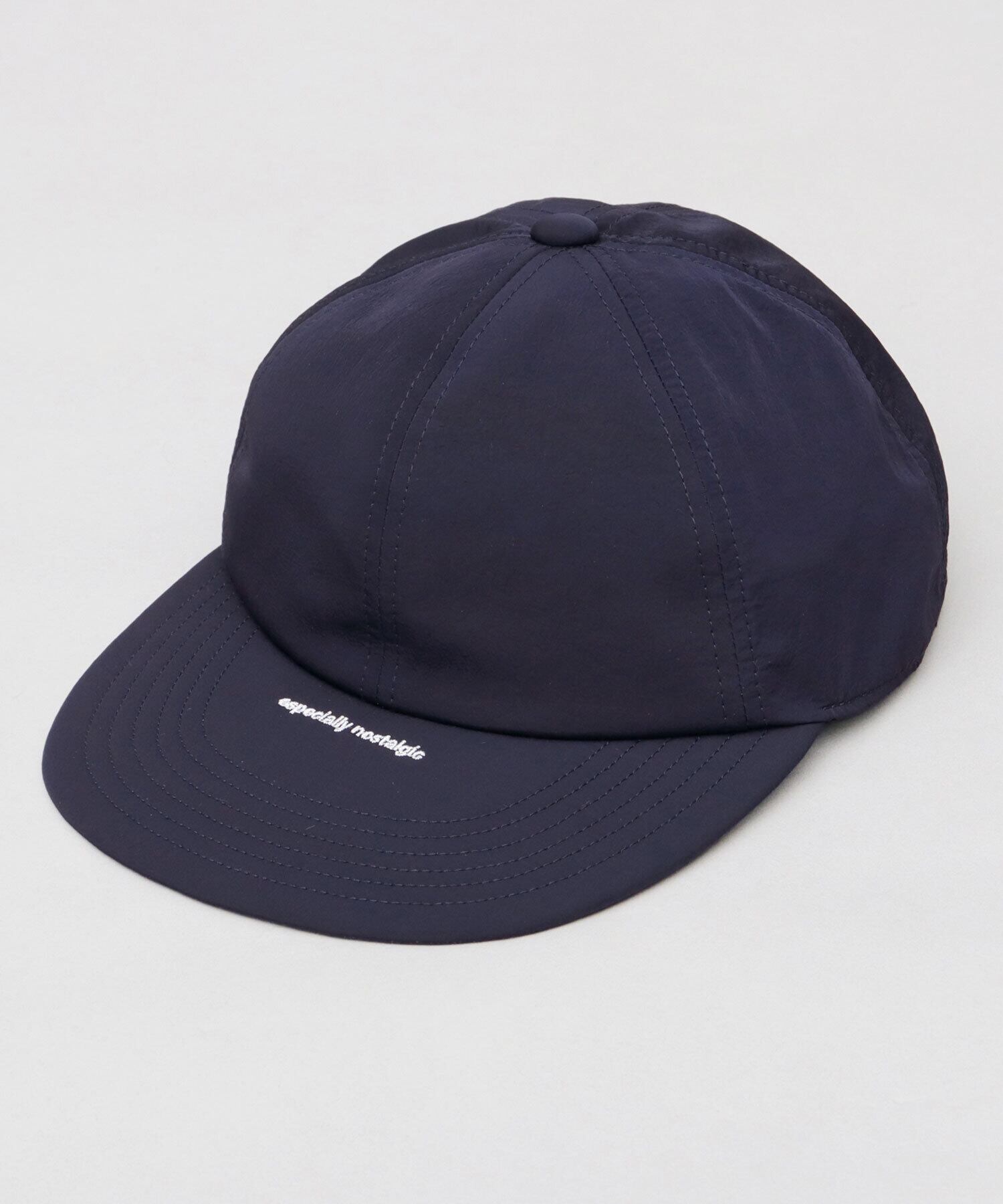 芯地を極力省き、柔らかくライトな被り心地に仕上げた、ソフトつばキャンプキャップ。素材には、シャイニーな光沢感がポイントのナイロン素材を使用。やや浅めのコンパクトなクラウンに、ややワイドなソフトつばを合わせたスマートなシルエットが魅力。長めのつばがしっかり顔に影を落として、日差しをカットしてくれるので日除けアイテムとしても◎後部に配置された、アジャスターコードでフィット感の調節が可能なので、男女問わずユニセックスでご使用いただけます。シャイニーな素材使いがシティーな雰囲気のトレンド感あるアイテムです。