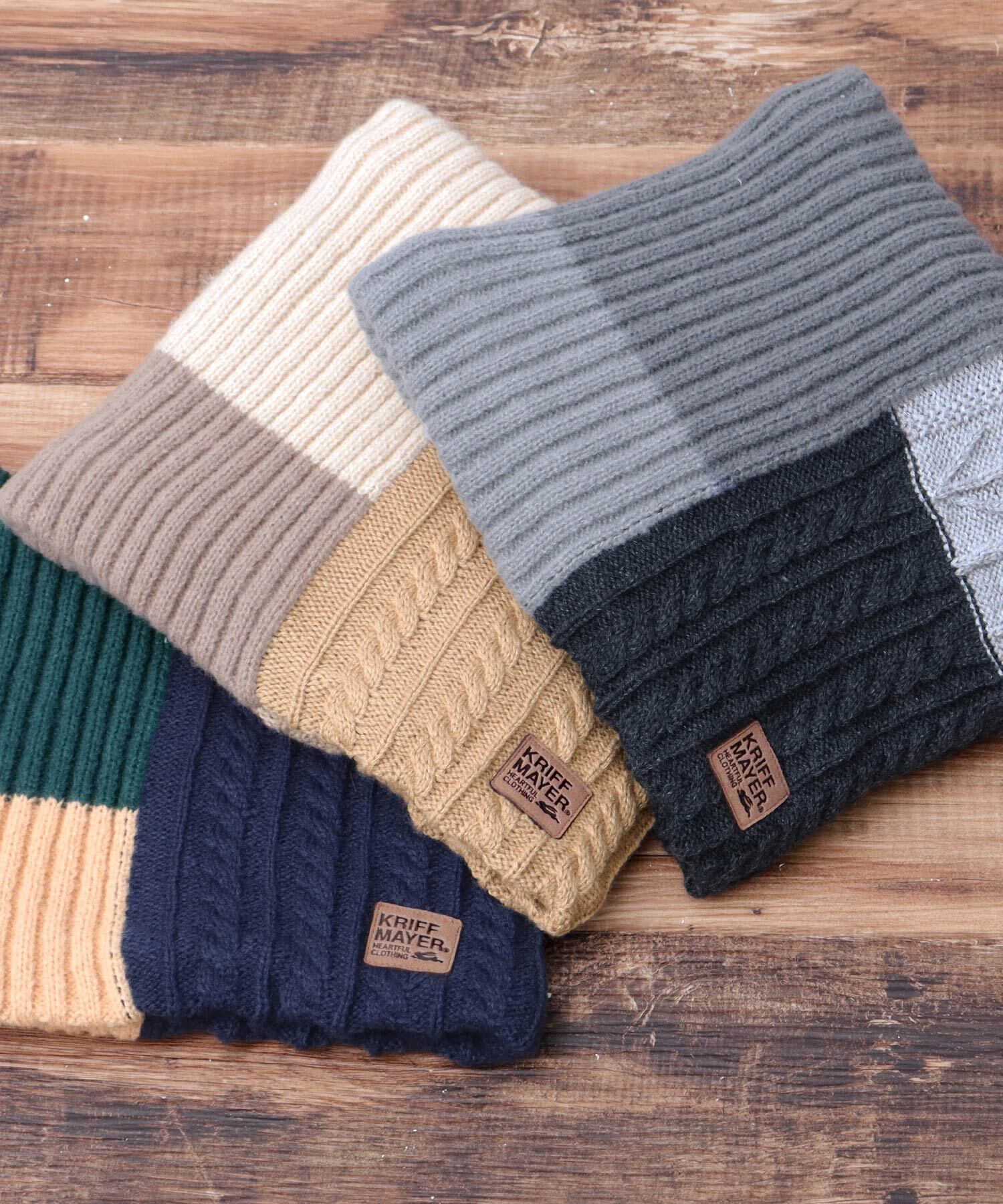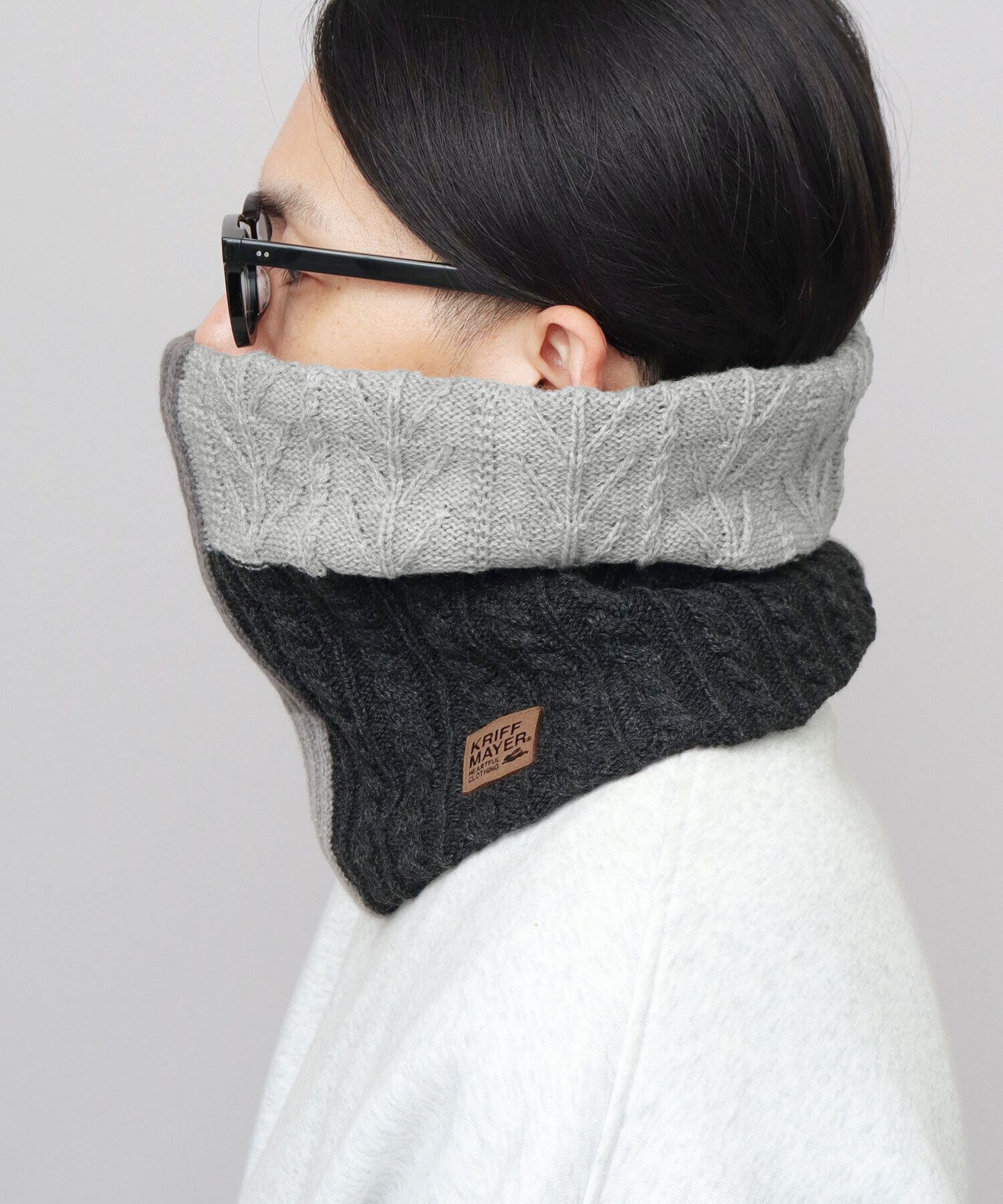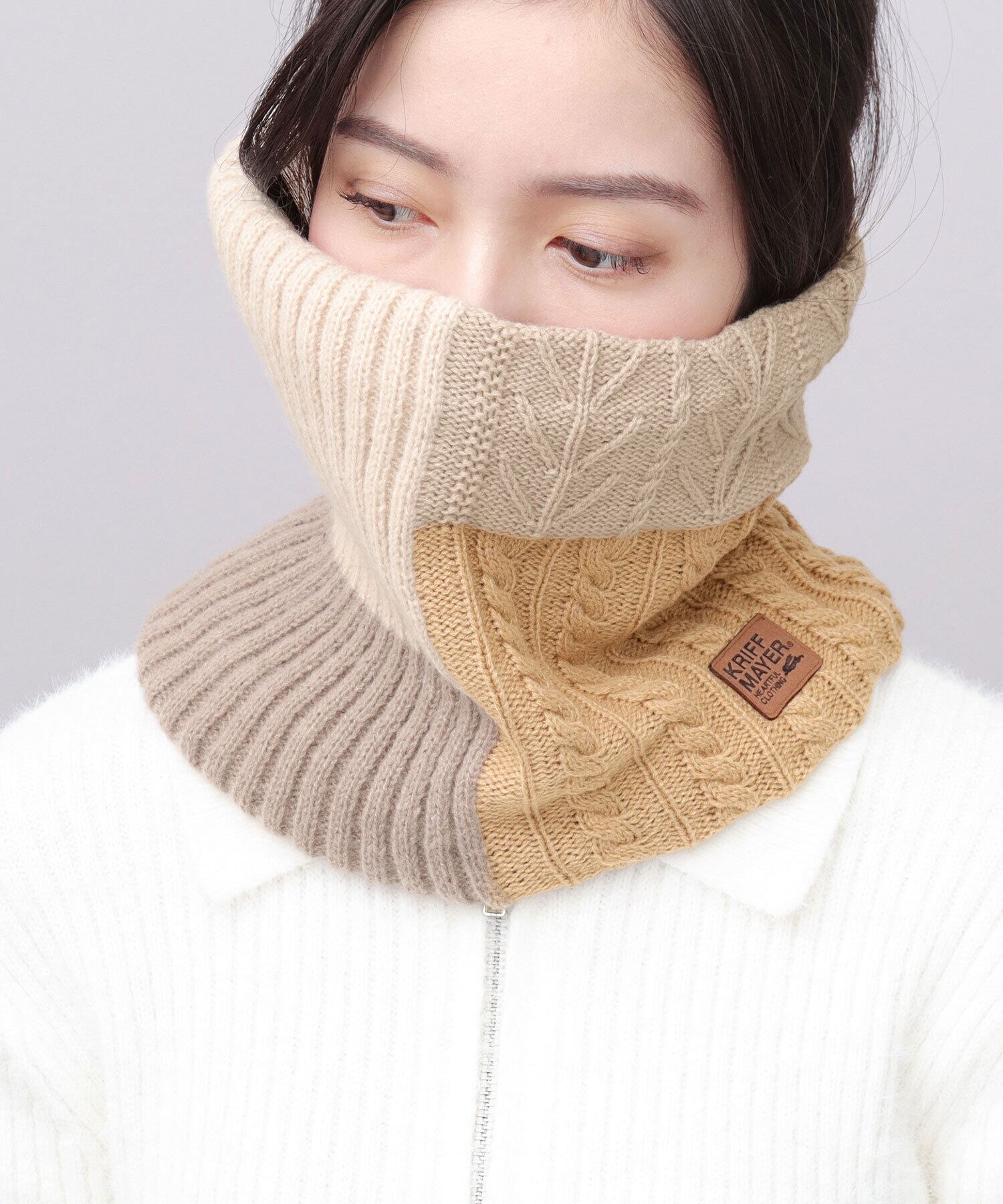 YMM-312 クリフメイヤー KRIFF MAYER ネックウォーマー メンズ レディース 裏ボア ロング パネルニット 切替デザイン アラン柄 防寒 冬 暖かい スヌード マフラー スポーツ 通勤 通学 アウトドア おしゃれ | A.M.S.