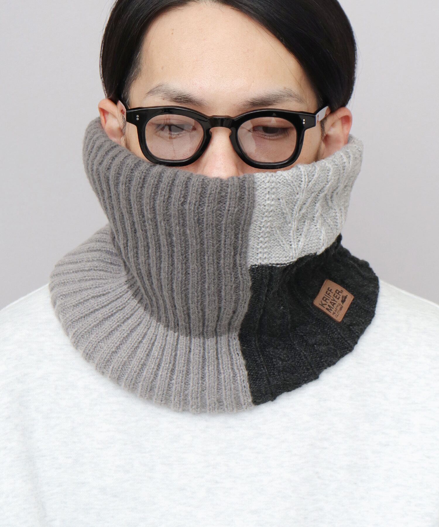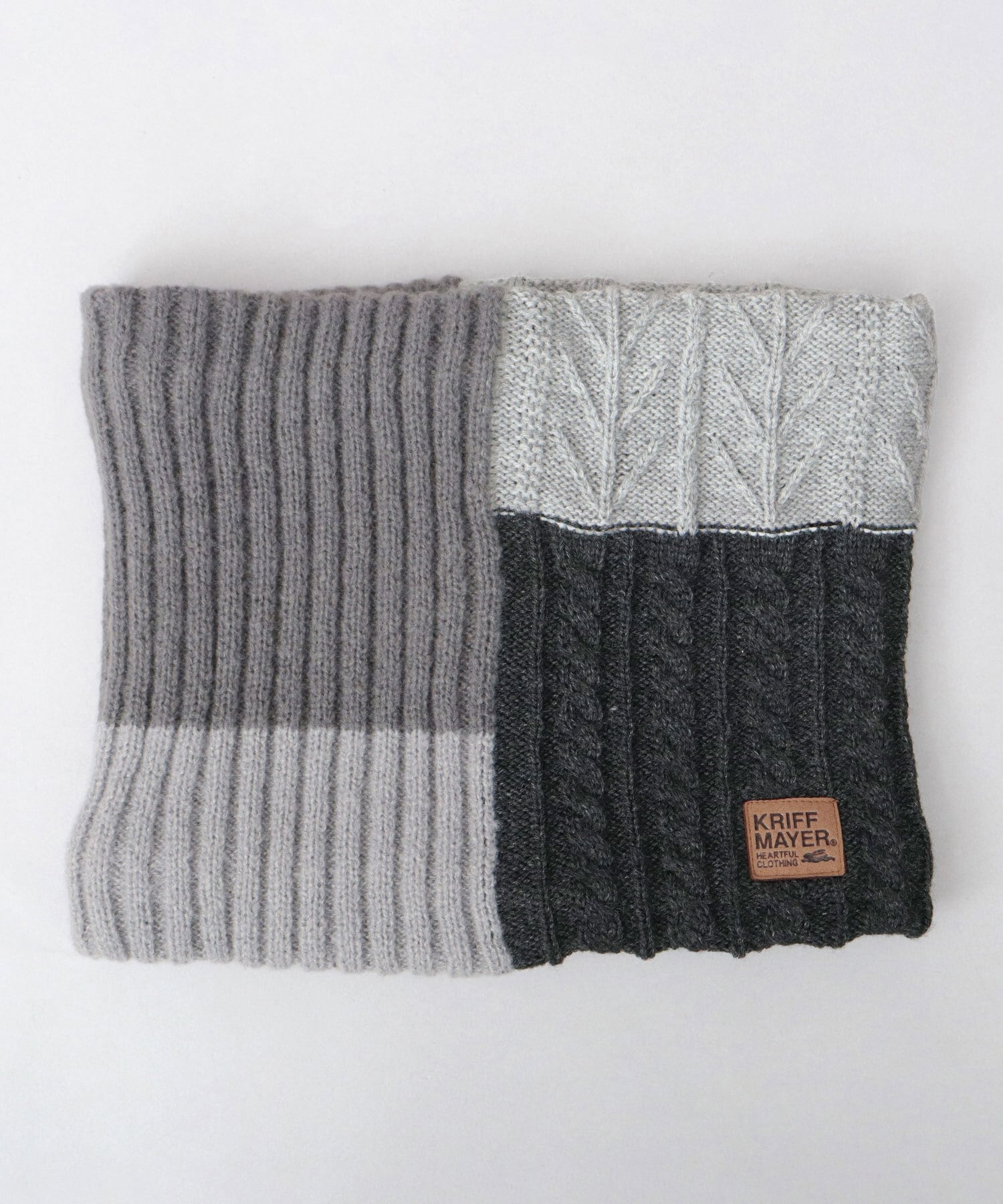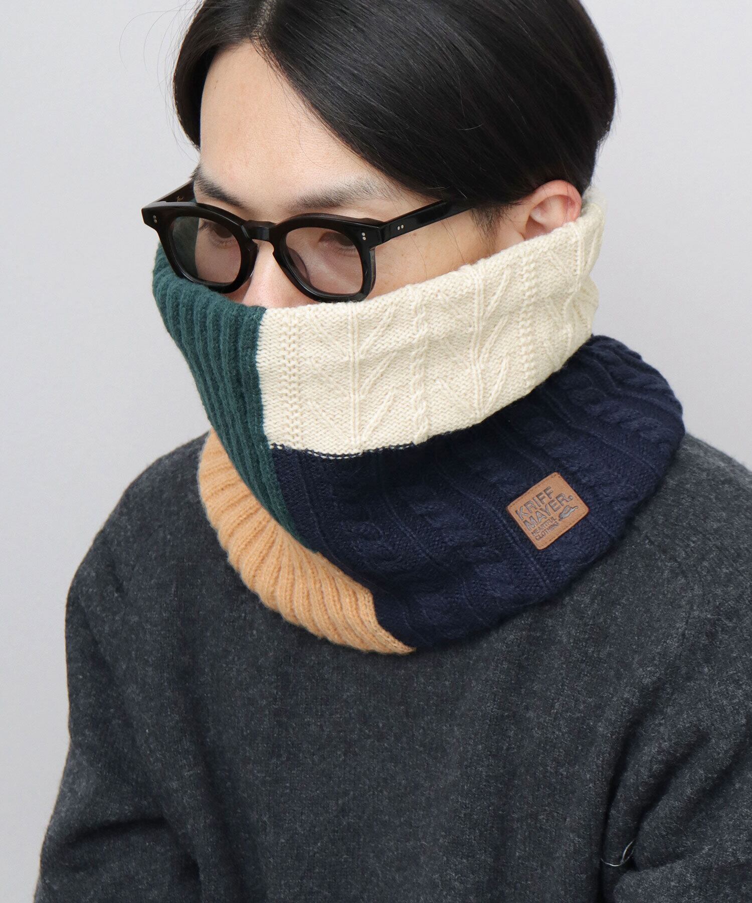 YMM-312 クリフメイヤー KRIFF MAYER ネックウォーマー メンズ レディース 裏ボア ロング パネルニット 切替デザイン アラン柄 防寒 冬 暖かい スヌード マフラー スポーツ 通勤 通学 アウトドア おしゃれ | A.M.S.