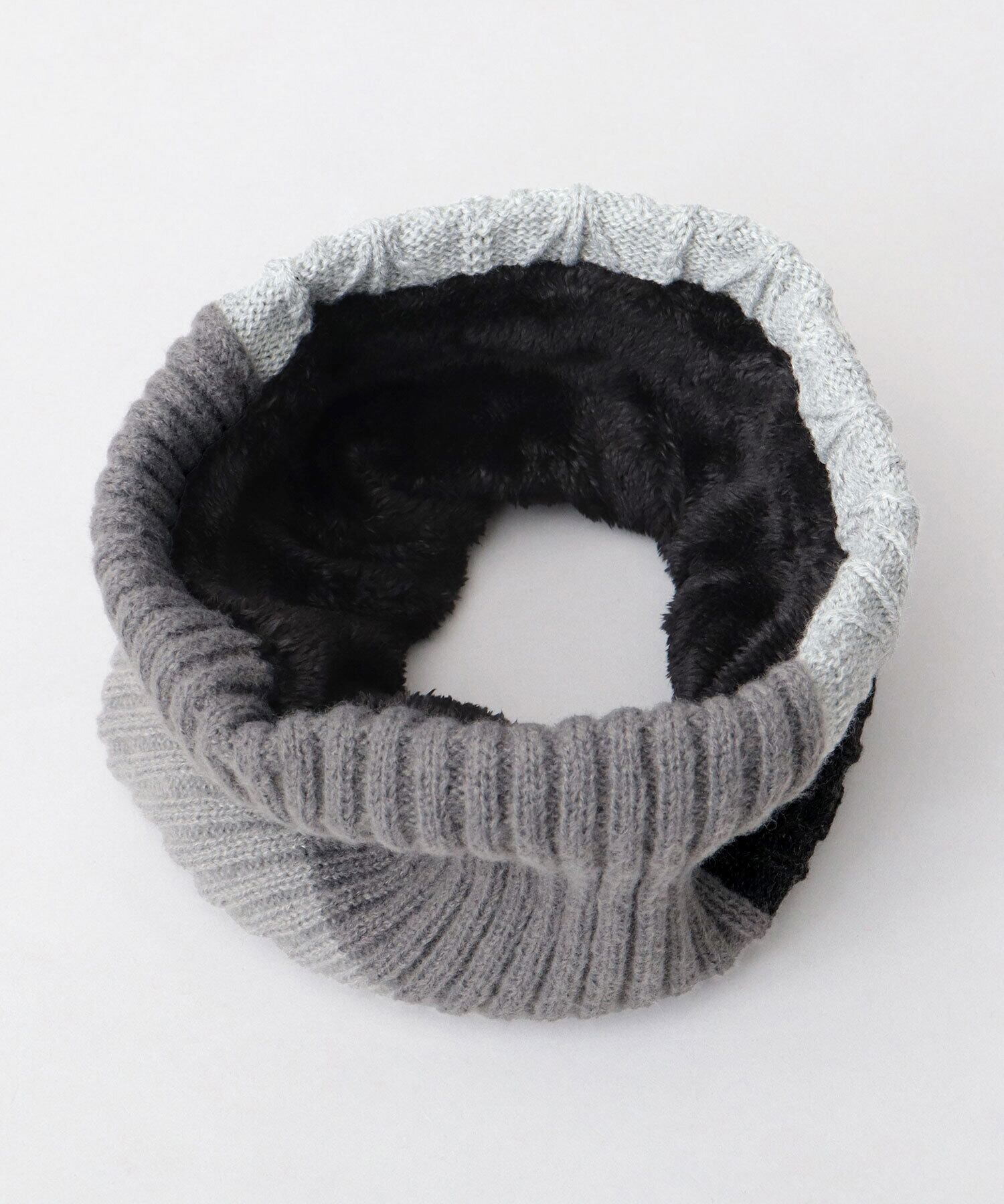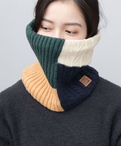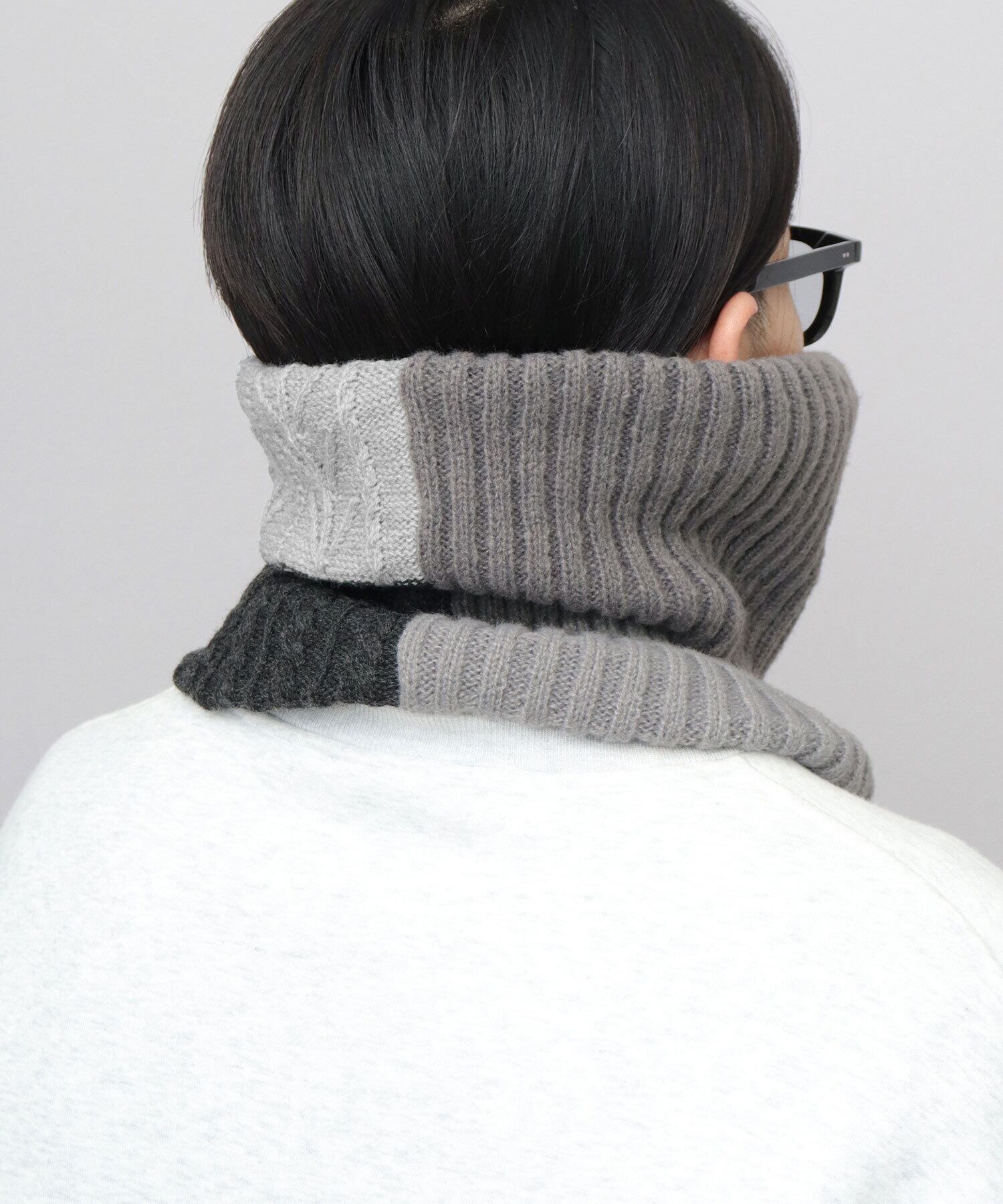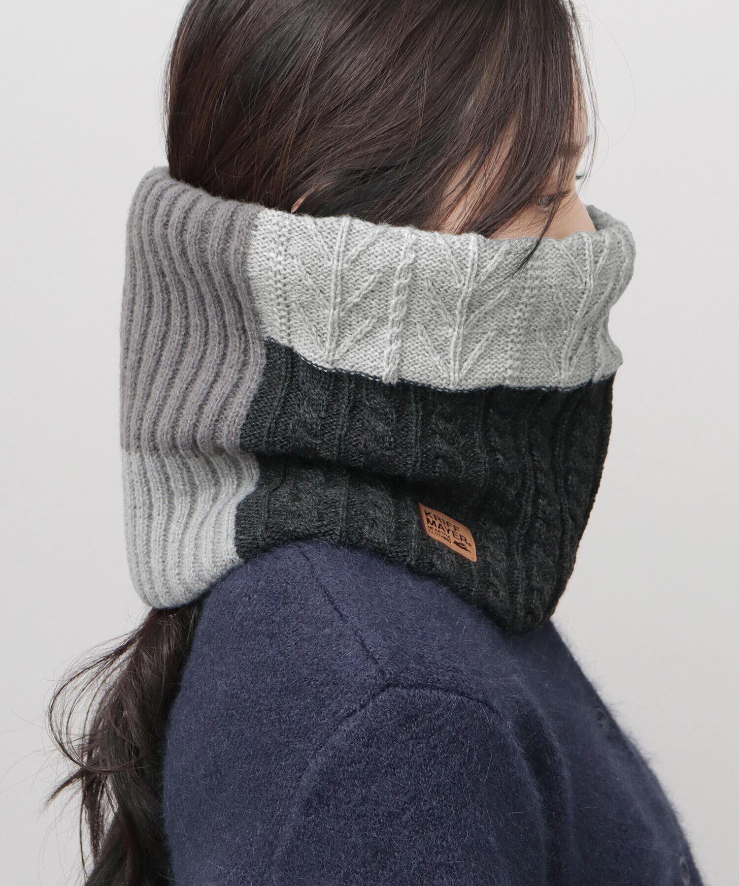 秋冬らしい、暖かみのあるアラン模様の切り替えがスタイリングのアクセントにぴったりなネックウォーマー。