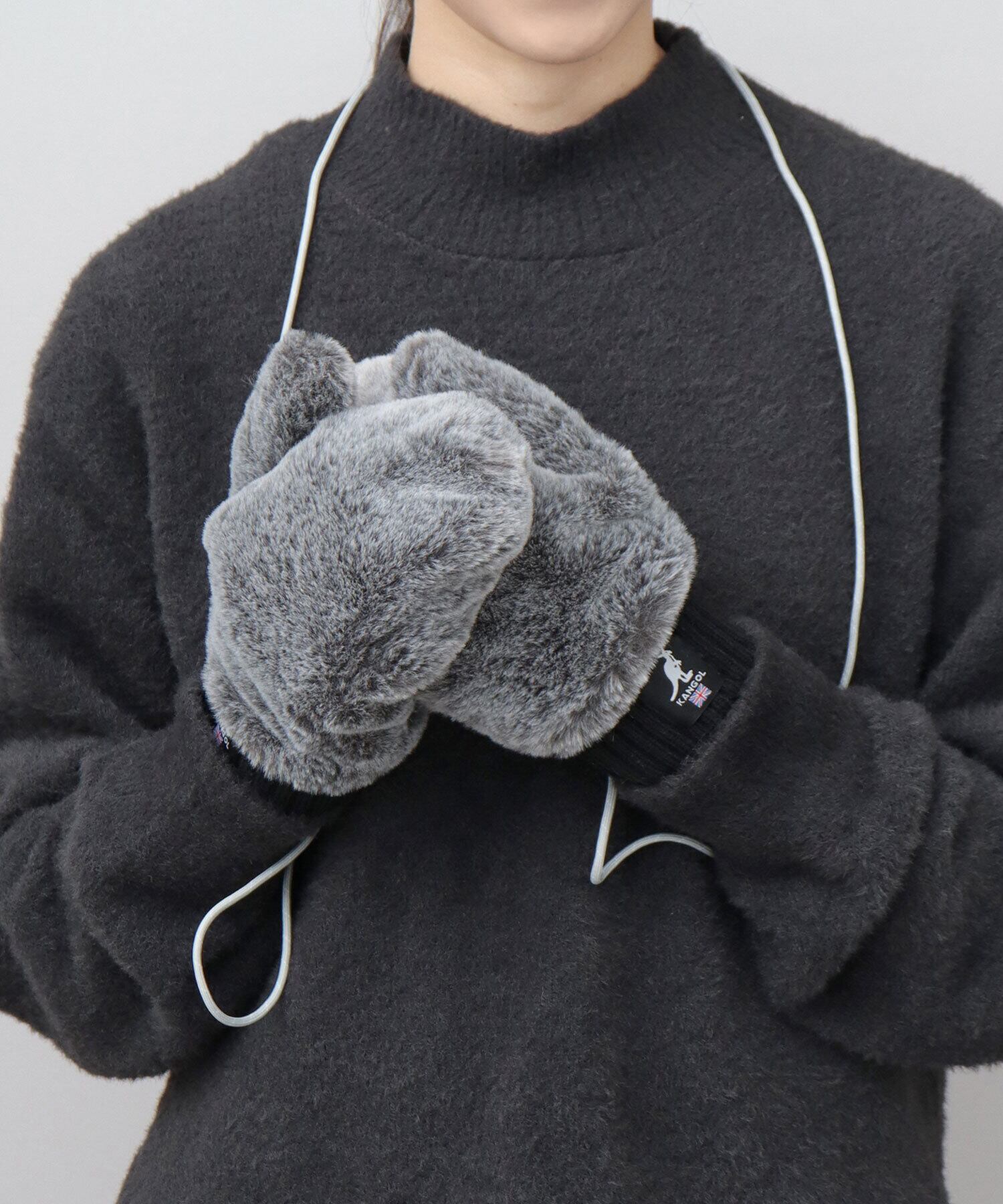 言わずと知れたイギリスの帽子ブランド“KANGOL(カンゴール)”のファーミトングローブ。表生地にふわふわのフェイクファーを使用した、大人可愛いデザイン。用途に合わせて、指先を出し入れして使うことができる2WAY仕様。スマホやタブレットの操作性を考えた、親指・人差し指の指先が出せる、ダイレクトタッチ仕様で、手袋の着用時の煩わしさを軽減。裏地に毛足の長いボア素材を使用し、カフス部分は風を通しにくいリブ仕様で保温性も抜群。手袋を使わない時は首にかけておける、マルチストラップ付き◎外出時の寒さ対策だけでなく、いつものコーディネートに取り入れるだけでシーズンムードをグッと高めてくれるオシャレアイテムです。