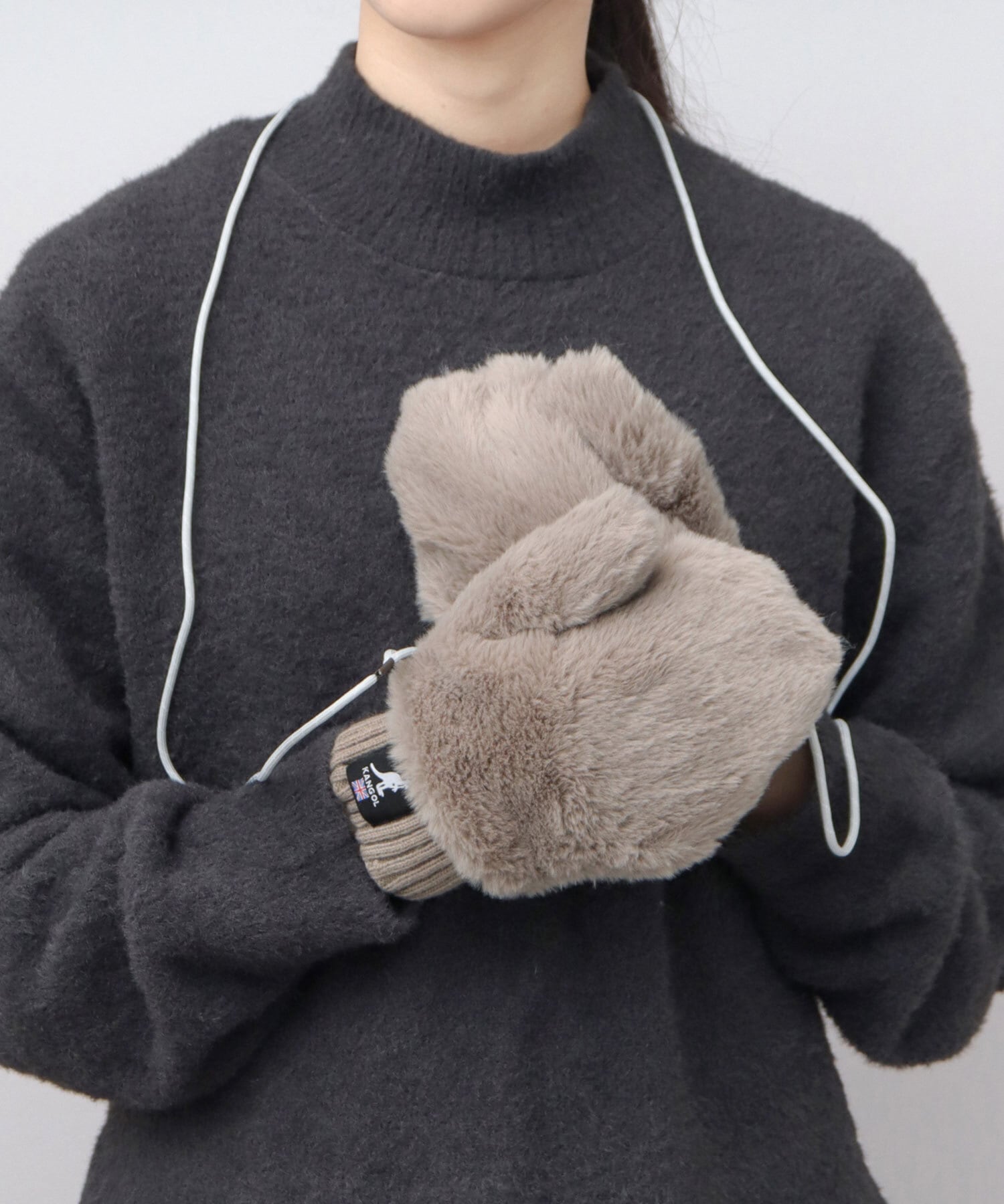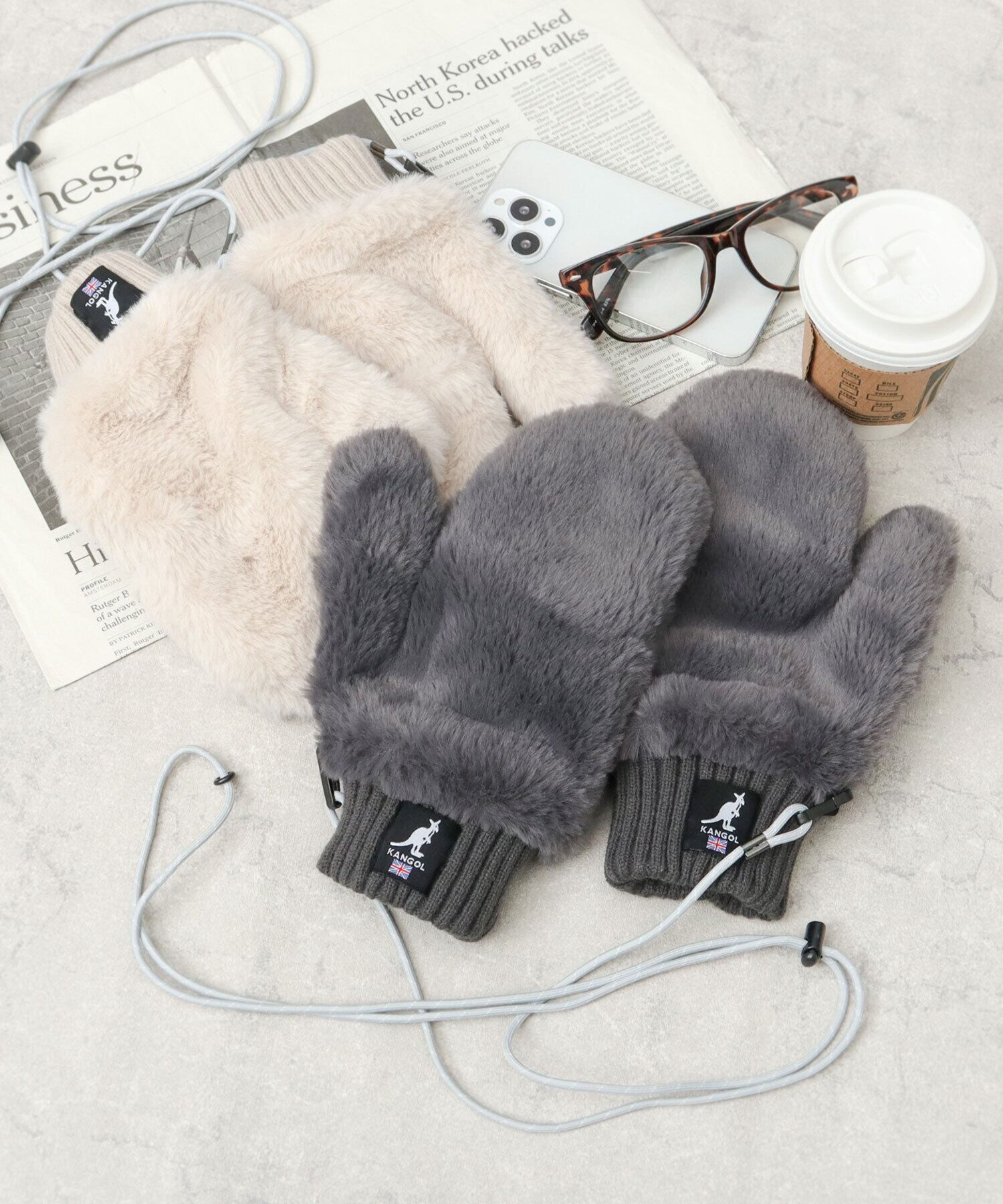 LFC-214 カンゴール KANGOL 手袋 ファー ミトン レディース ストラップ付 ミトングローブ 2WAY スマホ対応 裏ボア ふわふわ 暖かい 防寒 冬 通勤 通学 シンプル 無地 おしゃれ かわいい | A.M.S.