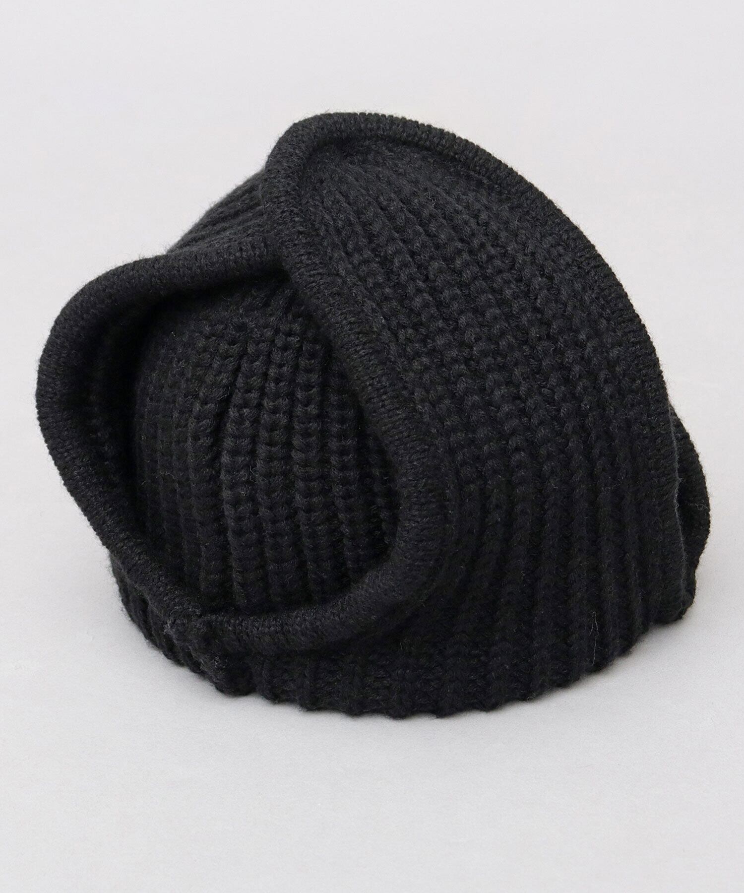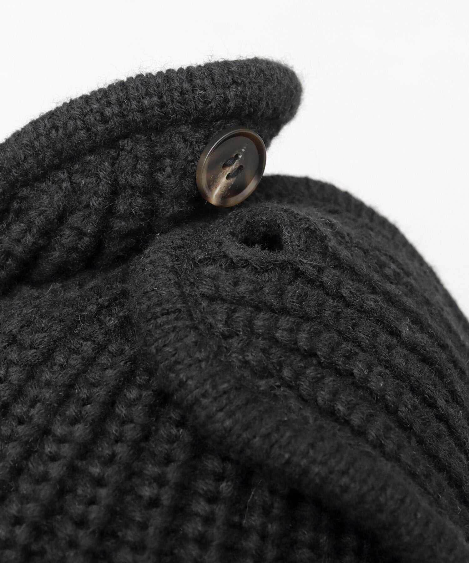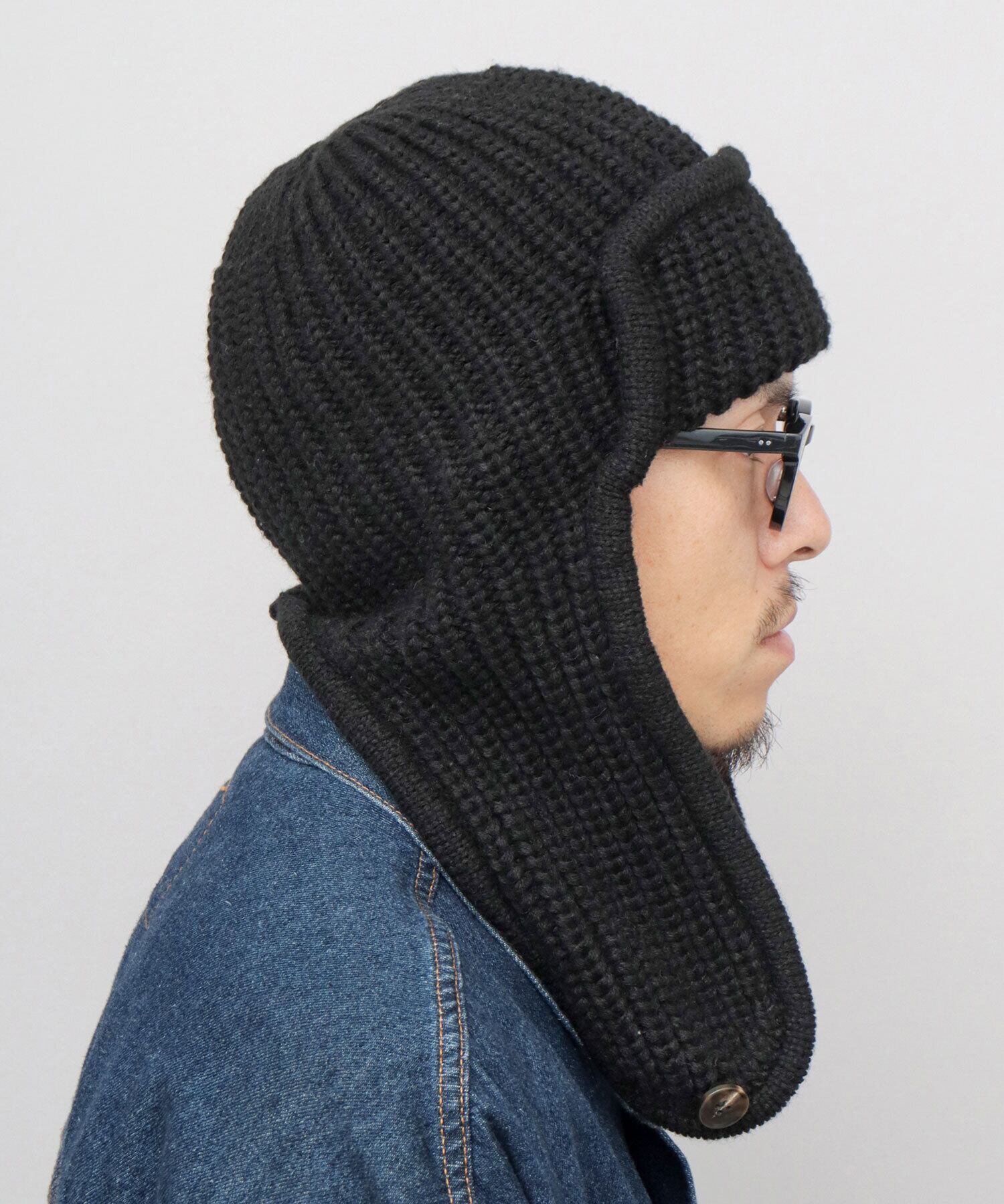 ボディ全体にざっくりリブ編みニット生地を使用したニットフライトキャップ。ざっくりボリューム感のある、ローゲージリブニット生地の暖かみのある表情と、程よいフィット感が魅力。左右の長めの耳当ては見た目の暖かさはもちろん、存在感も抜群。耳当てには、頭の上、あご下でとめることができるボタン付き。耳当て部分はラフに垂らしておけば秋冬コーデのアクセントになります。普段使いにはもちろん、タウンユースやアウトドア・レジャー、ウィンタースポーツなど、アクティブなシーンにもおすすめです。