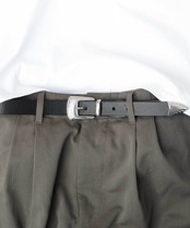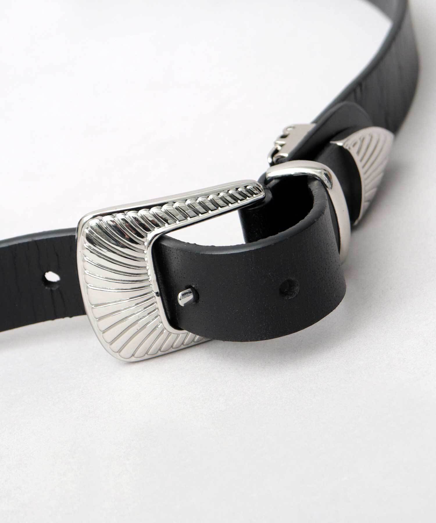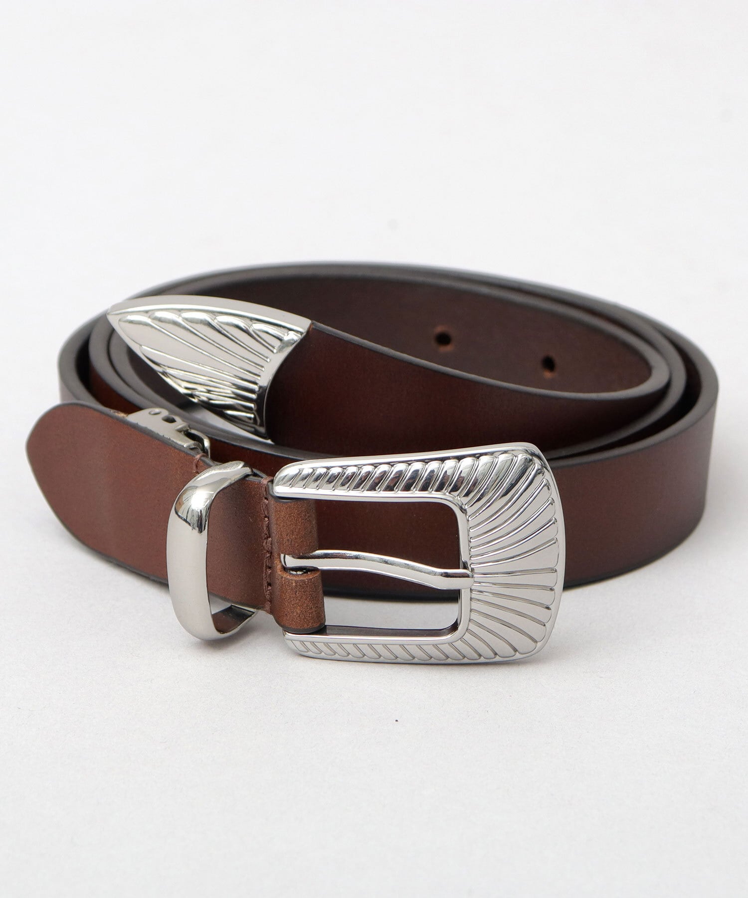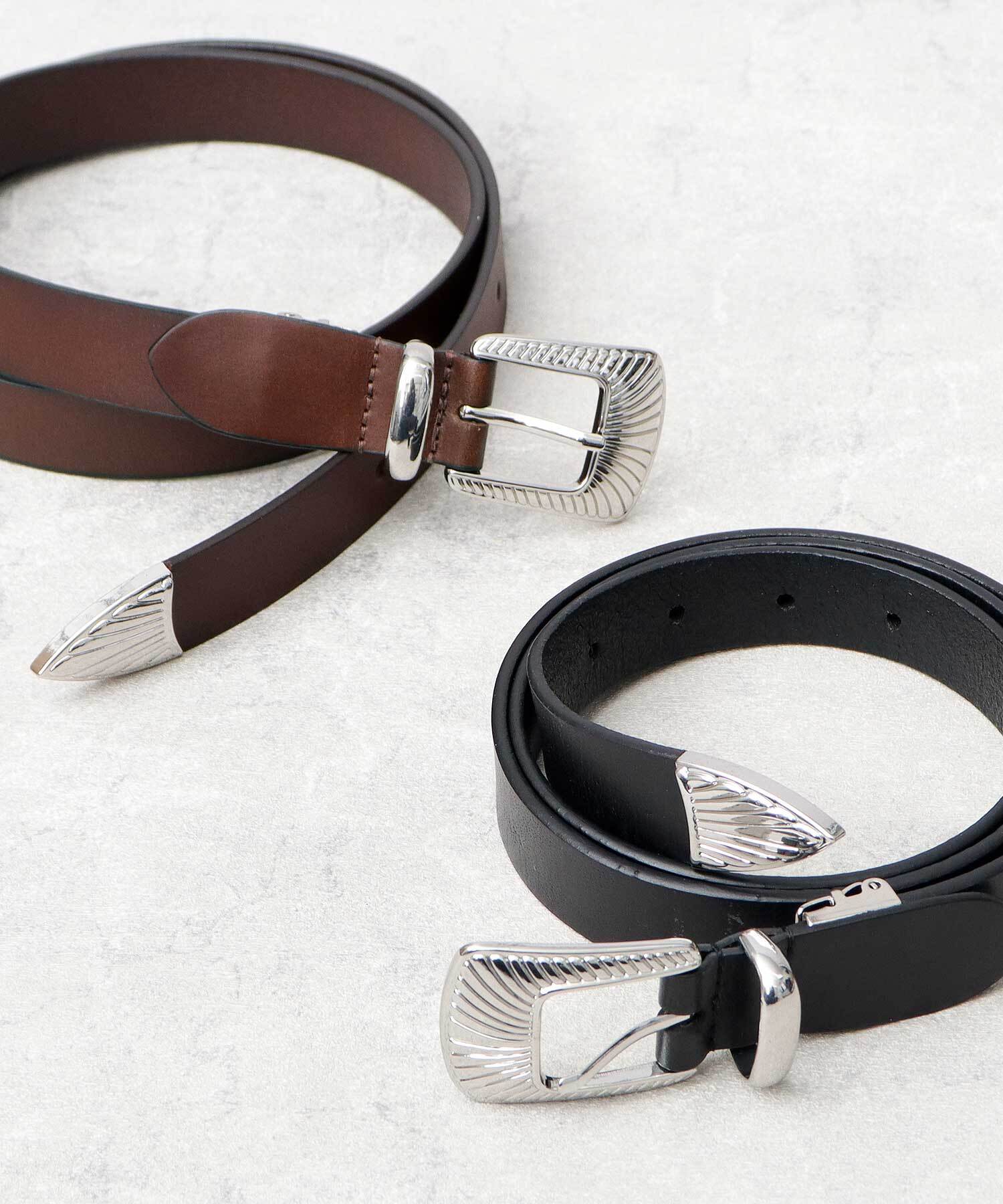 バックルと先止金具には、フラッシュシルバーのウエスタン調メタルパーツを採用。