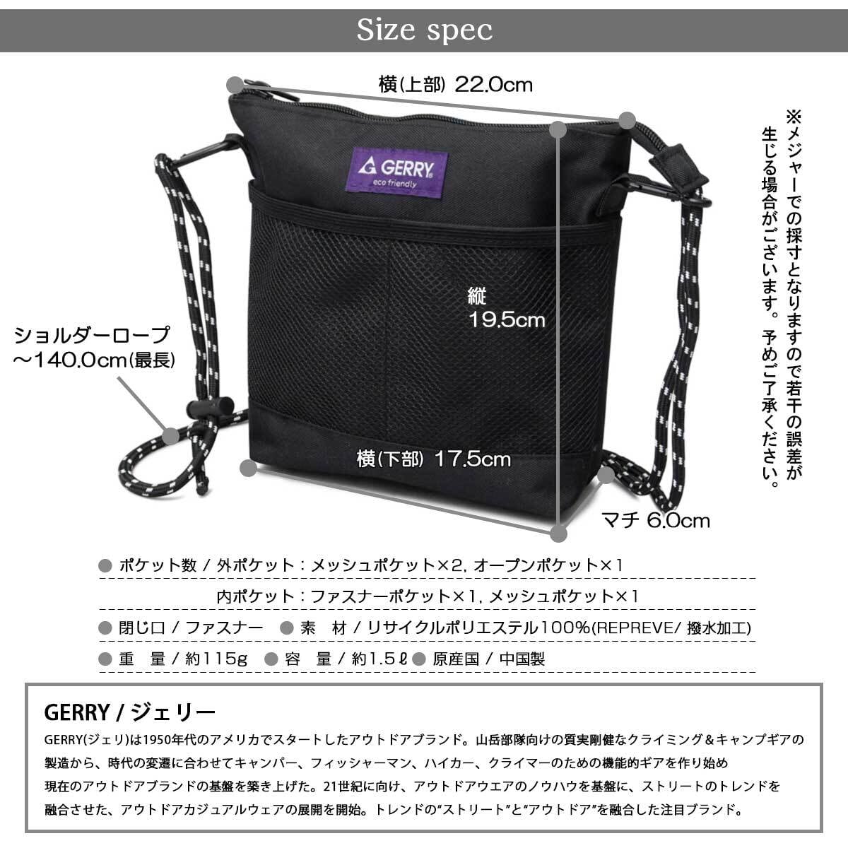 YMM-294 ジェリー GERRY サコッシュ 撥水 ミニショルダー メンズ レディース 斜めがけ ショルダーバッグ 多収納 メッシュポケット ポーチ 軽量 シンプル カジュアル アウトドア おしゃれ | A.M.S.
