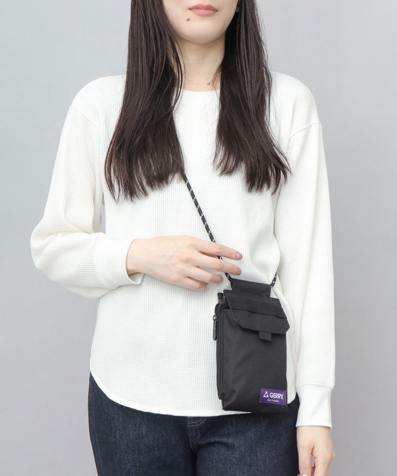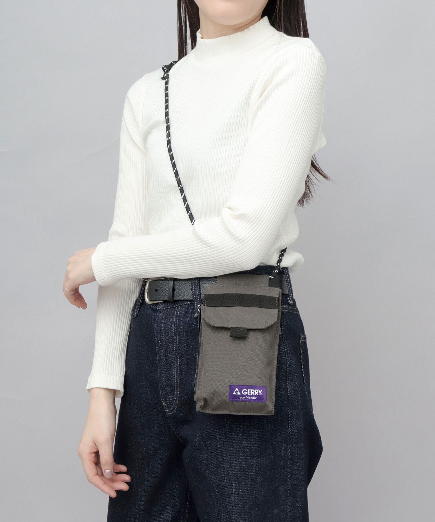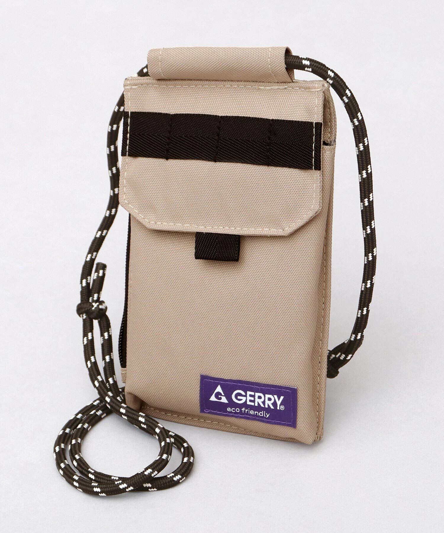 アメリカの老舗アウトドアブランド“GERRY(ジェリー)”のスマホショルダーバッグ。スマホケースとお財布が一緒になった、最低限の必需品を持ってお出掛けしたい時にぴったりのアイテム。素材にリサイクルポリエステルを使用した、サスティナブルなアイテム。撥水加工を施しているので、急な雨や水濡れにも安心!