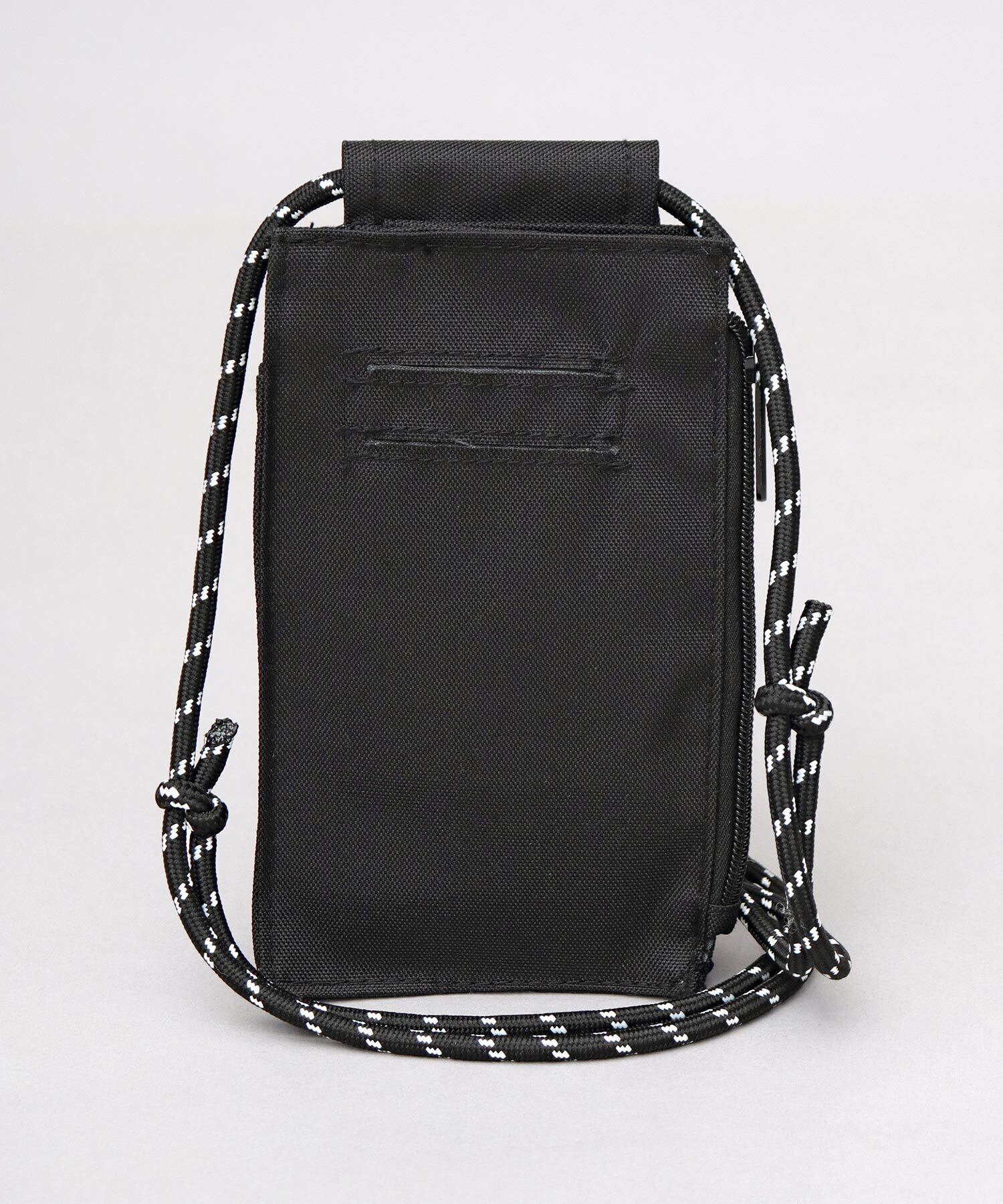 ザイルコードのショルダーロープを取り付け、アウトドア感をプラスした、スマートフォンと最低限の小物が収納可能なスマホポーチ。コンパクトなサイズでありながらも、小物を仕分けて収納できる実用的な作りがポイント。