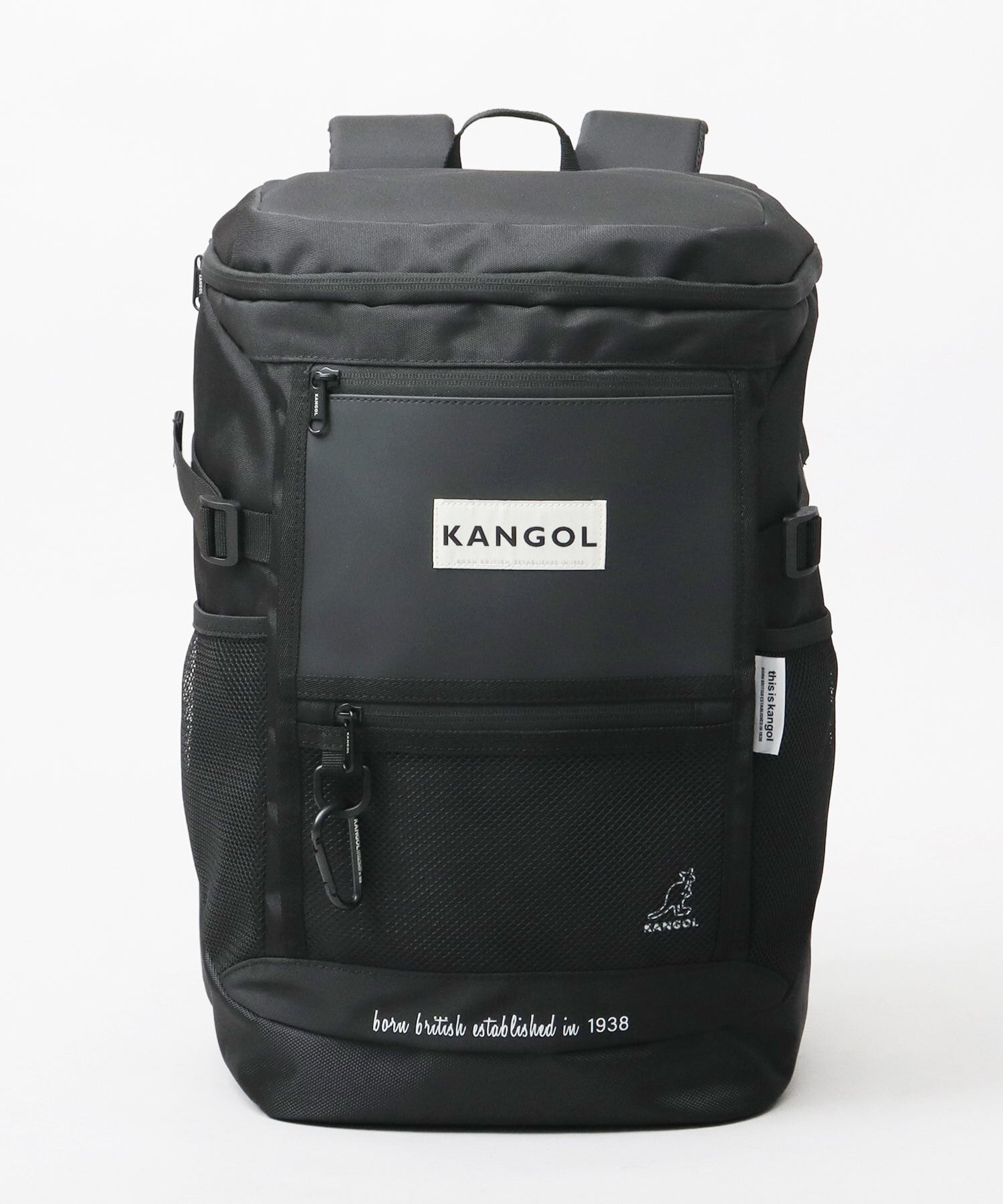 DYS-183 KANGOL カンゴール リュック バックパック ボックス型 大容量 メンズ レディース ボックスリュック コの字型ファスナー 通勤 通学 学生 旅行 アウトドア スポーツ 合宿 シンプル ロゴ 黒 ブラック カラビナ付き おしゃれ | A.M.S.