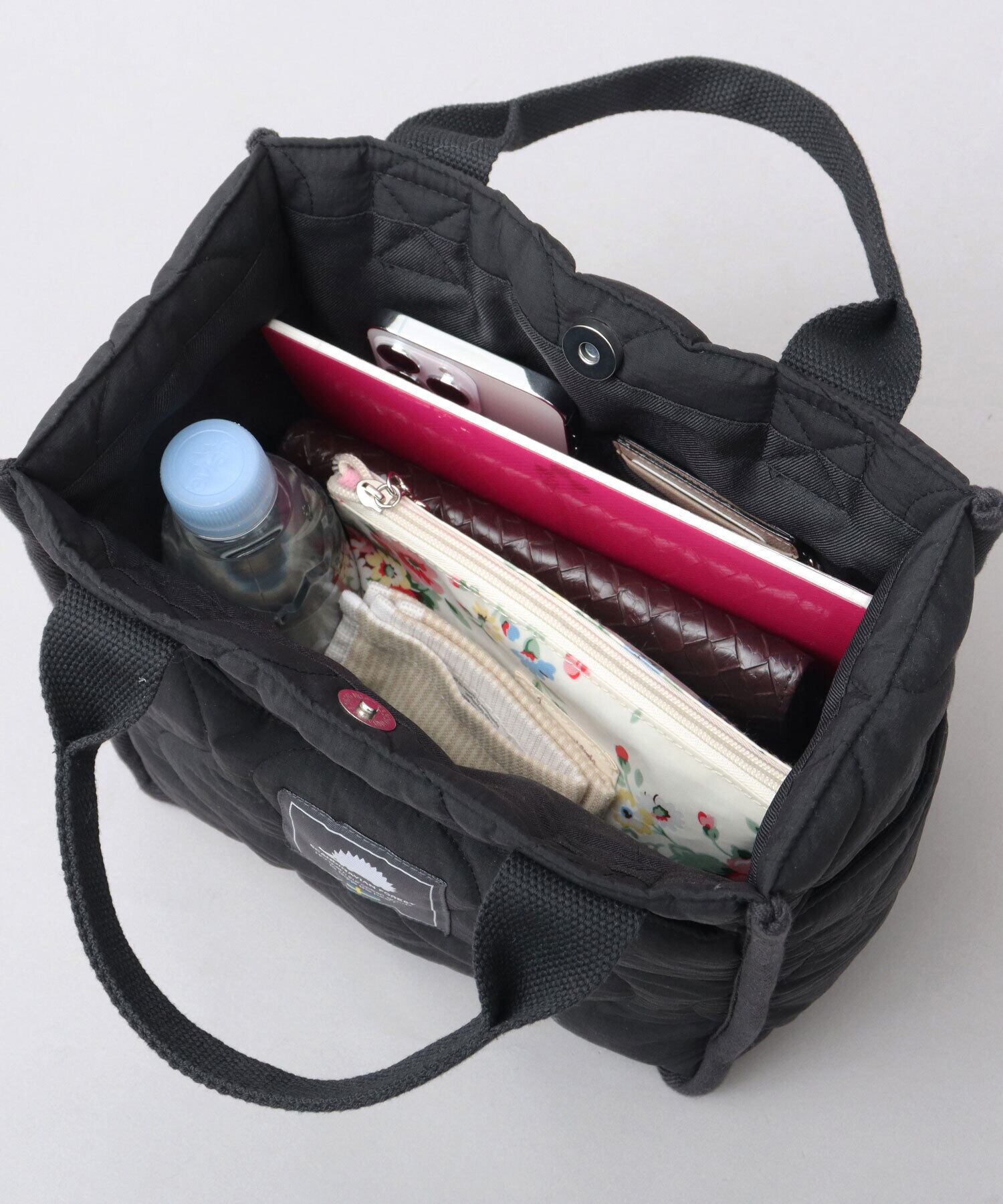 ふっくら立体感のあるキルト生地を使用した、キルトトート。フロントのブランドタグがシンプルデザインのワンポイントに。