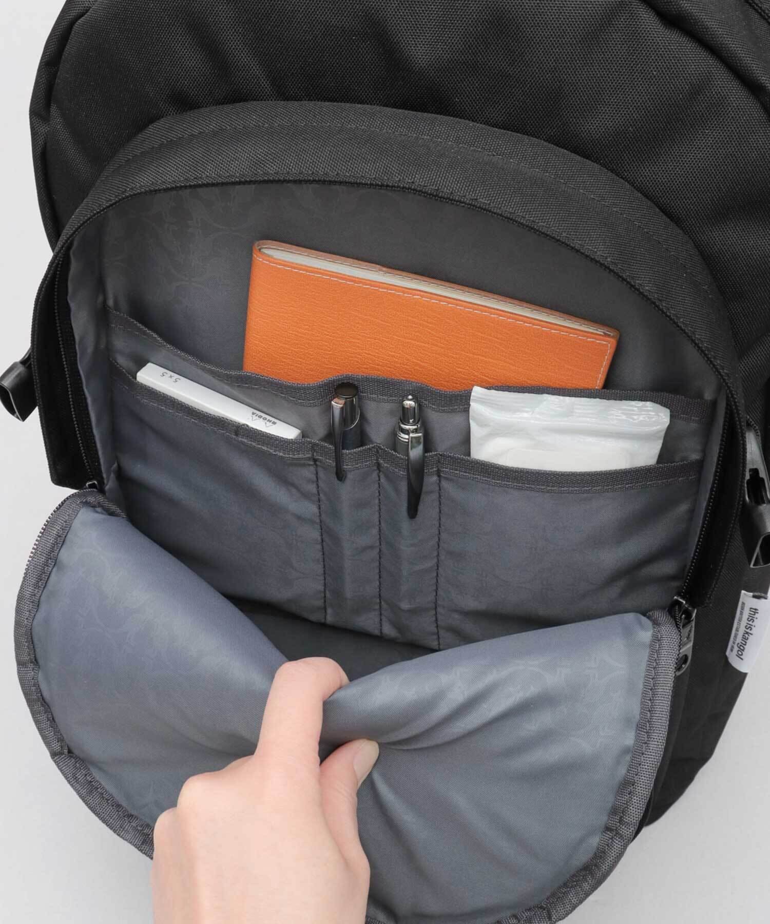 背面には、背負ったままでもサッと取り出せるファスナーポケットを完備。貴重品をしまう、セキュリティポケットとしてもご使用頂けます。
