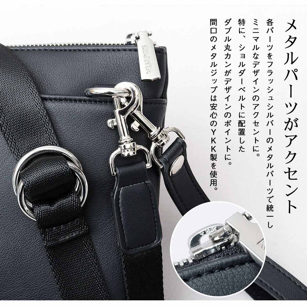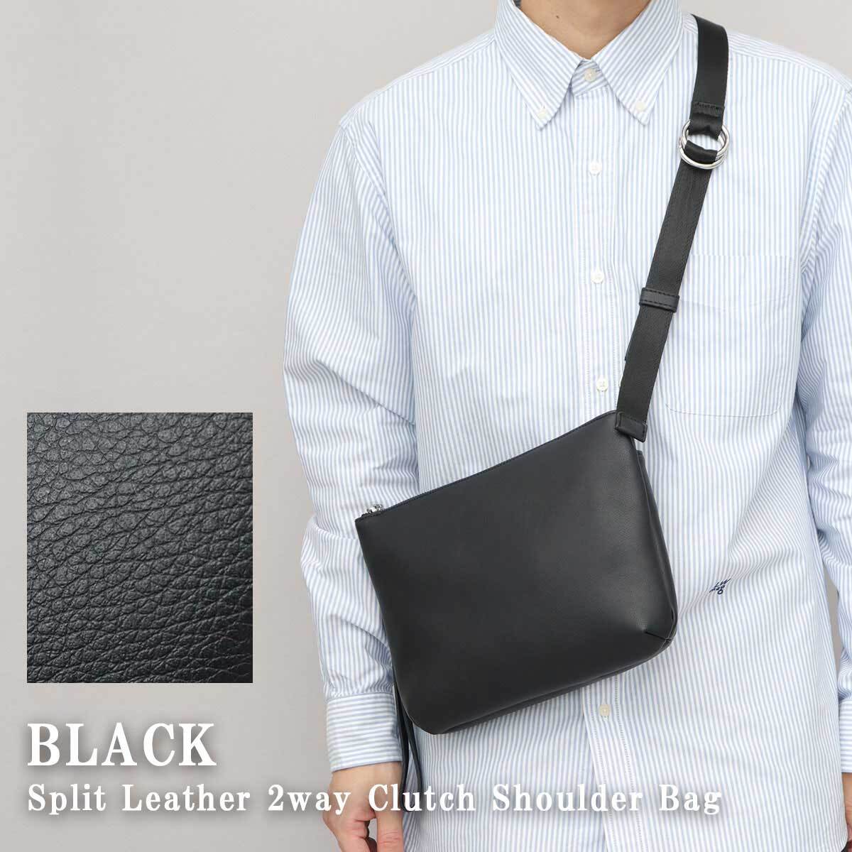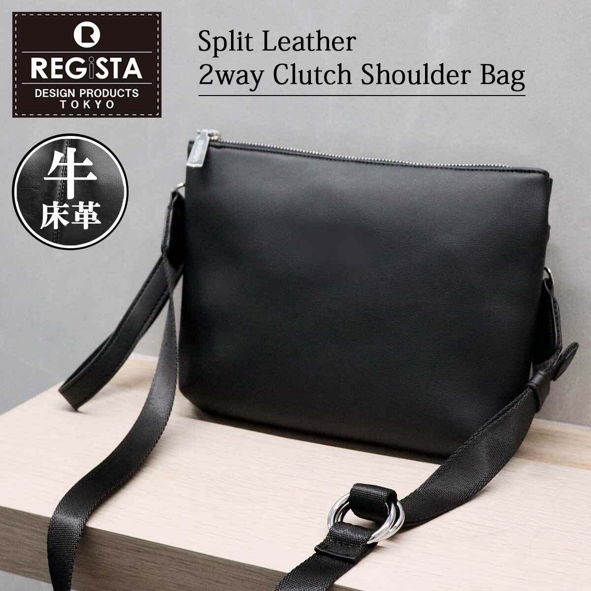 7025 ショルダーバッグ メンズ レディース 2WAY クラッチバッグ スプリットレザー 小さめ A5 斜めがけ 肩掛け シンプル 無地 ブラック きれいめ モード 大人カジュアル レジスタ REGiSTA