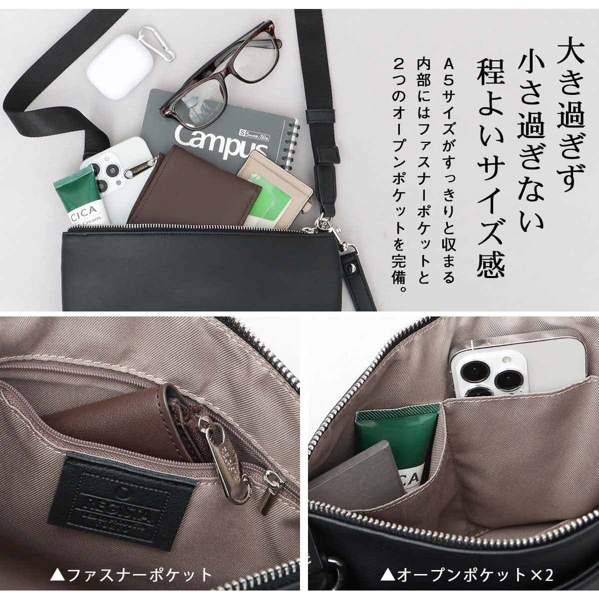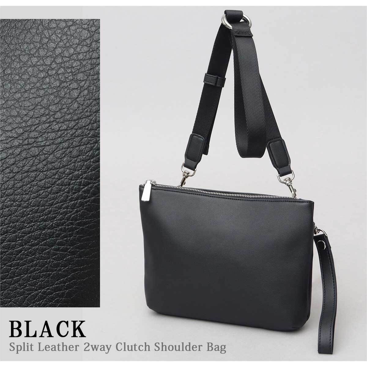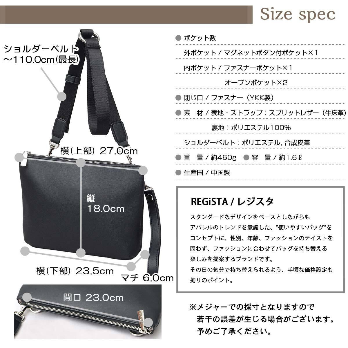 7025 ショルダーバッグ メンズ レディース 2WAY クラッチバッグ スプリットレザー 小さめ A5 斜めがけ 肩掛け シンプル 無地 ブラック きれいめ モード 大人カジュアル レジスタ REGiSTA