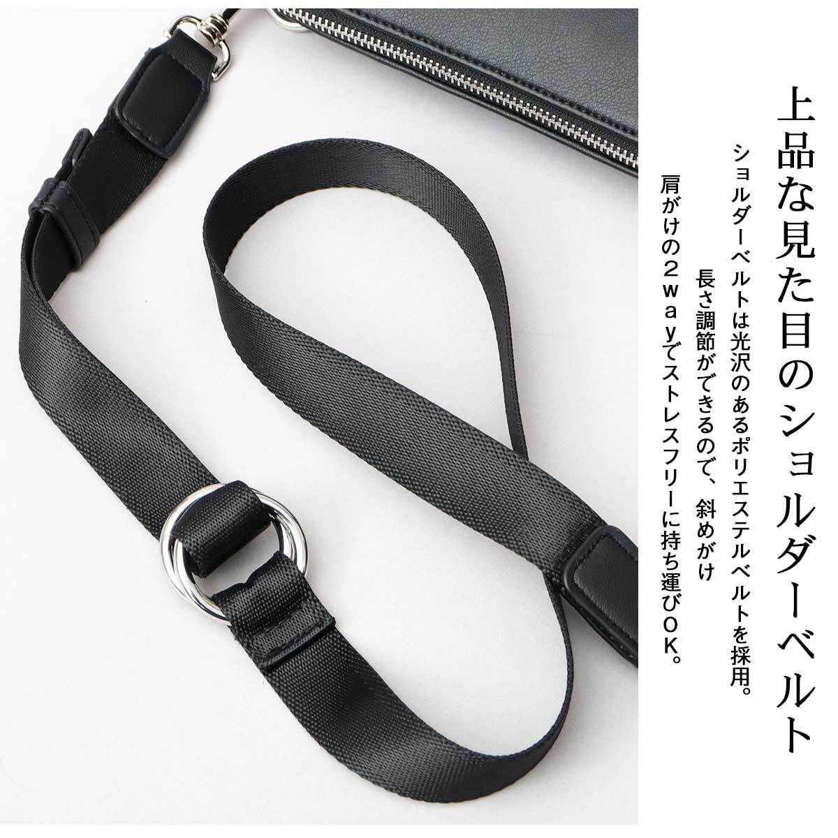 ショルダーベルトは光沢のあるポリエステルベルトを採用。長さ調節ができるので、斜めがけ、肩がけの2wayでストレスフリーに持ち運びOK。■