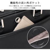 フロント部分には、スマートに荷物の出し入れができるマグネットボタン付きポケットを配置。