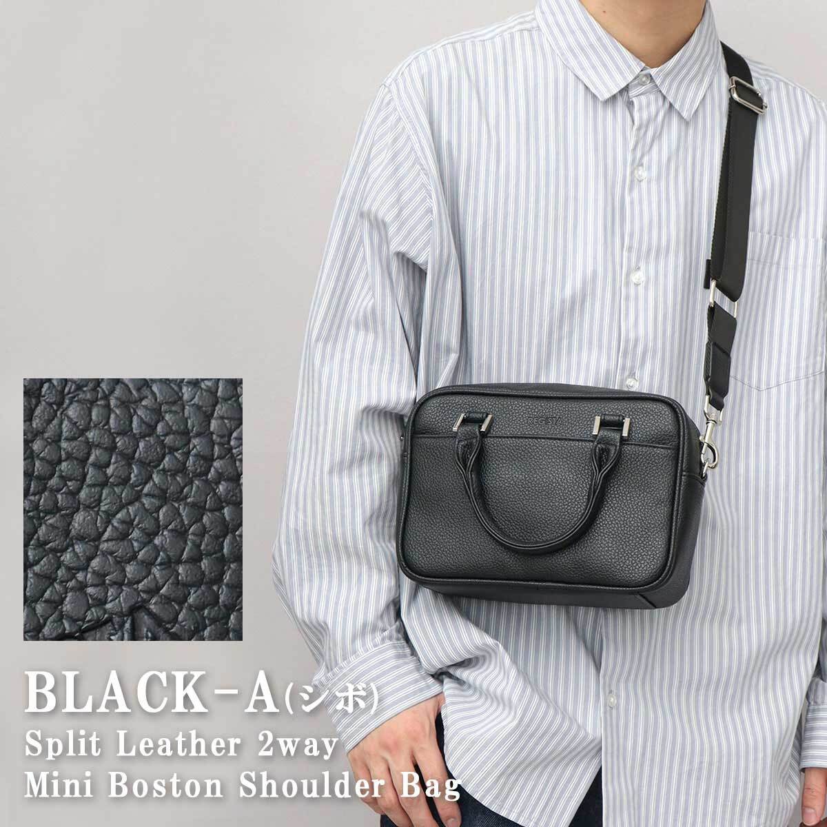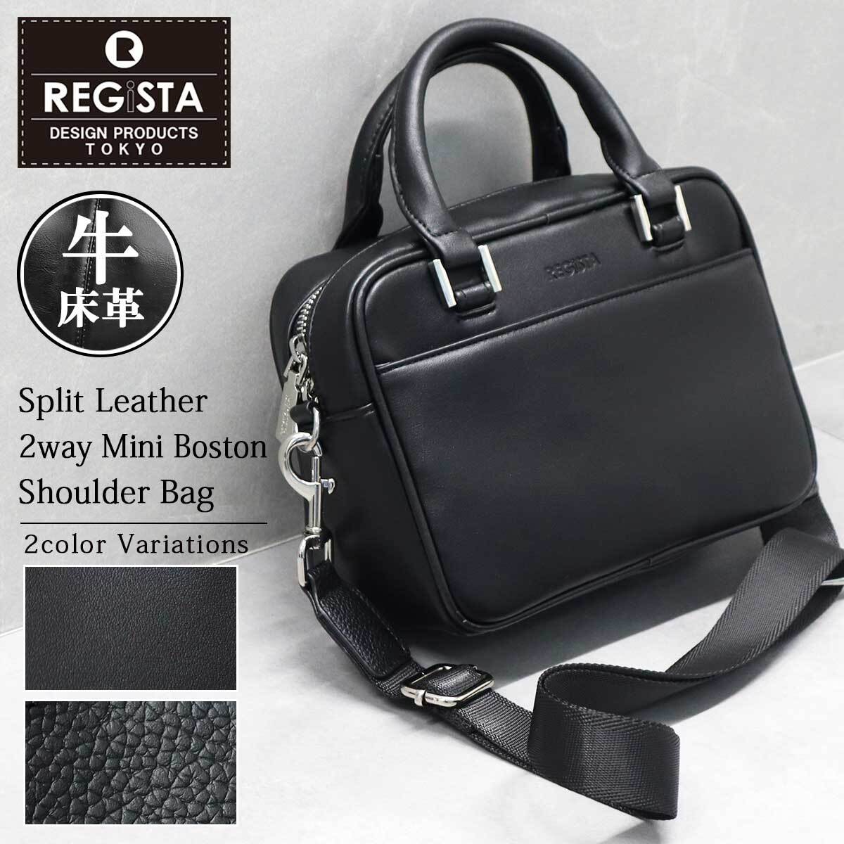7028 ミニボストンバッグ メンズ レディース 2WAY ショルダーバッグ スプリットレザー 牛床革 レザーバッグ 斜めがけ 小さめ シンプル ブラック きれいめ モード 大人カジュアル レジスタ REGiSTA | A.M.S.