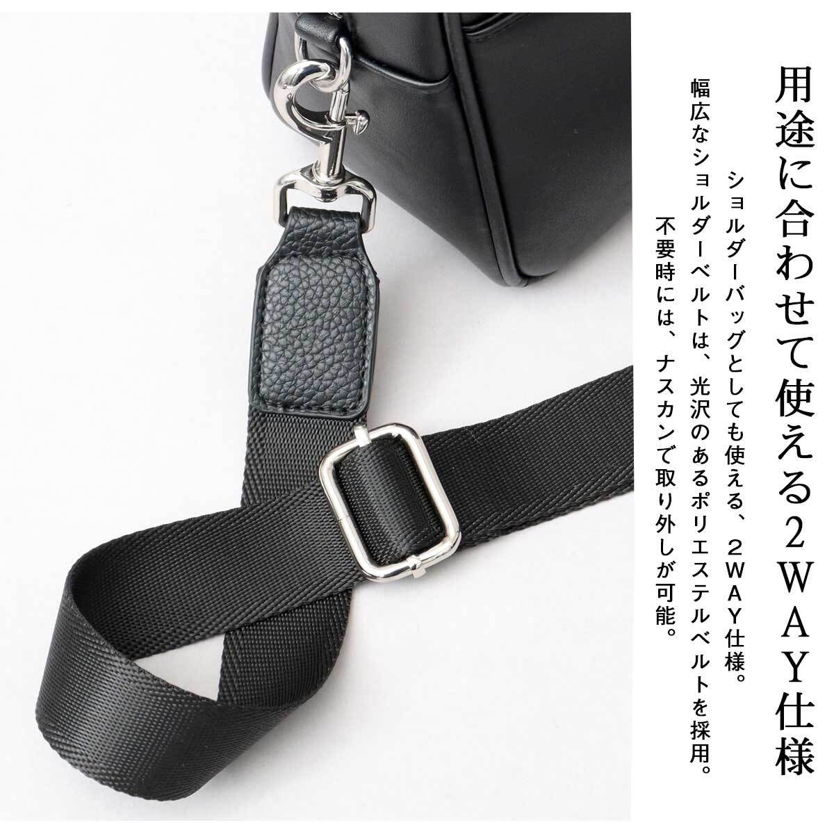 ショルダーバッグとしても使える、2WAY仕様。幅広なショルダーベルトは、光沢のあるポリエステルベルトを採用。不要時には、ナスカンで取り外しが可能。