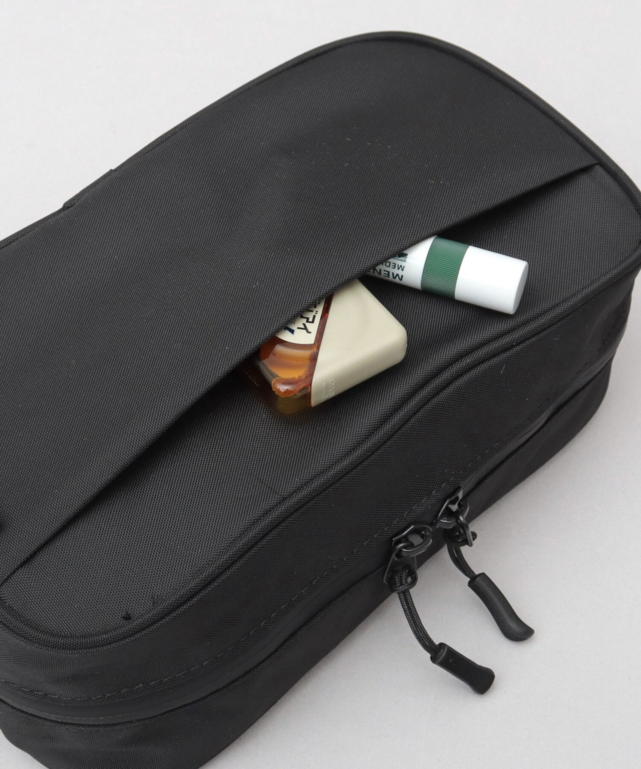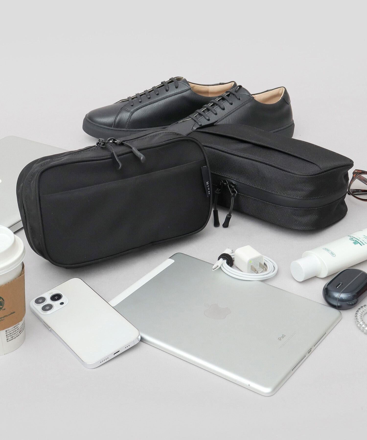モバイルバッテリーやケーブルを入れてガジェットケースとして、リップやお直し用のファンデーションを入れてメイクポーチとしてなど、撥水生地を使っているからこそ、アイテムを選ばず収納できます。豊富なポケットで、迷子になりがちな細かいアイテムも整頓して持ち運べるのが嬉しい◎気分やコーディネートに合わせてバッグを変えても、そのままポーチを入れ替えるだけなので楽チン。ユニセックスで使えるシンプルなデザインなのでプレゼント・ギフトにもオススメです。