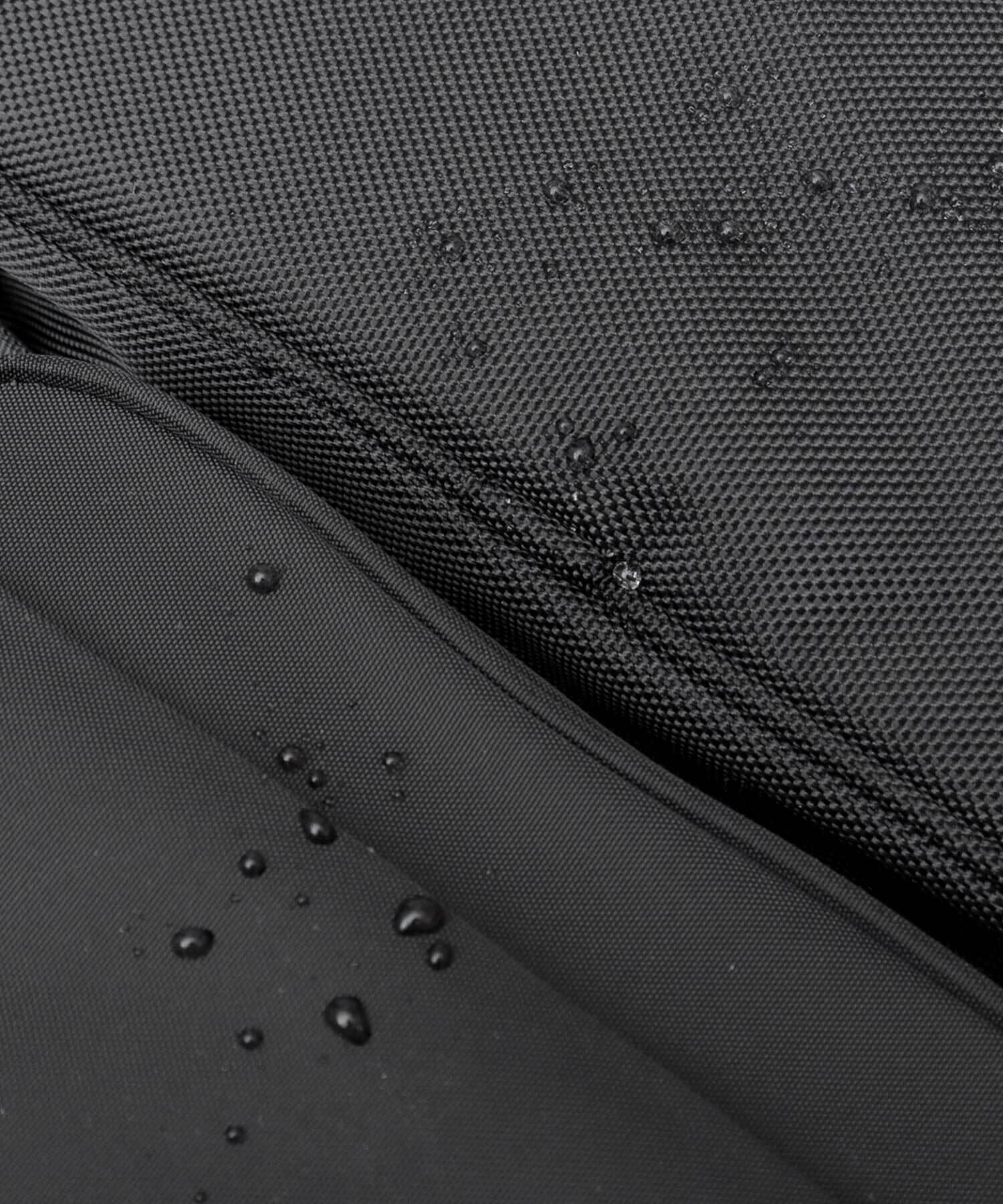 癖のないスタンダードなナイロン素材と、堅牢でタフな質感のバリスティック調ポリエステル素材の2タイプを用意。撥水加工が施されているので、急な雨や水濡れにも安心。