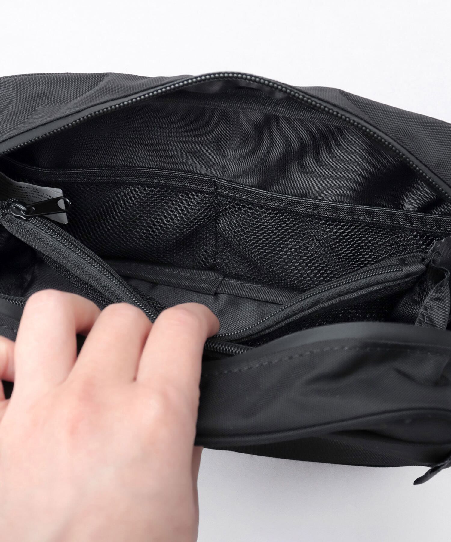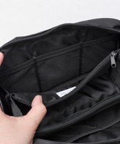 収納スペースは、2つのファスナーポケットで仕切られ、中が見渡しやすい3ブロック仕様。前面・背面に、計5つの小物ポケットを完備。メッシュ生地を使用したポケットは、視認性が良く、少ないストレスでアイテムの出し入れが可能。