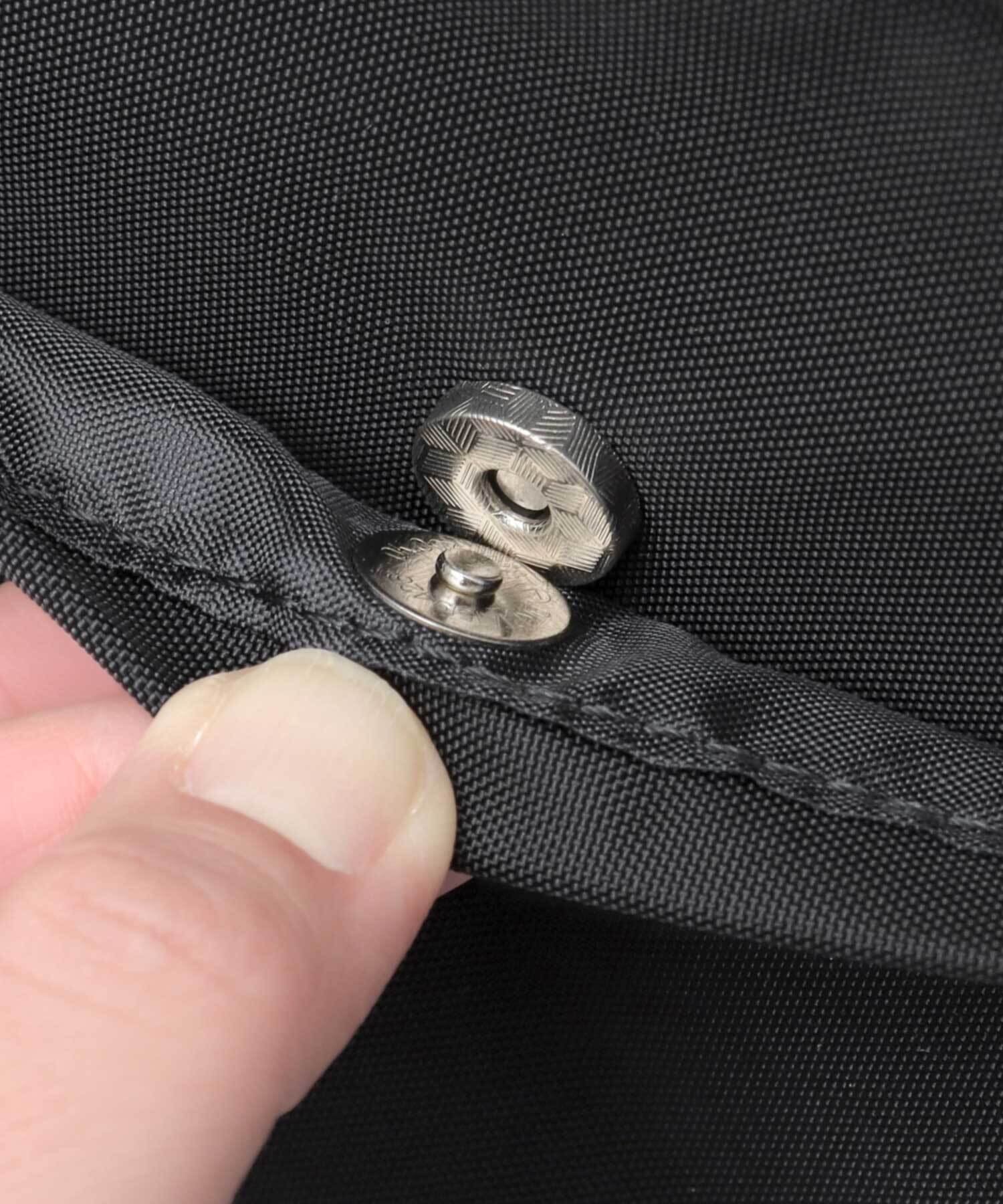 フロントには、マグネットボタン付きポケットを配置。使用頻度の多い小物類の収納に便利◎