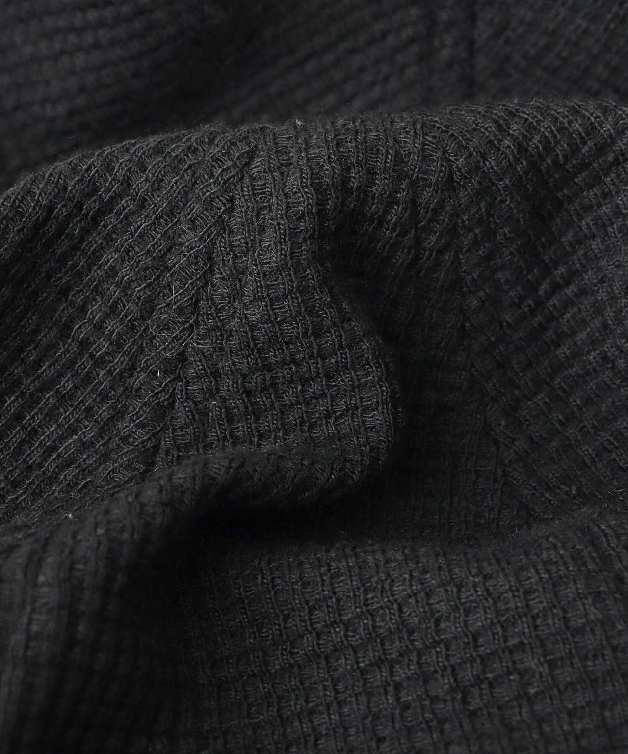 素材には、UV99%カット機能付きのワッフル生地を使用。通気性に優れた、柔らかな凹凸感のある生地目とソフトな風合いが抜け感を演出。吸水性・吸湿性に優れ、汗をかいてもベタつきにくい生地感が魅力。
