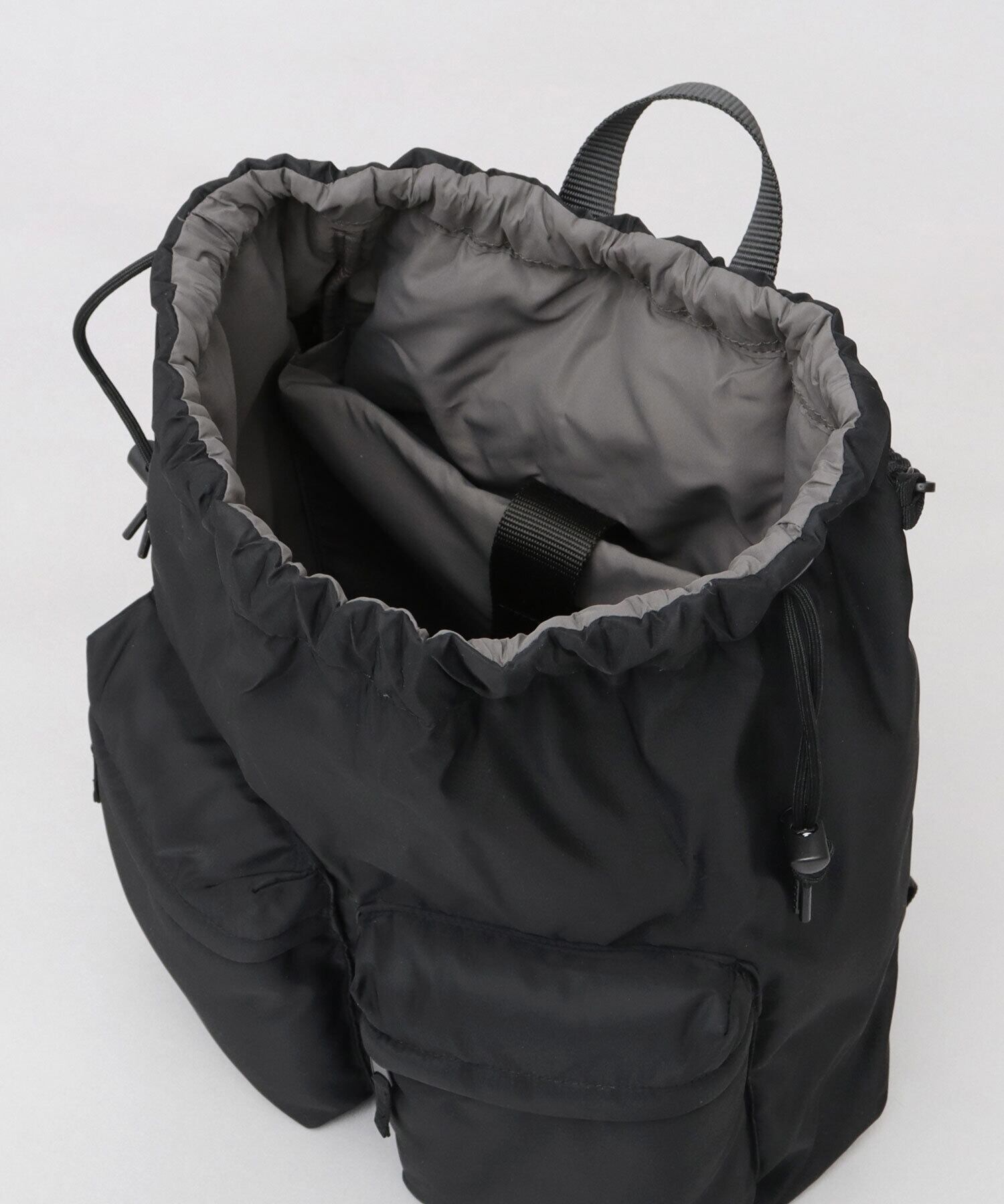 艶のある、柔らかいフォルムのボディに、フロントのダブルポケットが目を惹く、ドロストバックパック。ミリタリーアイテムとして使用されていたボンサックをイメージソースに、現代においてデイリーに使いやすいようにリデザイン。