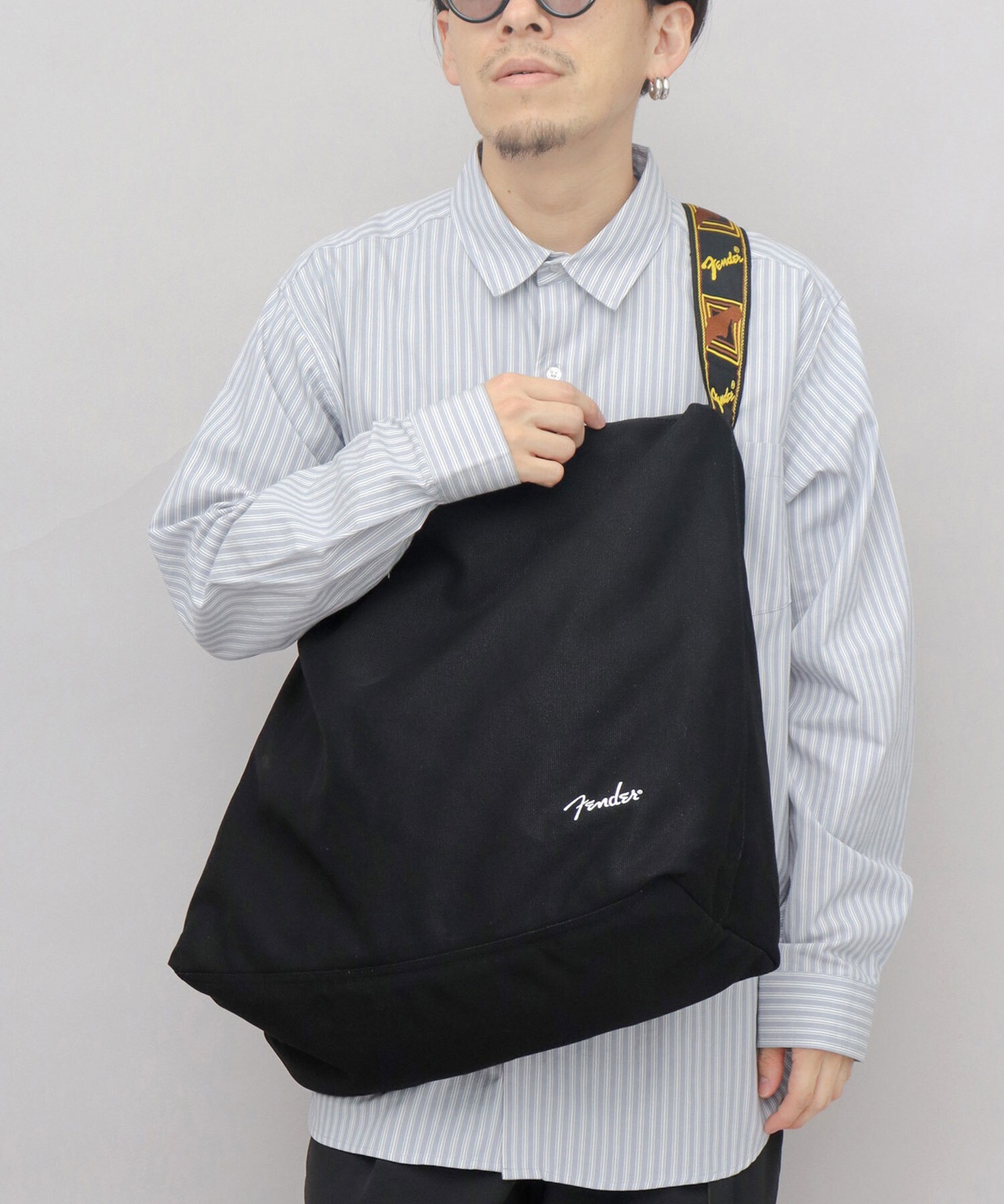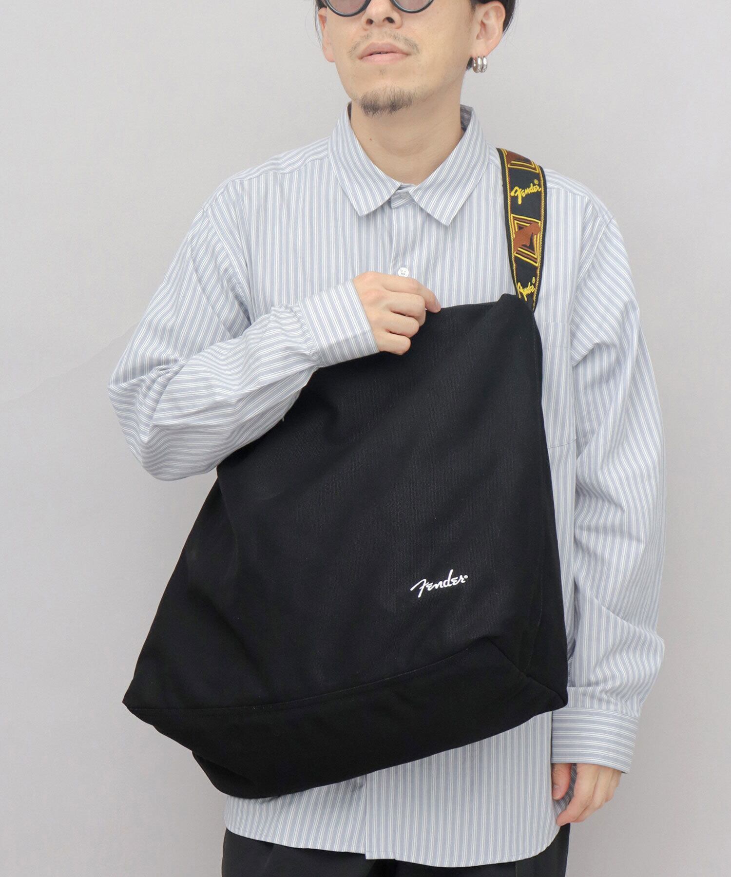 SNY-081 Fender フェンダー キャンバスショルダーバッグ メンズ レディース 大容量 A3 A4 モノグラムストラップ 通勤 通学 斜めがけ ビッグショルダー シンプル ブラック カジュアル