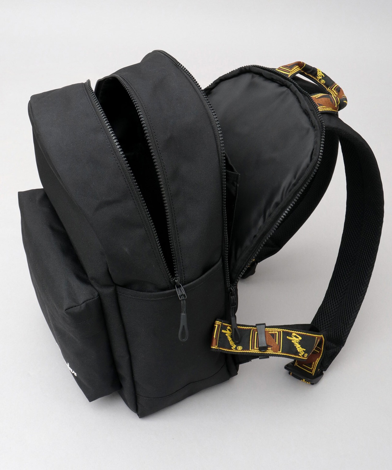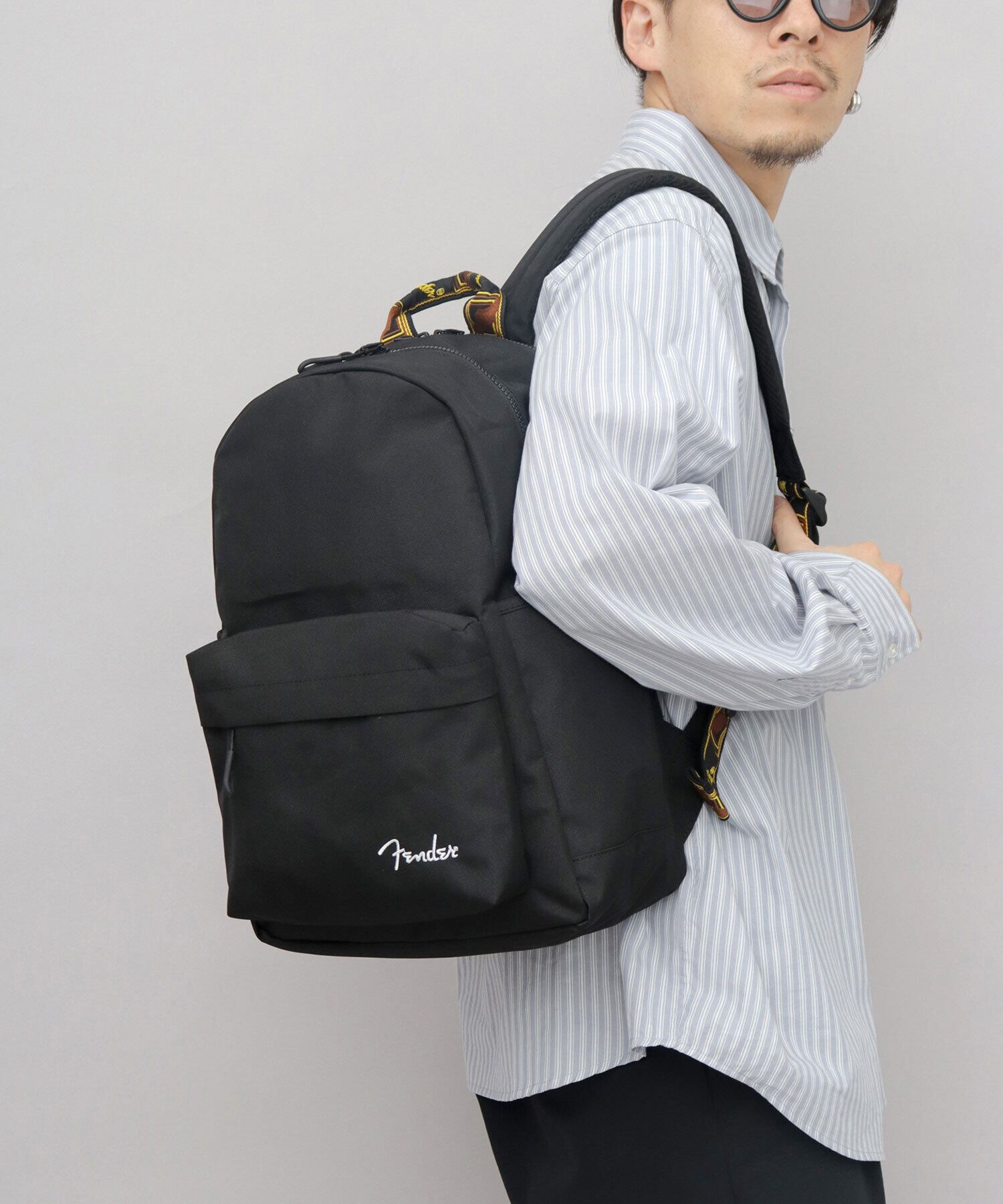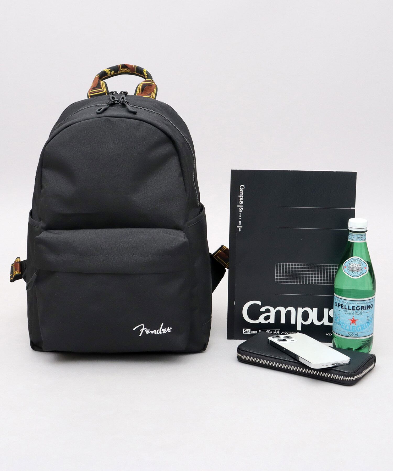 SNY-084 Fender フェンダー リュック メンズ レディース ラウンドリュック デイパック モノグラムストラップ 15L A4 PC収納 2層式 CORDURA 大容量 通勤 通学 シンプル ブラック カジュアル | A.M.S.