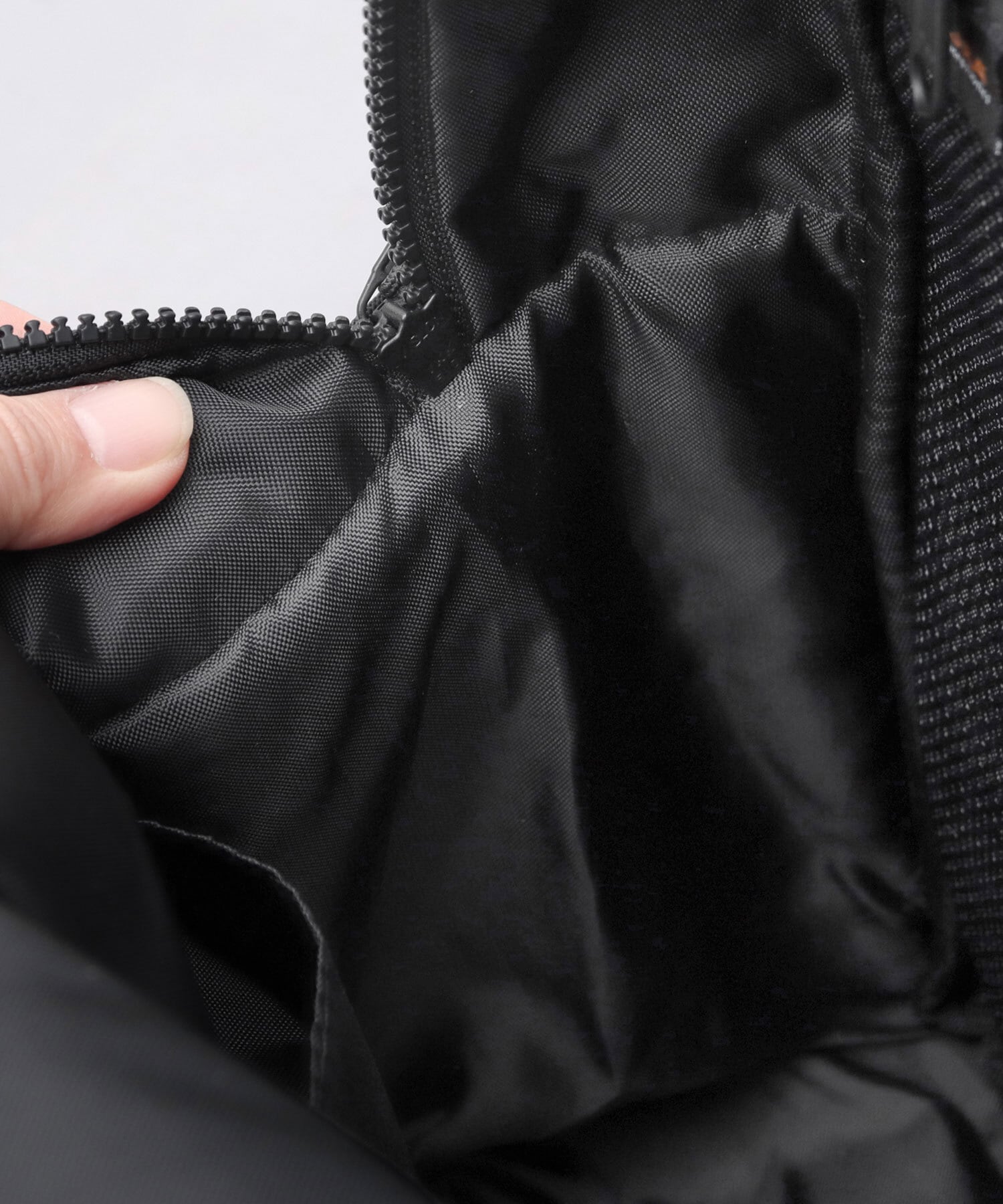 各ファスナーは、安心のYKK製。外側のファスナーには、ジッパータブ付きで、スムーズに開閉が可能。