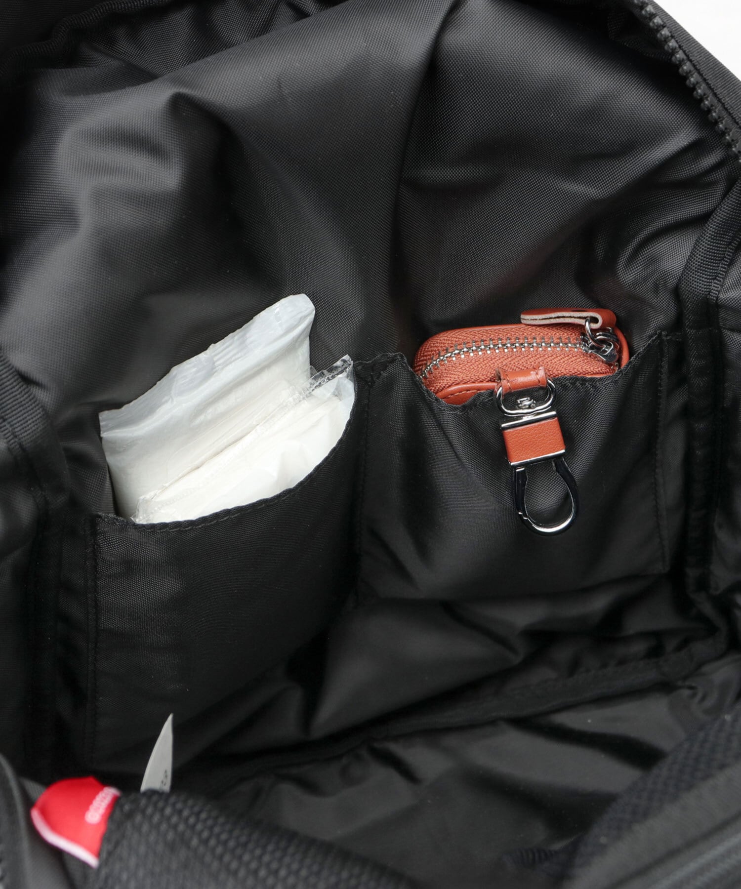 内ポケット(2層目):ファスナー付メッシュポケット×1, オープンポケット×2/