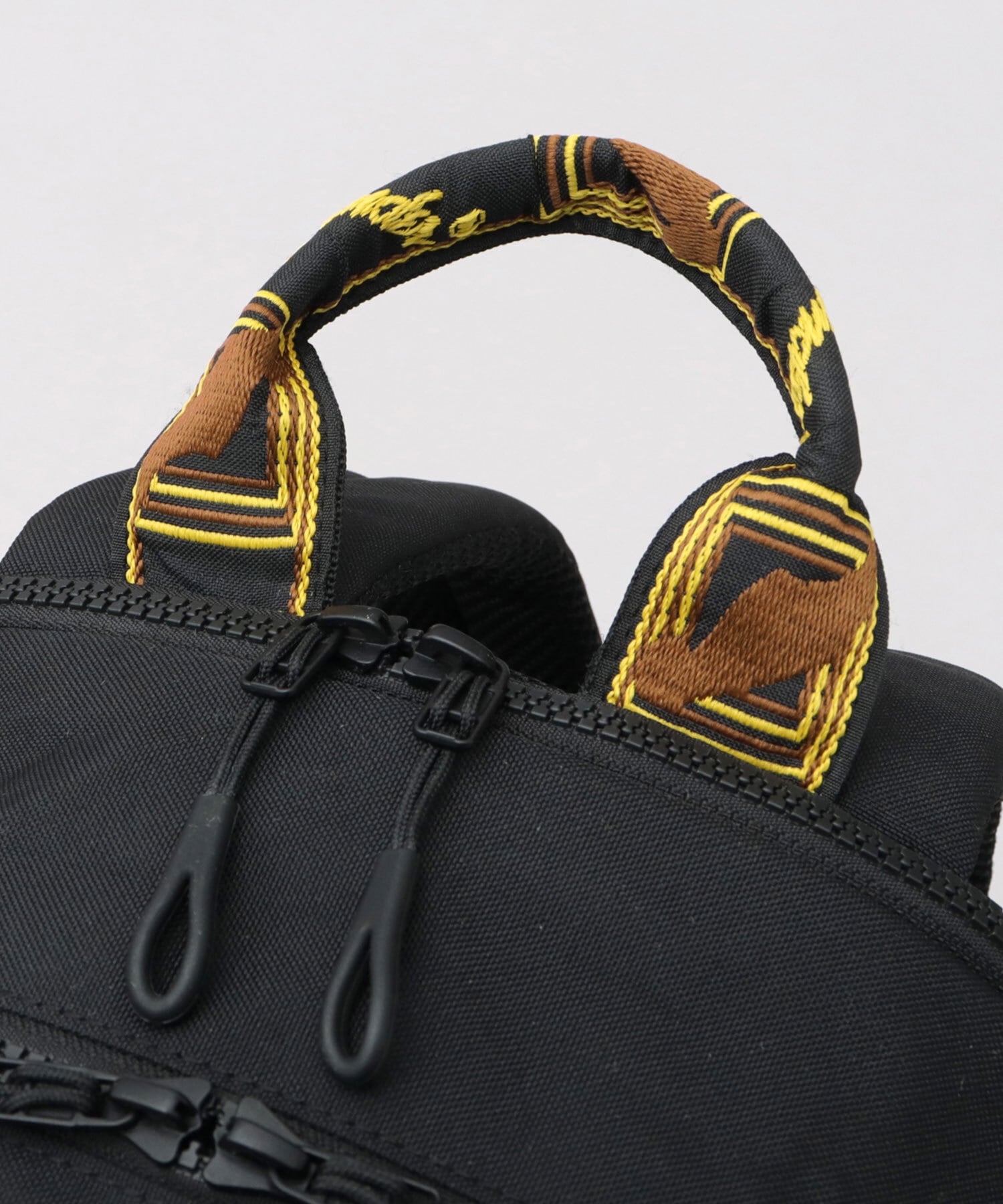 フロント部分には、立体感のあるファスナーポケットを配置。サイドに配置された、刺繡ロゴがアクセントに。