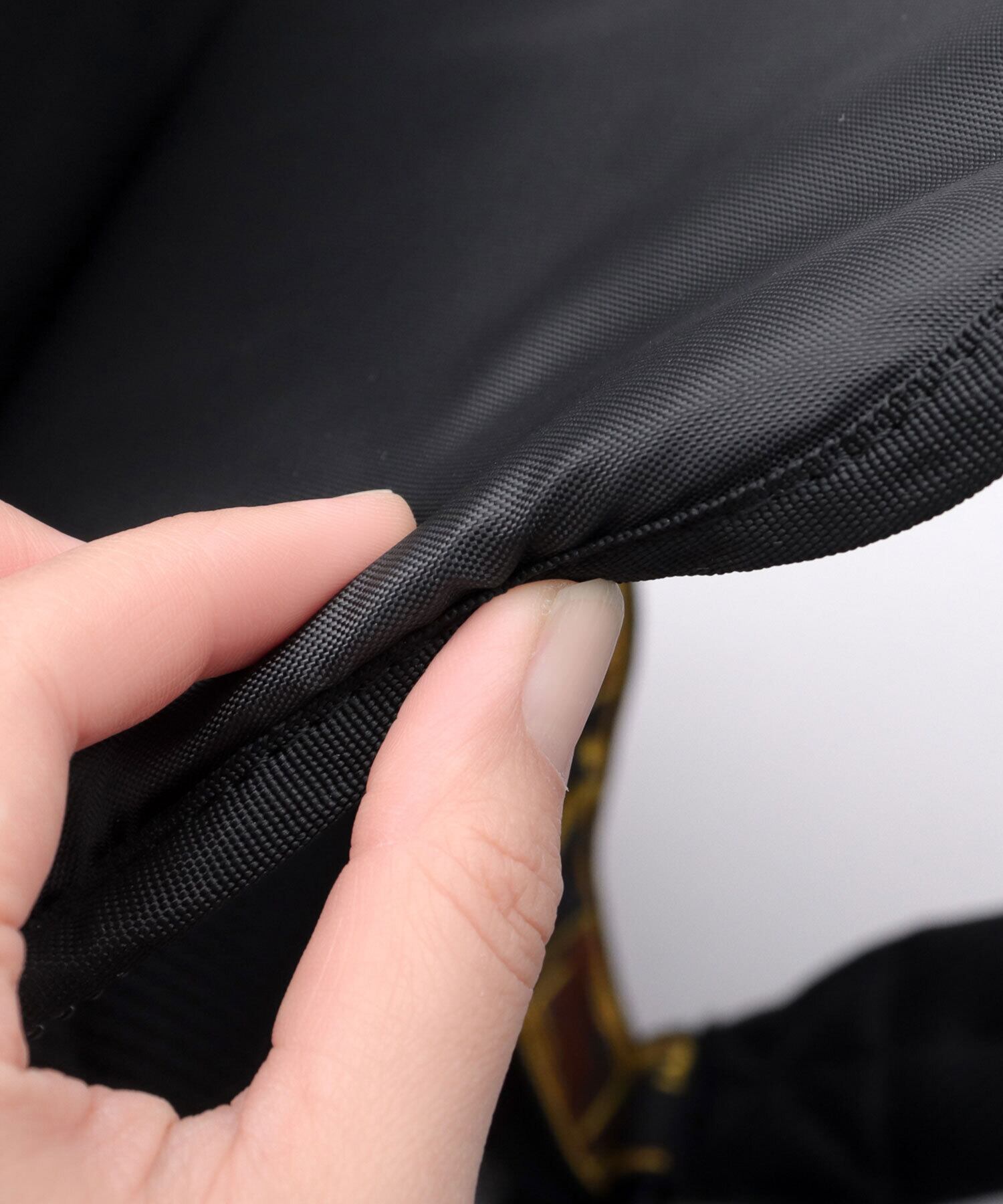 素材には、軽量かつ耐久性に優れた、インビスタ社の登録商標生地CORDURAポリエステルを採用。バッグ内側に配置されたピスネームが、『タフで丈夫な素材』の証。