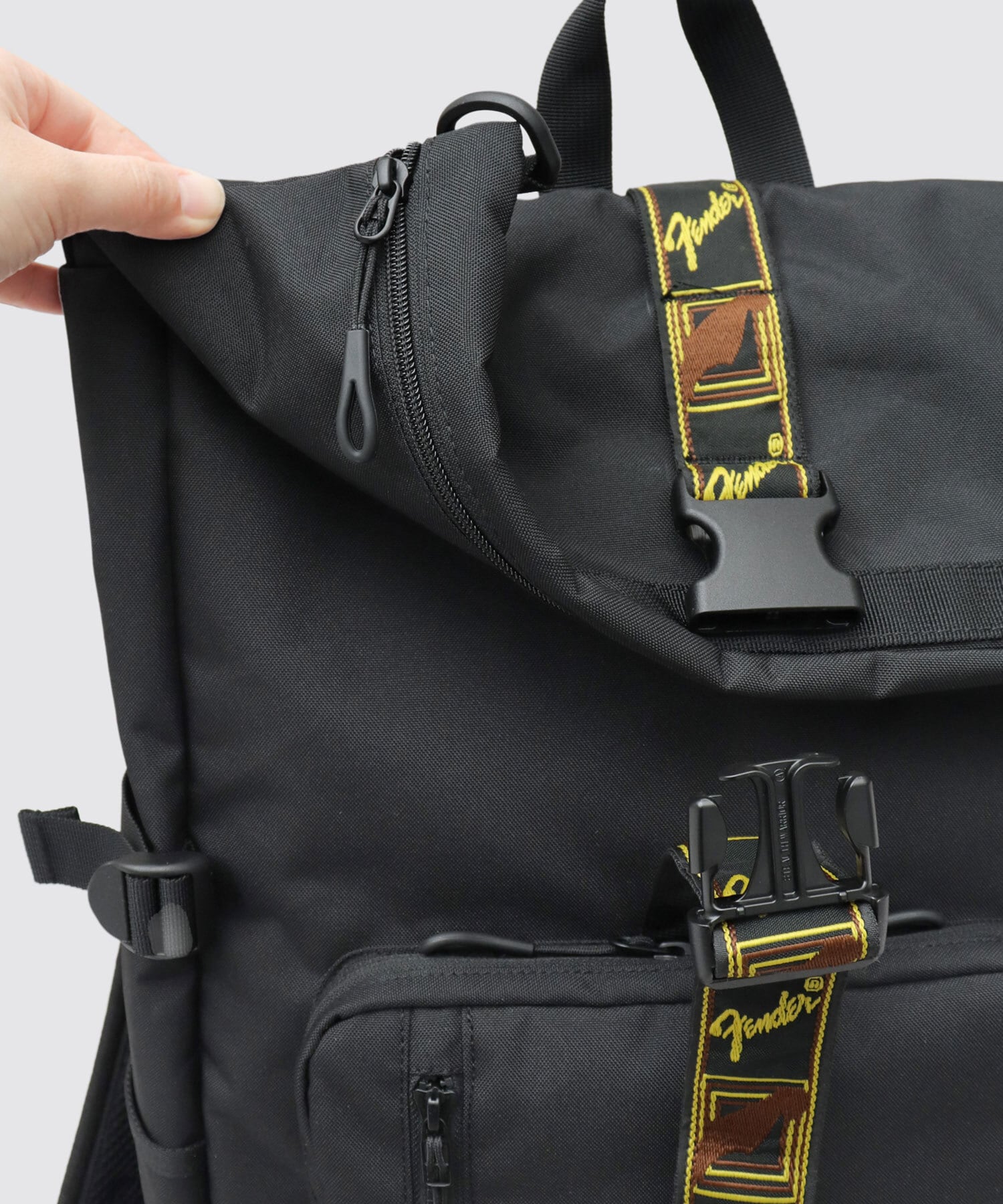 SNY-085 Fender フェンダー ロールトップ バックパック リュック メンズ レディース 大容量 CORDURA A4 B4 PC収納 通勤 通学 モノグラムストラップ ブラック カジュアル | A.M.S.