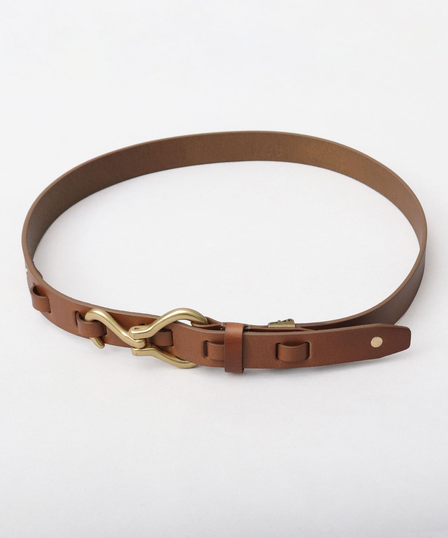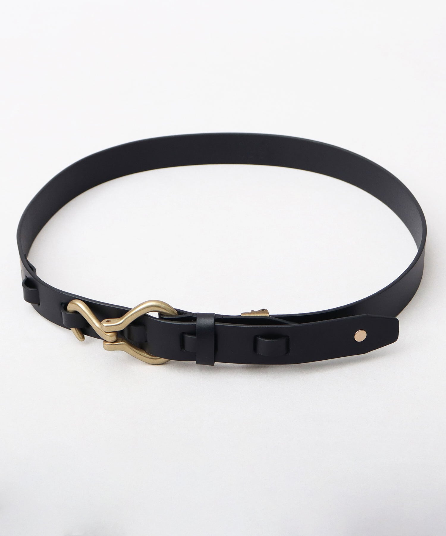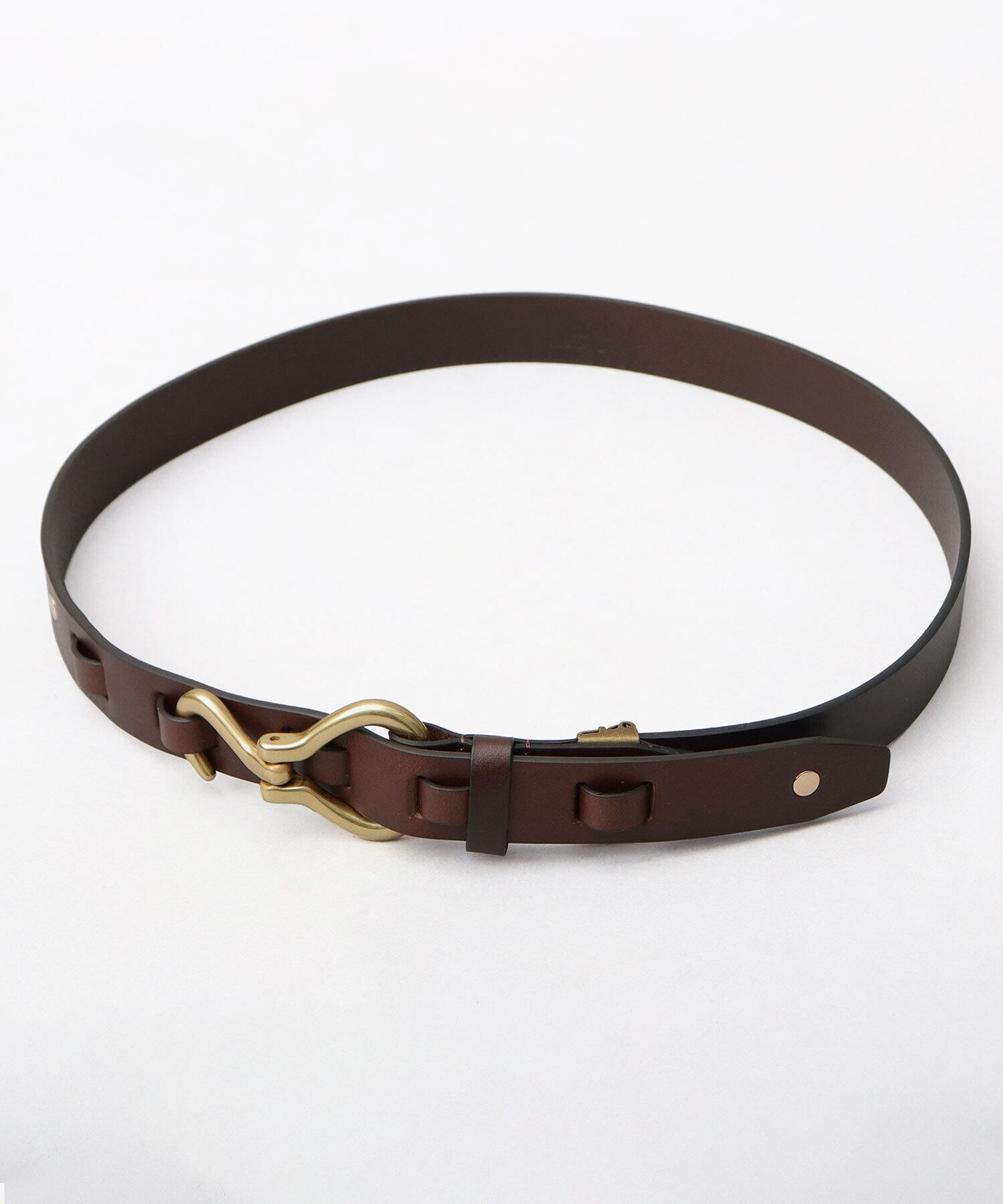 特徴的なシルエットのフック型バックルを採用。タックインスタイルをワンランク引き上げてくれるデザイン性の高さがポイント。