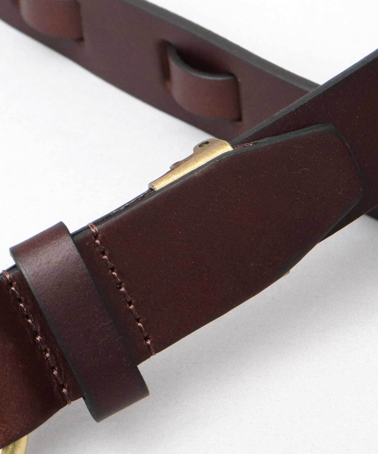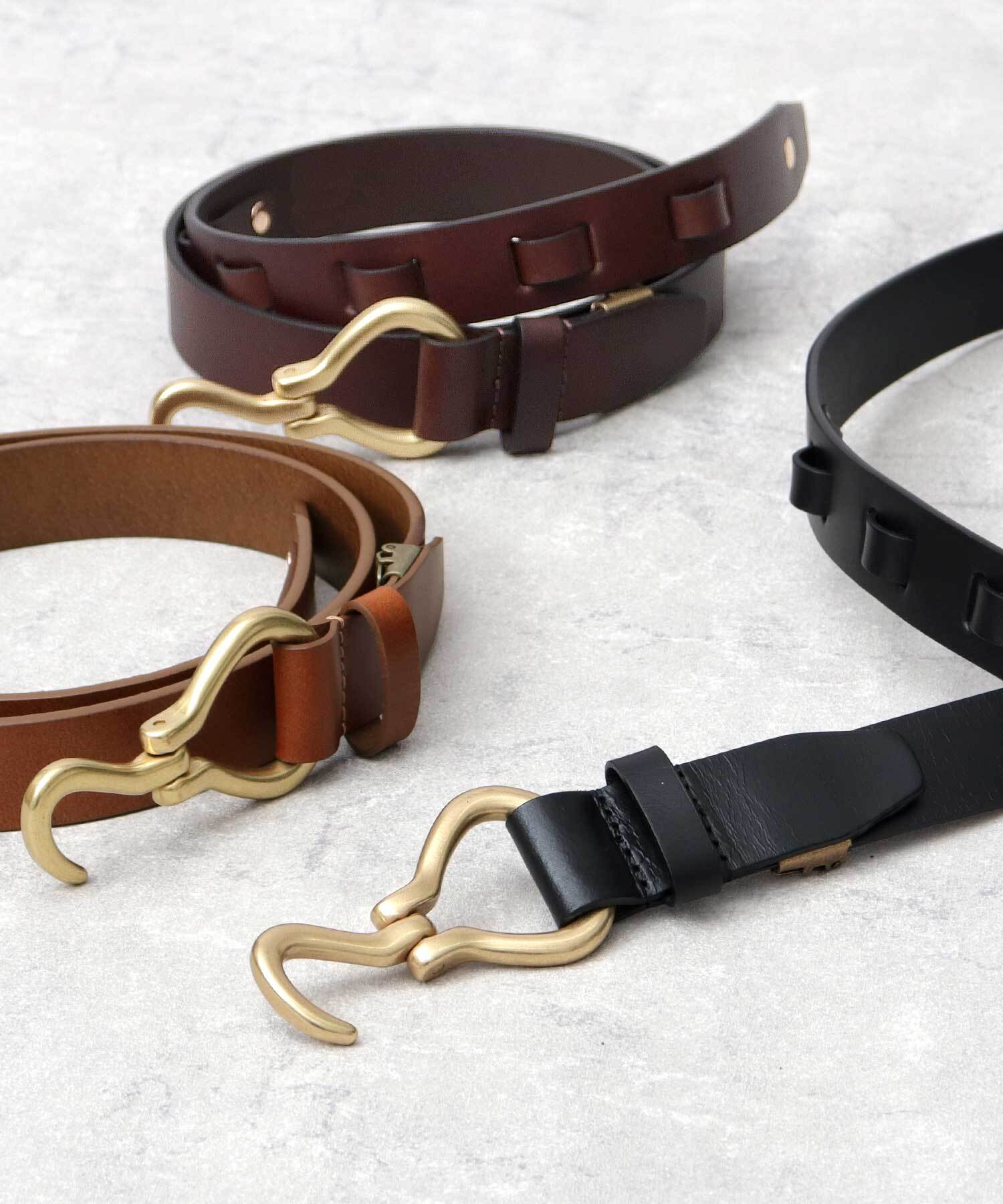 フック型のバックルデザインがタックインスタイルにぴったり!柔らかな牛革なので馴染が良く、快適な着け心地です。3cmのベルト幅は、チノパンやデニム、ミリタリーパンツなどカジュアルアイテムにはもちろん、キレイめなスラックスなどドレスパンツとも相性抜群です。中間フリー金具付きで、自由にベルトの長さを詰められるので、どなたでも使用できます。彼氏や旦那さんへのプレゼントにもオススメ!