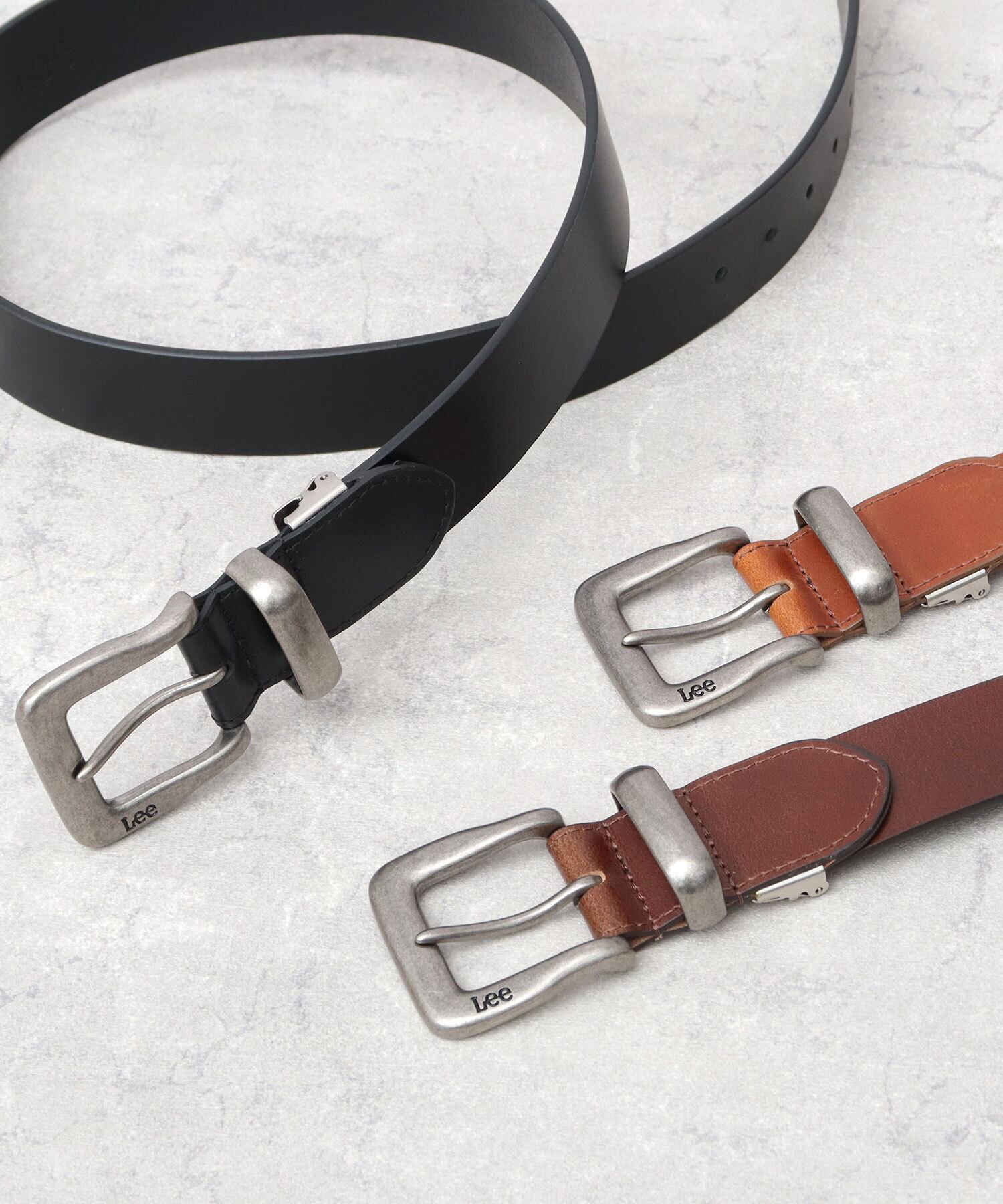 アメリカ発の老舗ジーンズメーカー“Lee(リー)”のメタルループレザーベルト。ヴィンテージ調の風合い加工を施した、柔らかく、しなやかな牛革を使用しているので普段使いにおすすめ。大ぶりで肉厚なスクエアバックルとメタルループが存在感抜群。約4cmと太めの、しっかりとしたホールド感のあるベルト幅は、ジーンズやチノパンなどカジュアルコーデにぴったり。5段階のサイズ調節が行えるピン穴に加え、中間フリー金具を外してお好みの長さでカットが可能なフリーカット仕様。ベルトのバックルをアクセントにしたスタイリングにおすすめ!