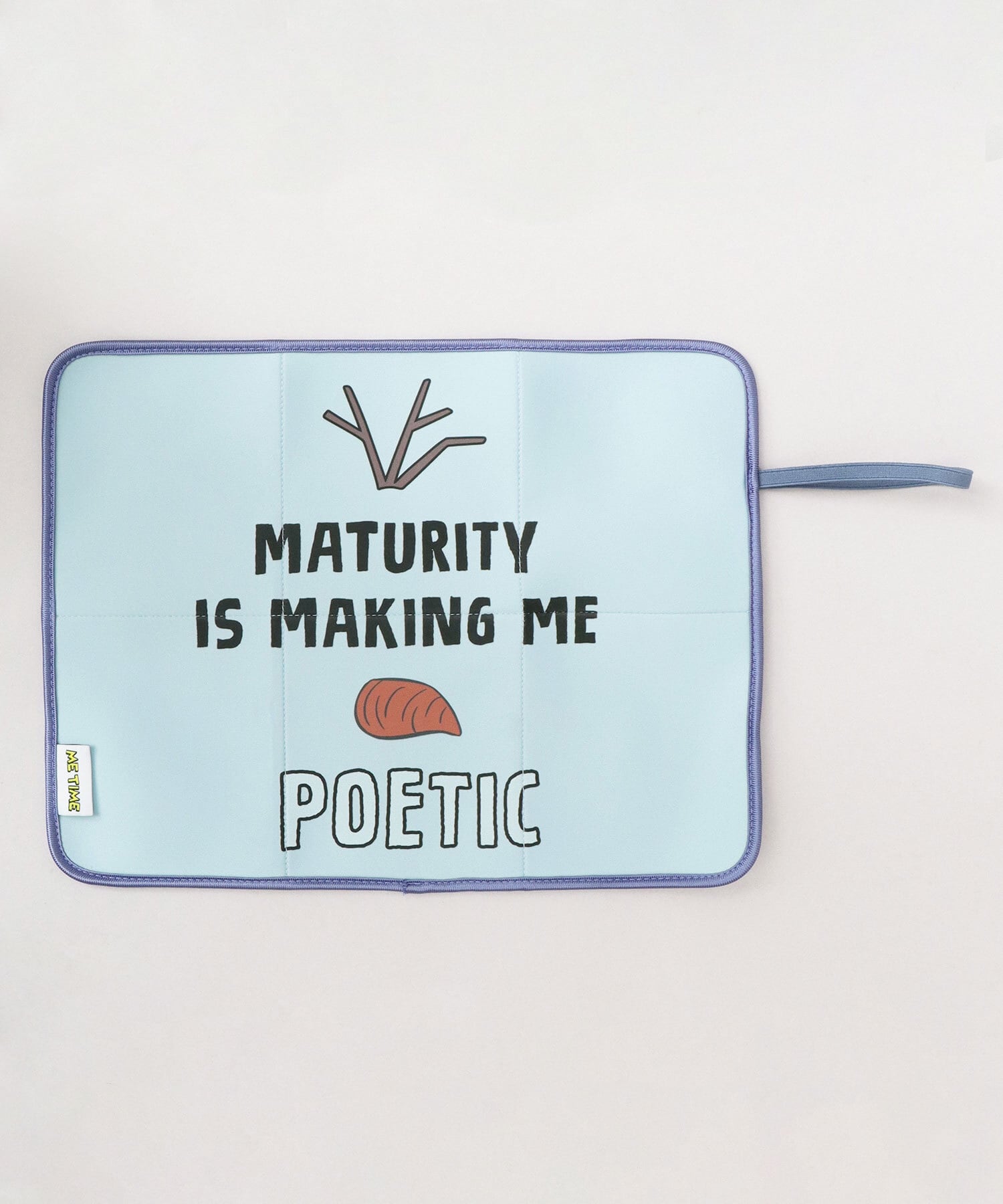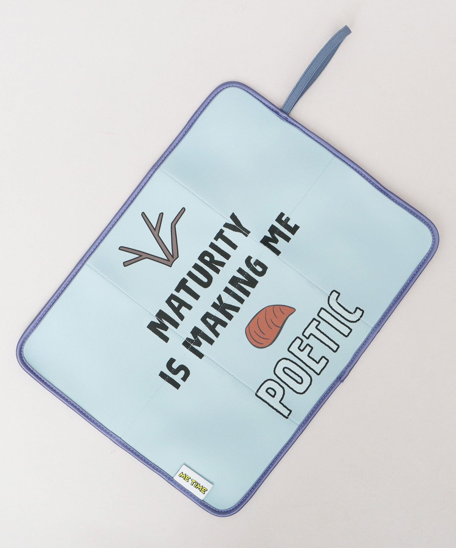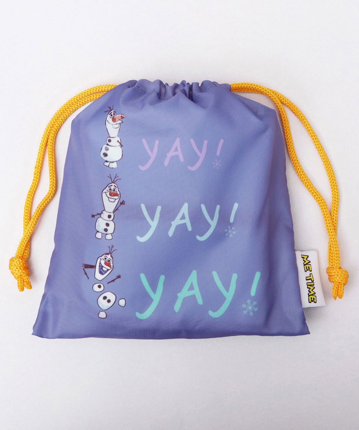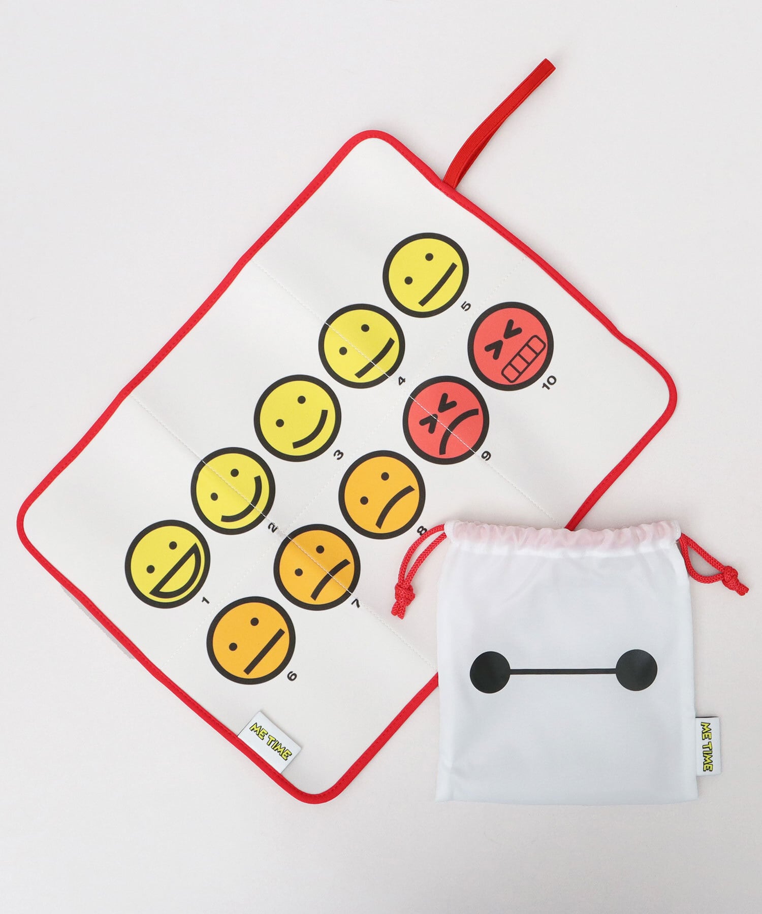 お気に入りのディズニーキャラクターと一緒にサウナ時間を楽しめちゃう、巾着付きサウナマット。“ME TIME(ひとり時間)”のピスタグがアクセントに。