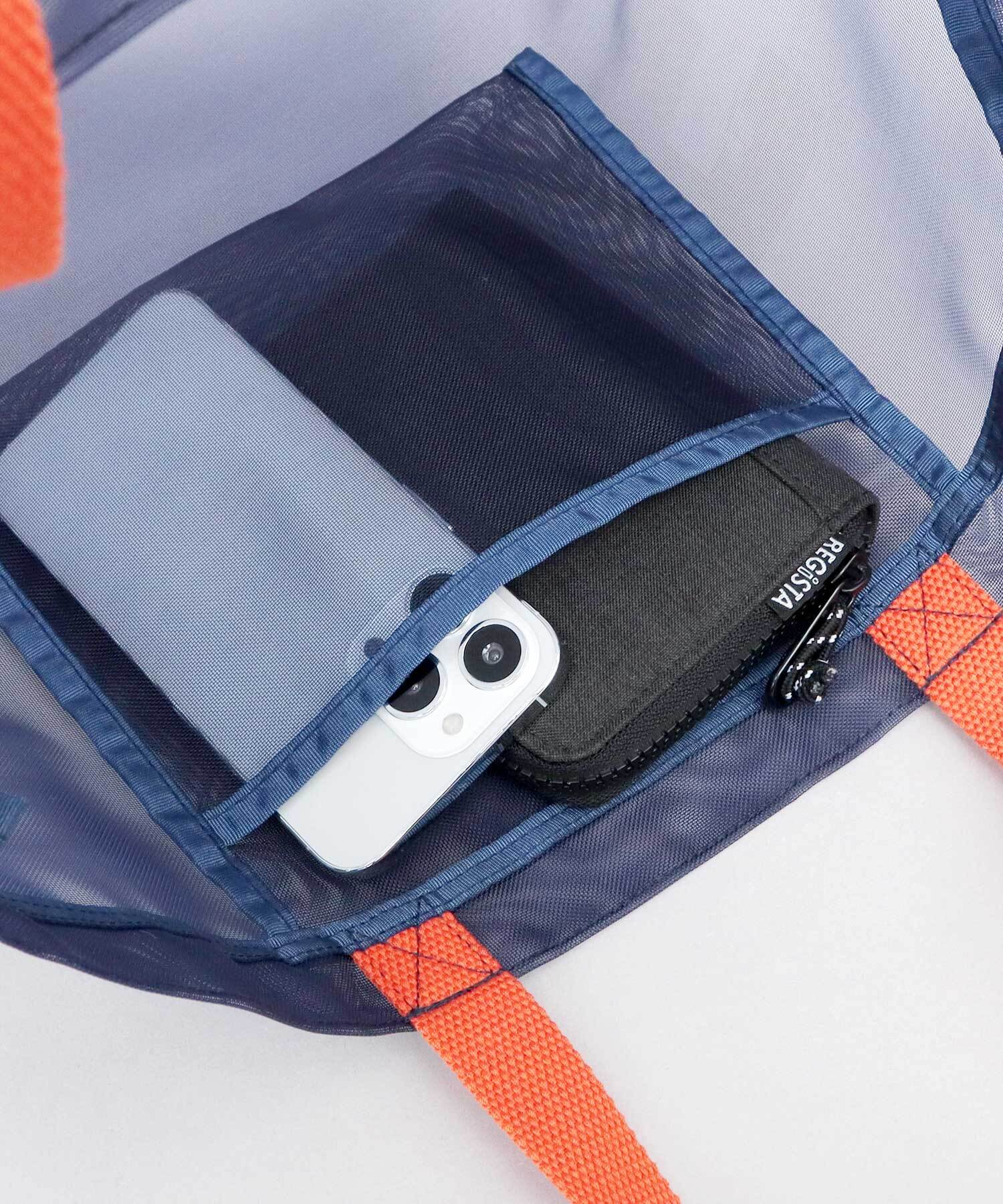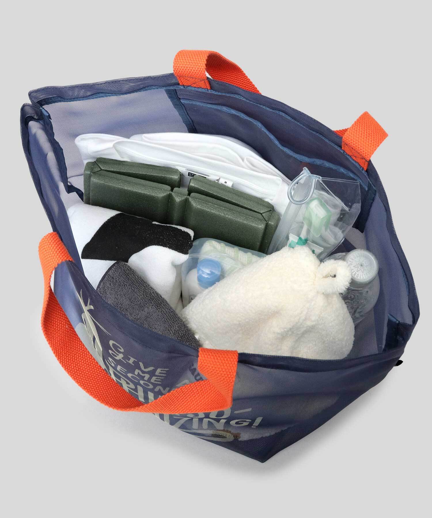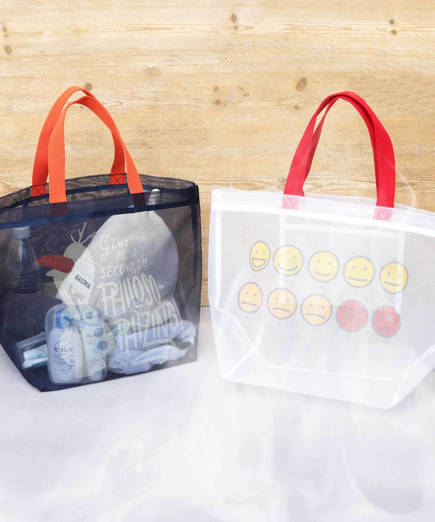 バッグ全面に通気性の良いメッシュ生地を使用。中の荷物も蒸れる事なく入れられるので、サウナにはもちろん、プールや温泉にもぴったり◎