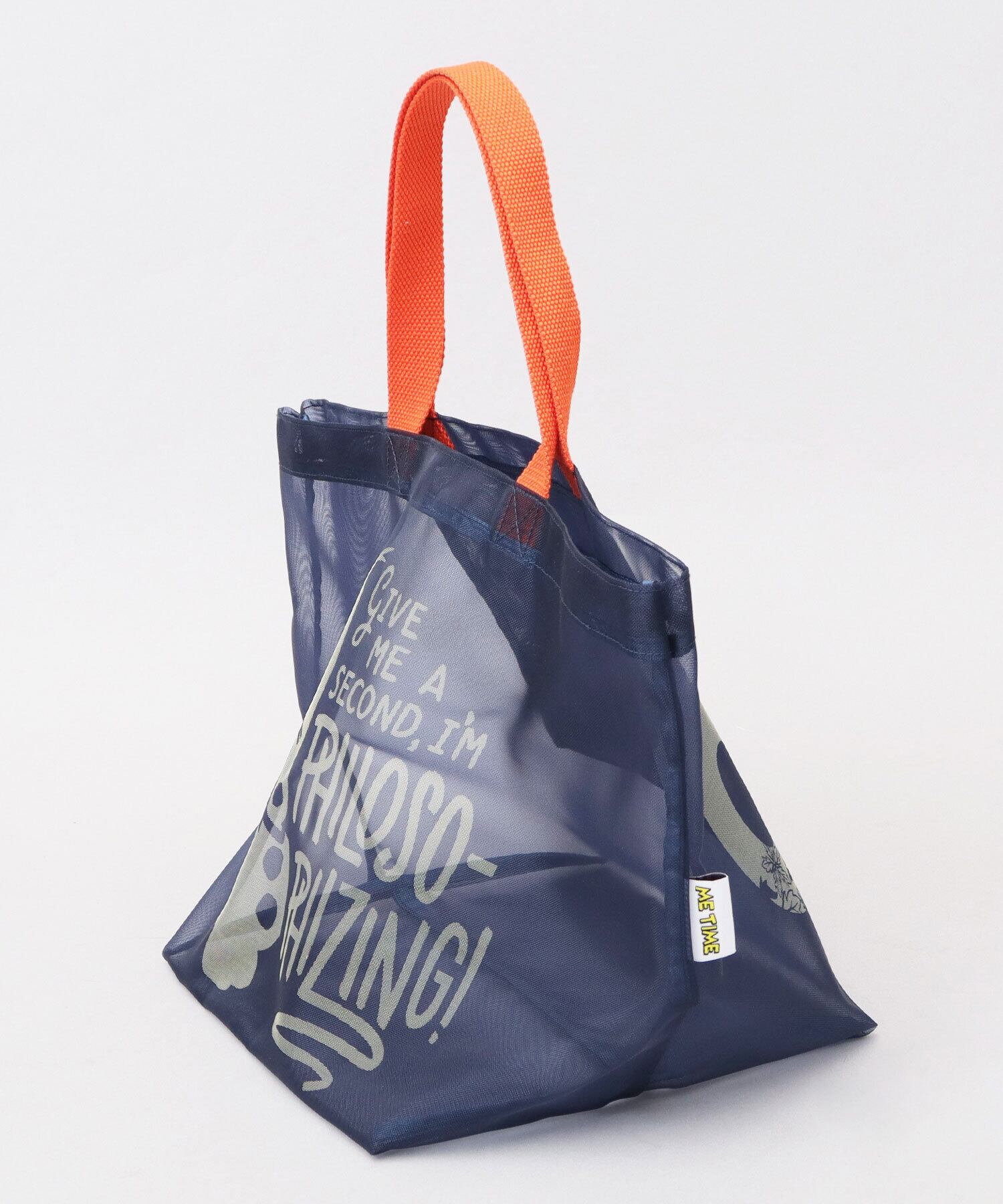お気に入りのディズニーキャラクターと一緒にサウナ時間を楽しめちゃう、メッシュトートバッグ。どちらを表として持って歩くか迷ってしまう、両面プリントデザイン。“ME TIME(ひとり時間)”のピスタグがアクセントに。