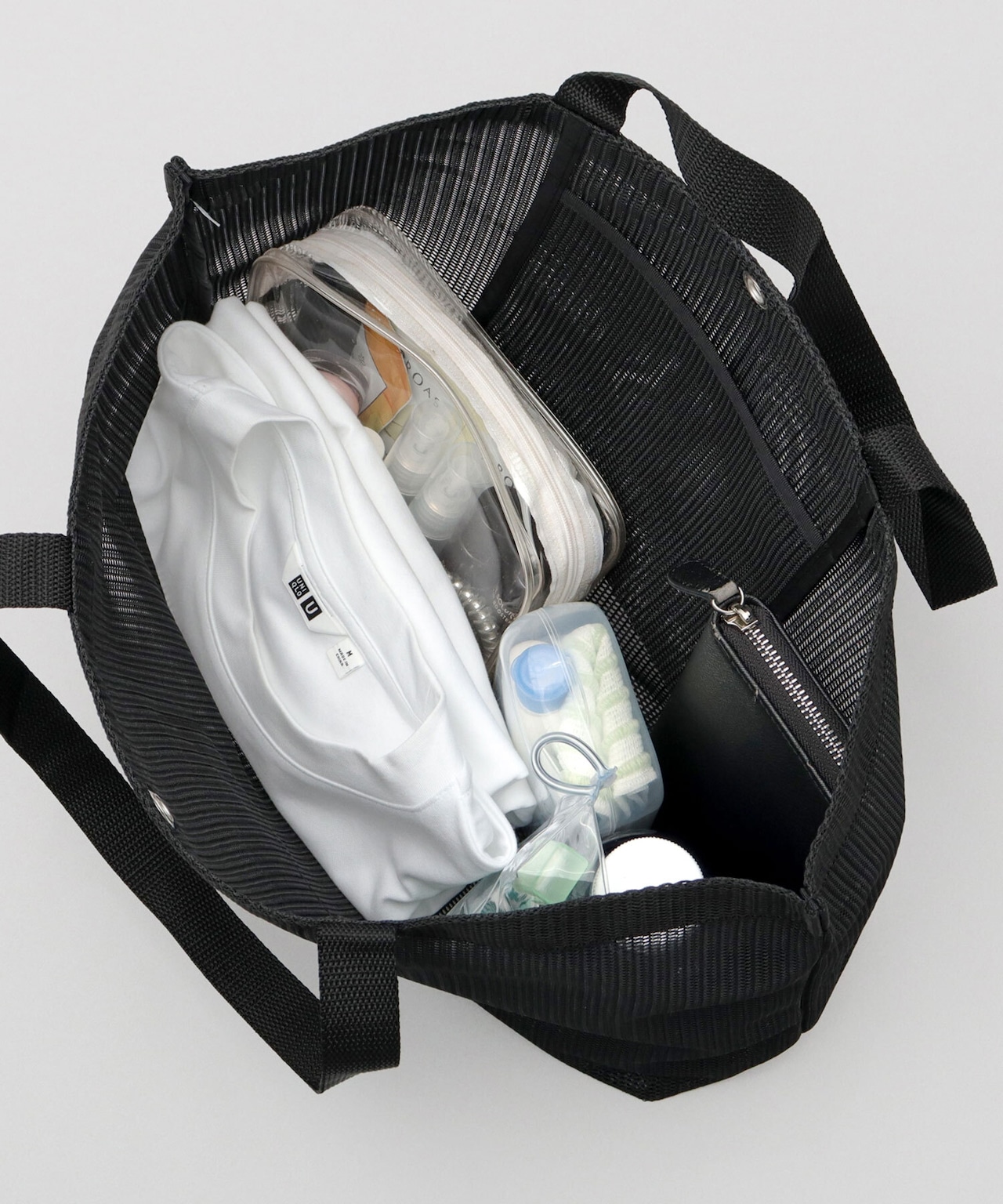 バッグ全面に通気性の良いメッシュ生地を使用。中の荷物も蒸れる事なく入れられるので、サウナにはもちろん、プールや温泉にもぴったり◎