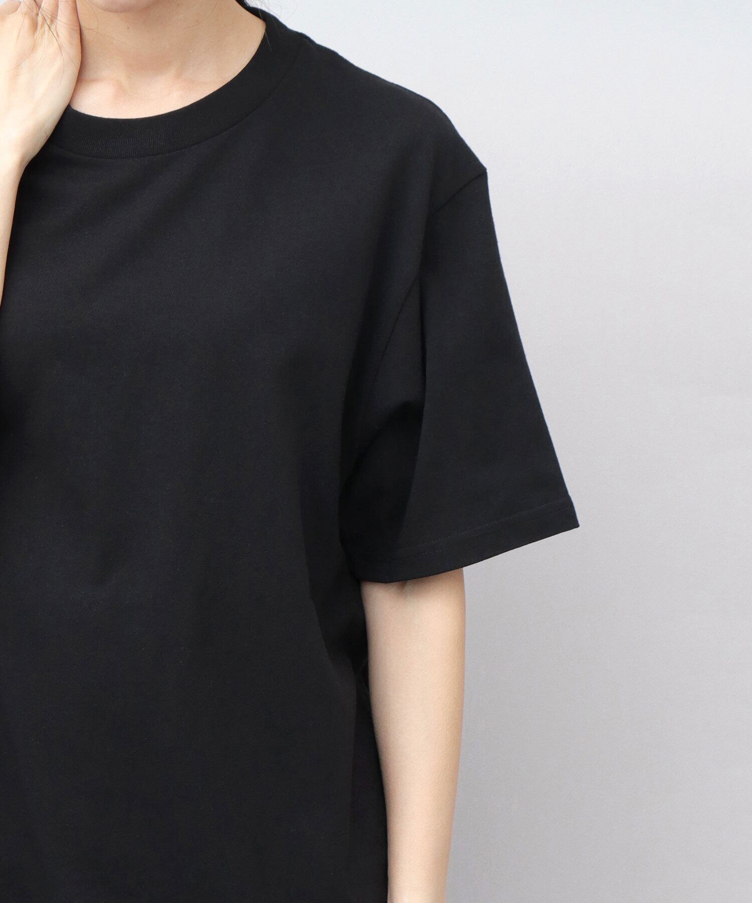 Tシャツのシルエットを保つ上で重要な“首回り”はすっきりとした印象のシングルステッチ。ヘタレにくいしっかりとしたリブを使用。