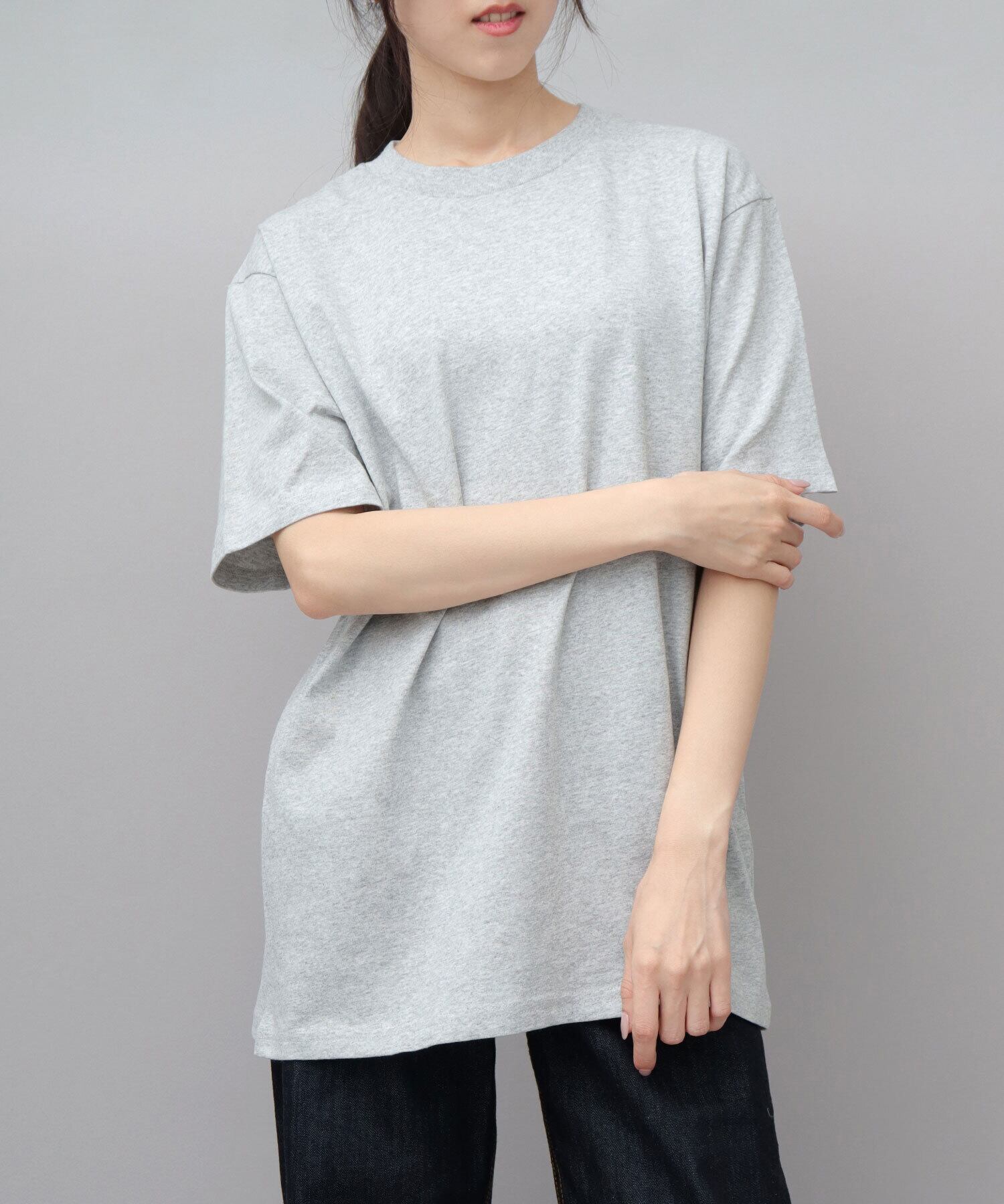 USAコットンのタフな風合いを残しつつも、肌馴染の良いミドルウェイト生地が、デイリーで着用するにはおすすめ!透け感もそこまで気にならない生地厚です。Sサイズで程よくゆったり着用できます。女性にはS~Mサイズくらいがおすすめ。 (166cm)