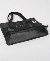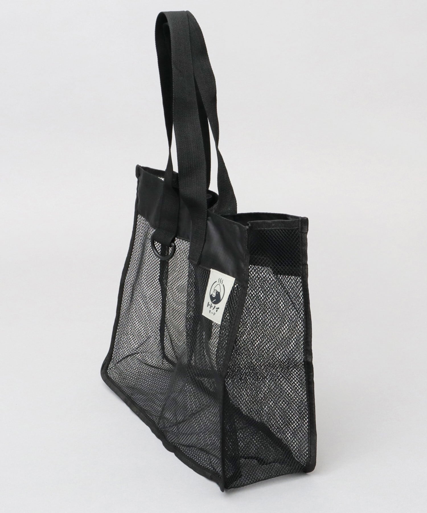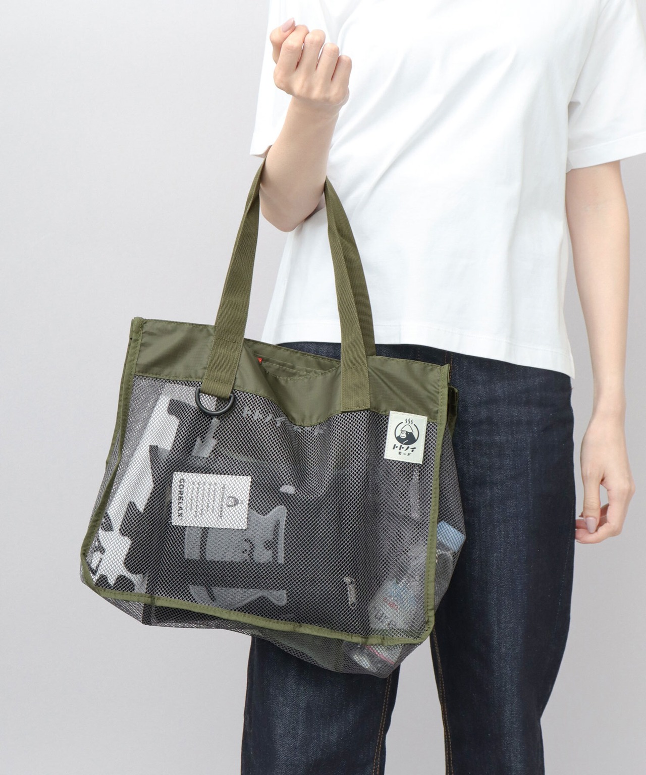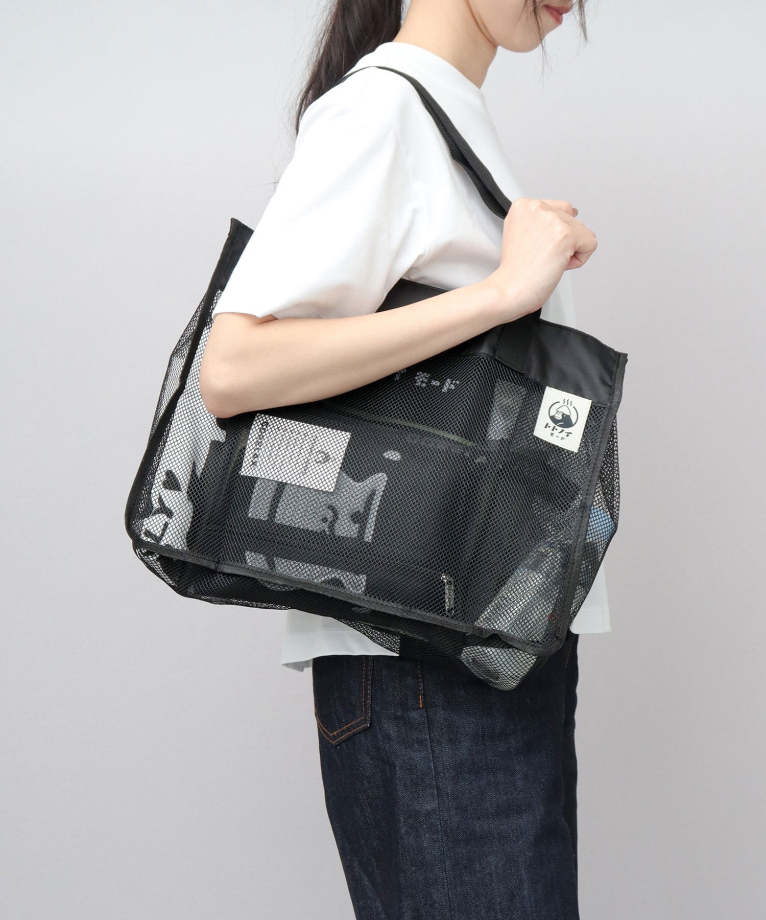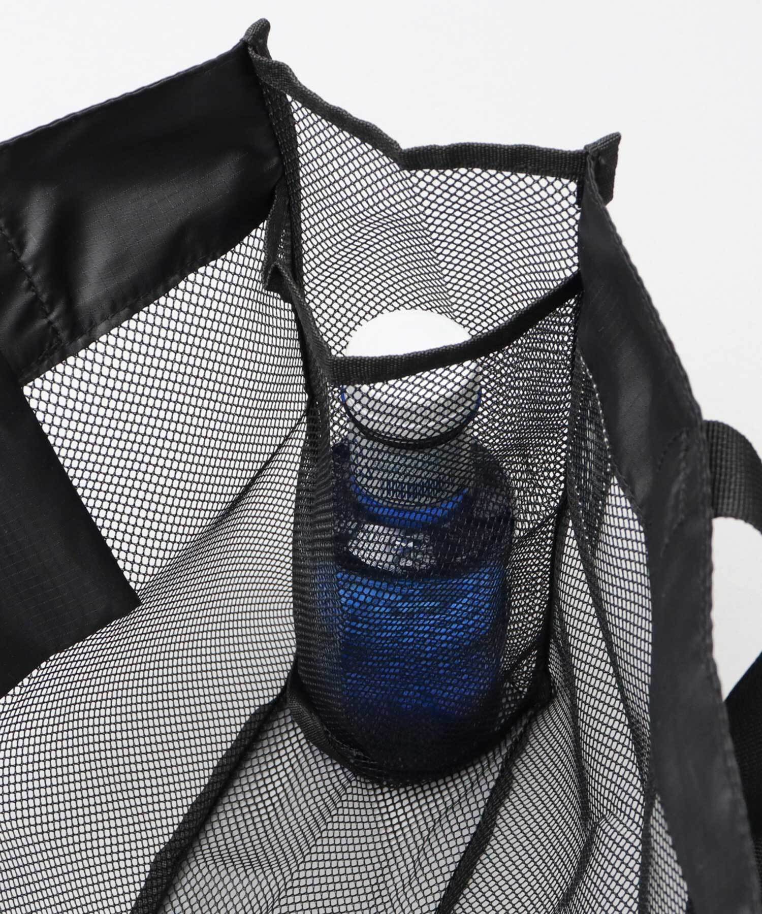 メッシュ部分には、横に伸びやすく、縦に伸びにくい素材を使用。たくさん荷物を入れても、メッシュバッグ特有の下に伸びてイライラ・・の心配がありません◎